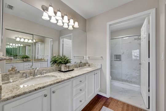 Over the last eight years, the current owners have enjoyed this coach home with a lake view as their snowbird retreat, all the while tastefully furnishing it and updating it to create a comfortable home away from home. Whether you are searching for an investment or wanting a Naples escape of your own, this second-floor residence, being sold turnkey with a few exclusions, offers enjoyable living for tenants or owner-occupants alike. Some of the things these owners have done include a recently redone master shower with beautiful tile, glass doors and new fixtures and even a new toilet. The adjoining dual-sink vanity area has been refreshed with granite counters, new lighting and fixtures. The flooring throughout the main living space and into the bedrooms is a beautiful bamboo engineered wood. Stainless appliances, granite counters, and painted cabinetry with soft-close hinges highlight the eat-in kitchen. Modern ceiling fans and lighting add the finishing touches throughout. These owners also replaced the polybutylene piping and the HVAC system is. This building has a newer roof (2021). This two-bedroom, two-bath residence, complemented by a one-car garage, is located in Wiggins Lakes, a charming community in X500 flood zone west of 41 in North Naples, within walking and bicycling distance to beaches, shops and restaurants. Wiggins Lakes offers its residents two pools, a tennis/pickleball court, a community room, and an active social calendar.