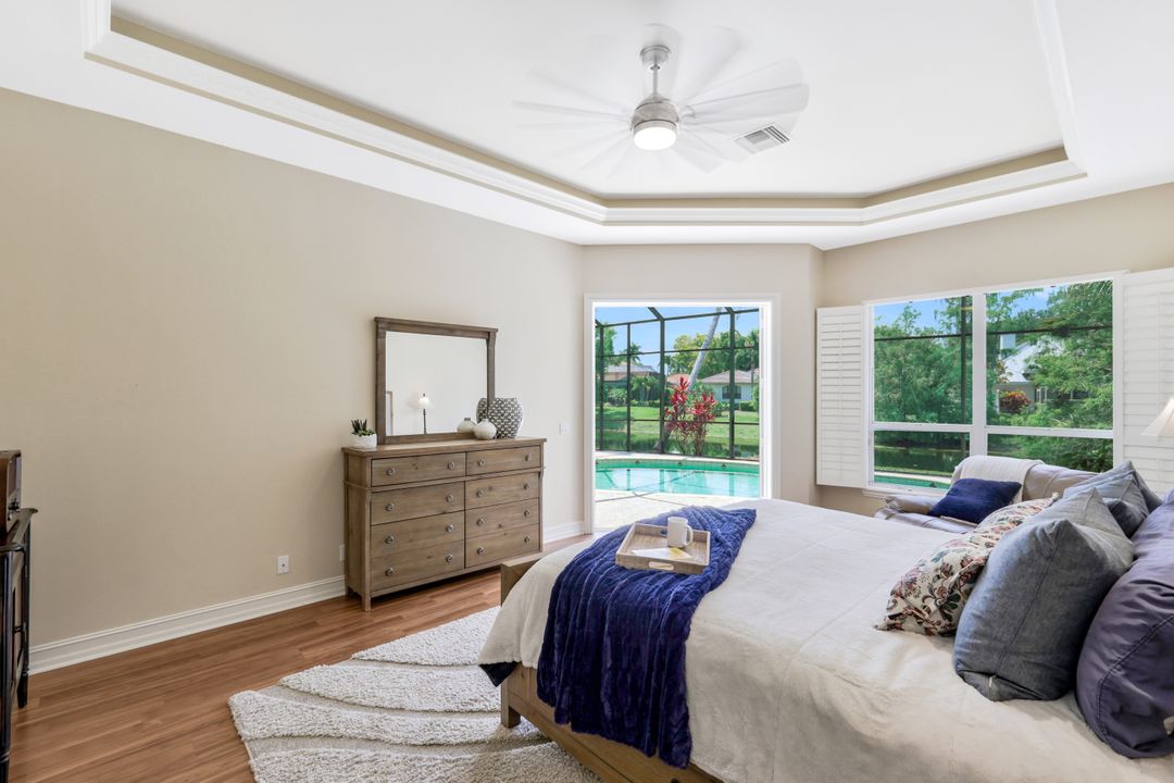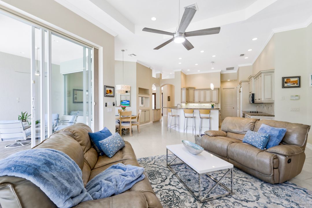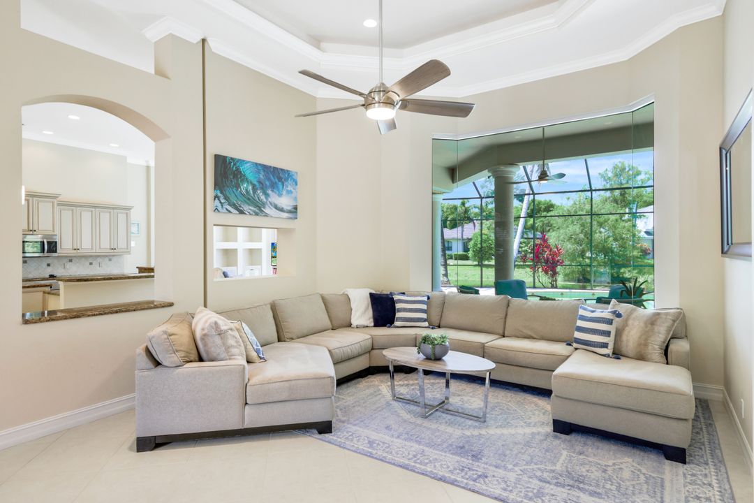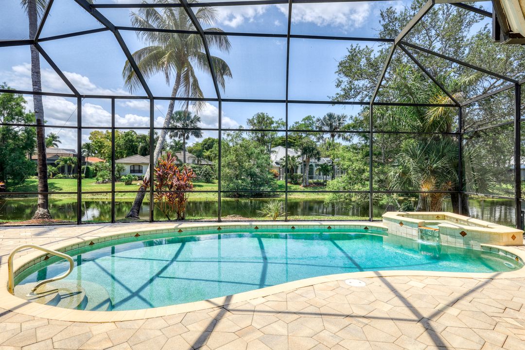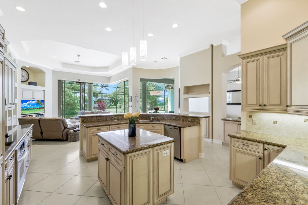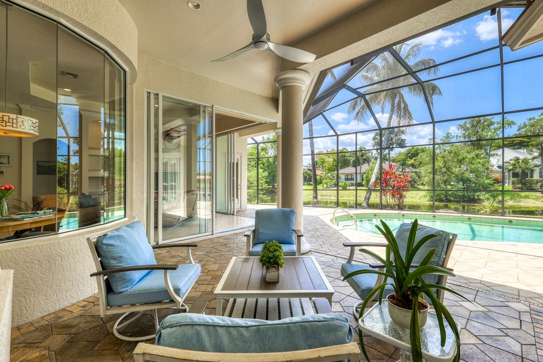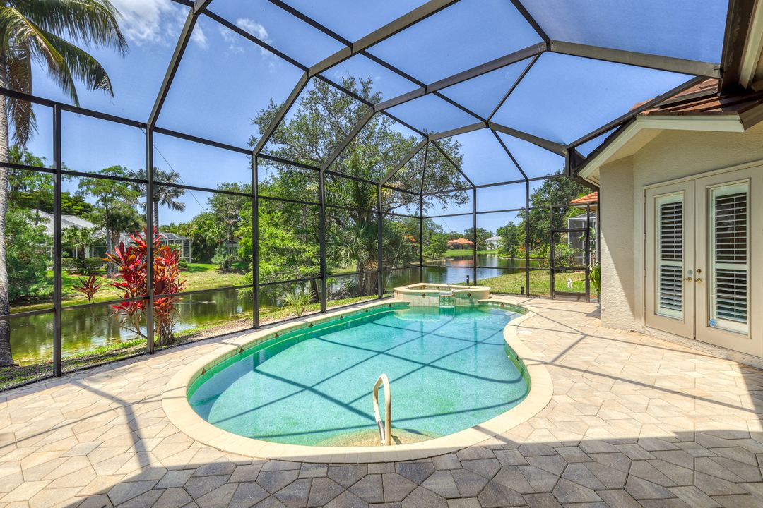 Welcome home to this beautiful lakefront, southern exposure single story home on desirable Santa Margherita Way in Monterey. This is the great room floorplan you have been waiting for. The home features a split bedroom plan, great for privacy. The primary suite, office and 1/2 bath are on one side of the house and all guest rooms and two full bathrooms are on the other side of the house. Two guest bedrooms share a bathroom (with the sink conveniently separate from the shower and toilet), and the third guest bedroom is en-suite. Features include tray ceilings, solid wood interior doors, neutral tile flooring throughout the living area, a pool bath and tons of natural light. The center of the home is the kitchen, which features wood cabinetry, granite countertops, stainless steel appliances, a breakfast bar and a separate casual dining area. The family room opens to the screened in lanai area through zero corner sliding doors, making indoor/outdoor entertaining a pleasure. The outdoor living includes a heated pool, spa, paver decking, a nice sized covered area for outdoor dining and living as well as a separate area for grilling. Exterior features include a side loaded 2 car garage, a paver driveway with extra parking, beautiful tropical landscaping and a 2018 flat tile roof. Monterey is an highly sought-after community due to its A-rated schools and it’s Orange Blossom location - less than 3 miles to the beach, Mercato and Waterside shops. It’s a breeze getting to shopping, downtown, uptown & more. Residents of Monterey enjoy a 24-hour attended guard gate, a renovated club & fitness center, billiards, heated lap pool, basketball & pickleball/sports court, new play area and 3 lighted Har-Tru tennis courts. Monterey has an active tennis and pickleball program as well as its own children’s swim team!
