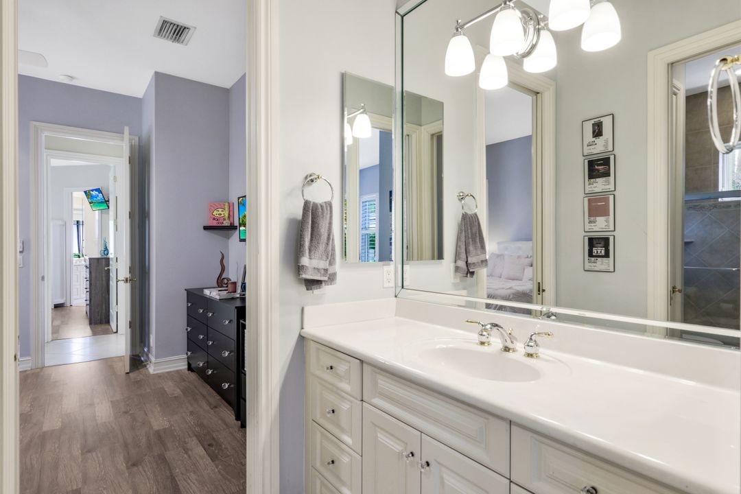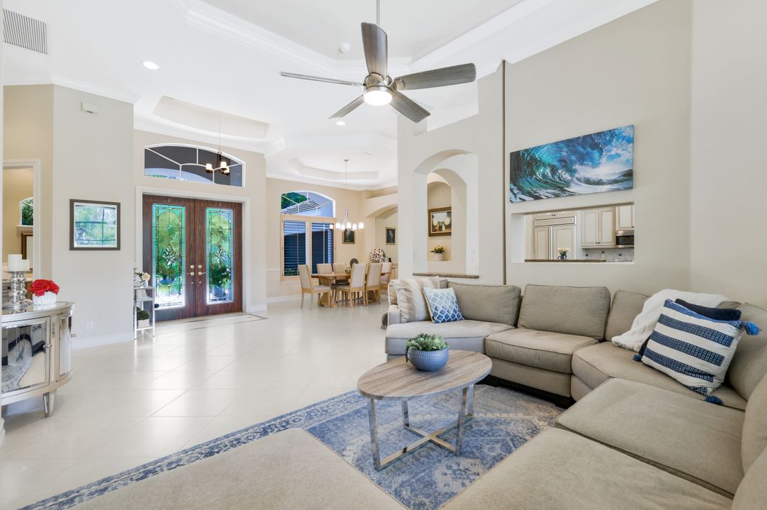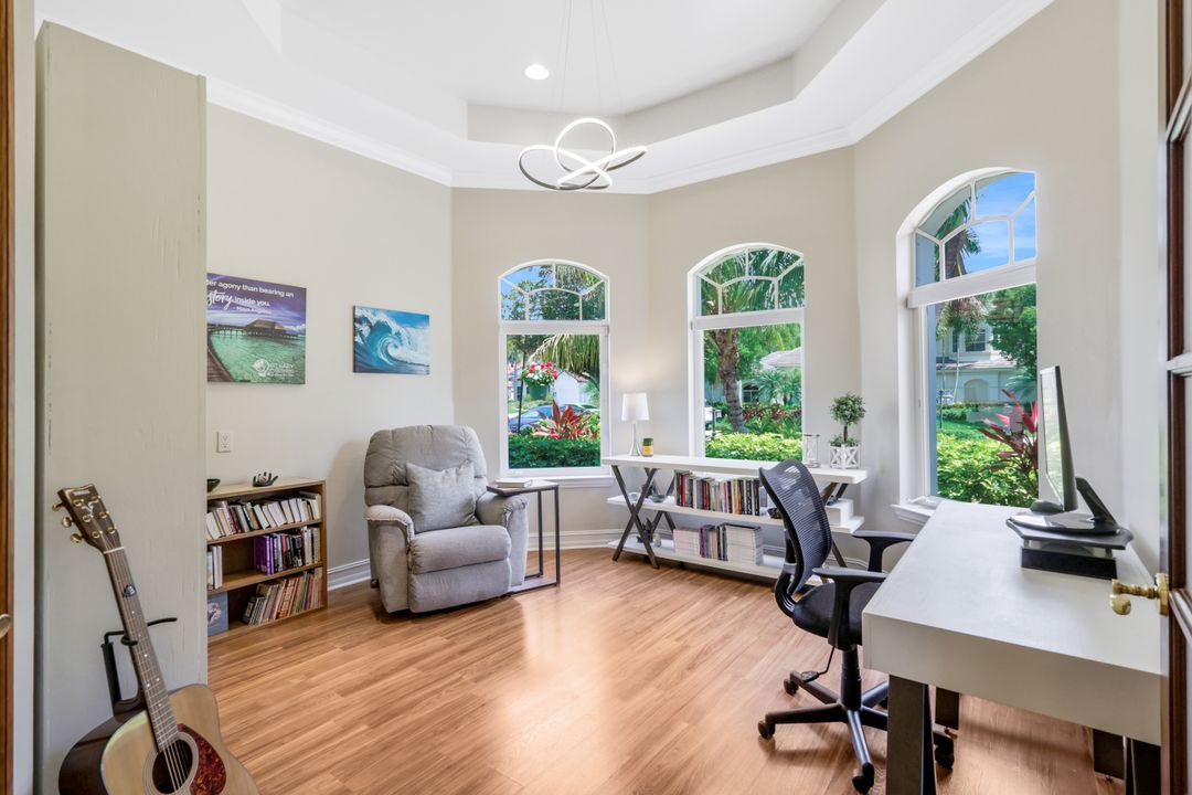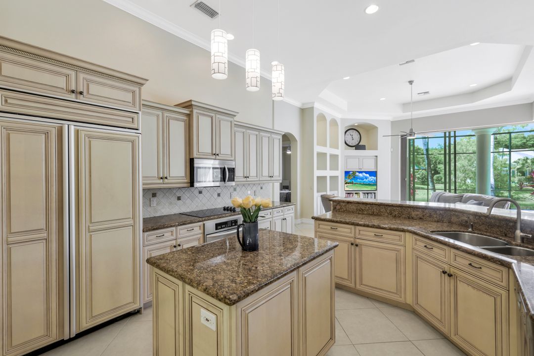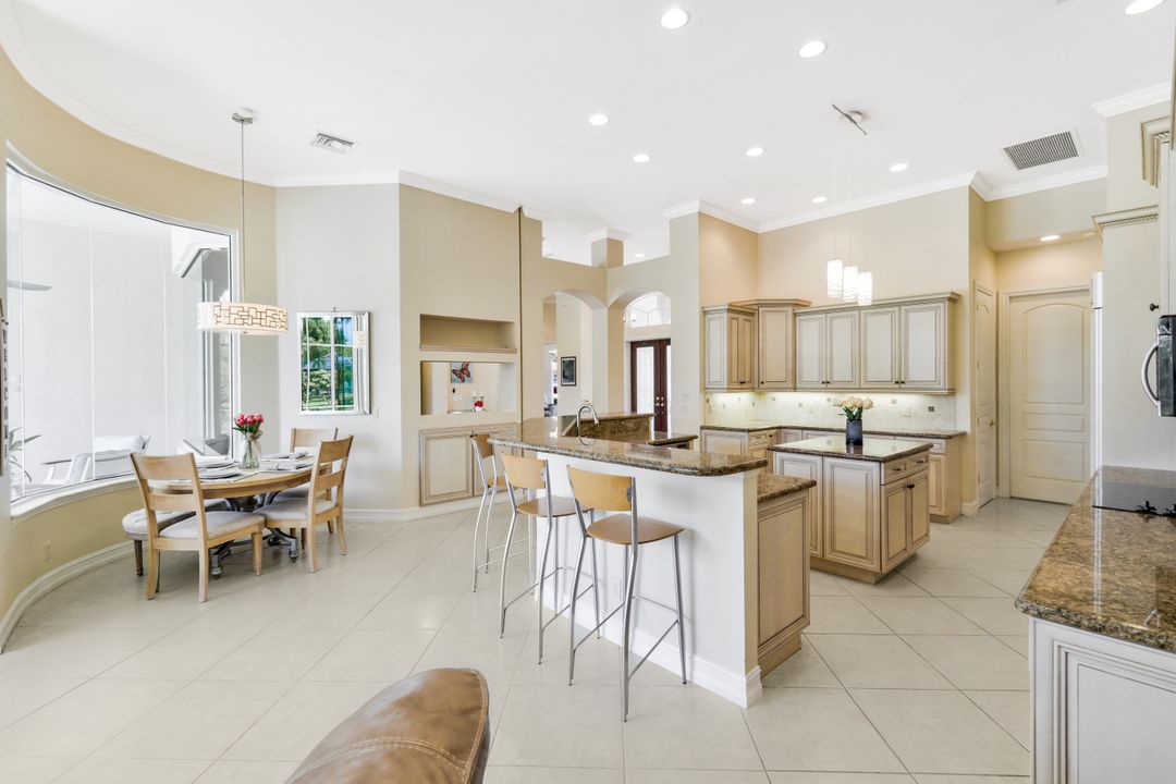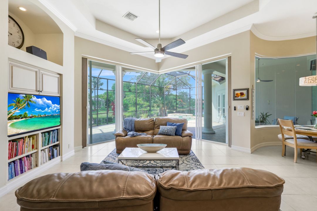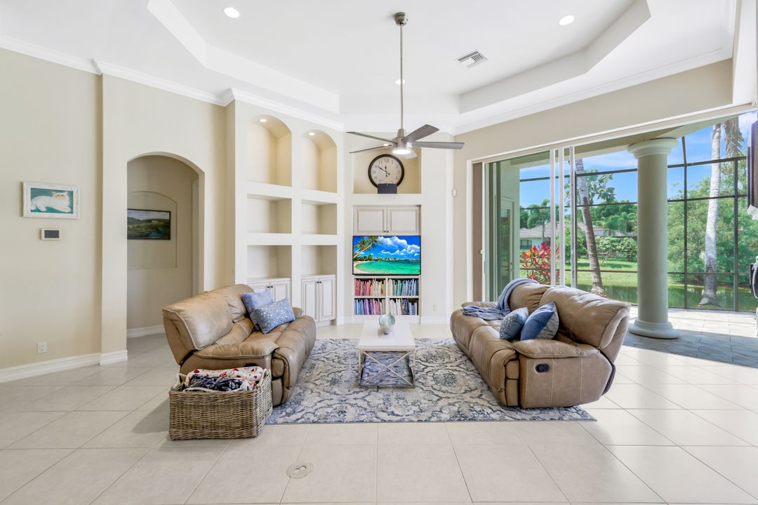 Welcome home to this beautiful lakefront, southern exposure single story home on desirable Santa Margherita Way in Monterey. This is the great room floorplan you have been waiting for. The home features a split bedroom plan, great for privacy. The primary suite, office and 1/2 bath are on one side of the house and all guest rooms and two full bathrooms are on the other side of the house. Two guest bedrooms share a bathroom (with the sink conveniently separate from the shower and toilet), and the third guest bedroom is en-suite. Features include tray ceilings, solid wood interior doors, neutral tile flooring throughout the living area, a pool bath and tons of natural light. The center of the home is the kitchen, which features wood cabinetry, granite countertops, stainless steel appliances, a breakfast bar and a separate casual dining area. The family room opens to the screened in lanai area through zero corner sliding doors, making indoor/outdoor entertaining a pleasure. The outdoor living includes a heated pool, spa, paver decking, a nice sized covered area for outdoor dining and living as well as a separate area for grilling. Exterior features include a side loaded 2 car garage, a paver driveway with extra parking, beautiful tropical landscaping and a 2018 flat tile roof. Monterey is an highly sought-after community due to its A-rated schools and it’s Orange Blossom location - less than 3 miles to the beach, Mercato and Waterside shops. It’s a breeze getting to shopping, downtown, uptown & more. Residents of Monterey enjoy a 24-hour attended guard gate, a renovated club & fitness center, billiards, heated lap pool, basketball & pickleball/sports court, new play area and 3 lighted Har-Tru tennis courts. Monterey has an active tennis and pickleball program as well as its own children’s swim team!