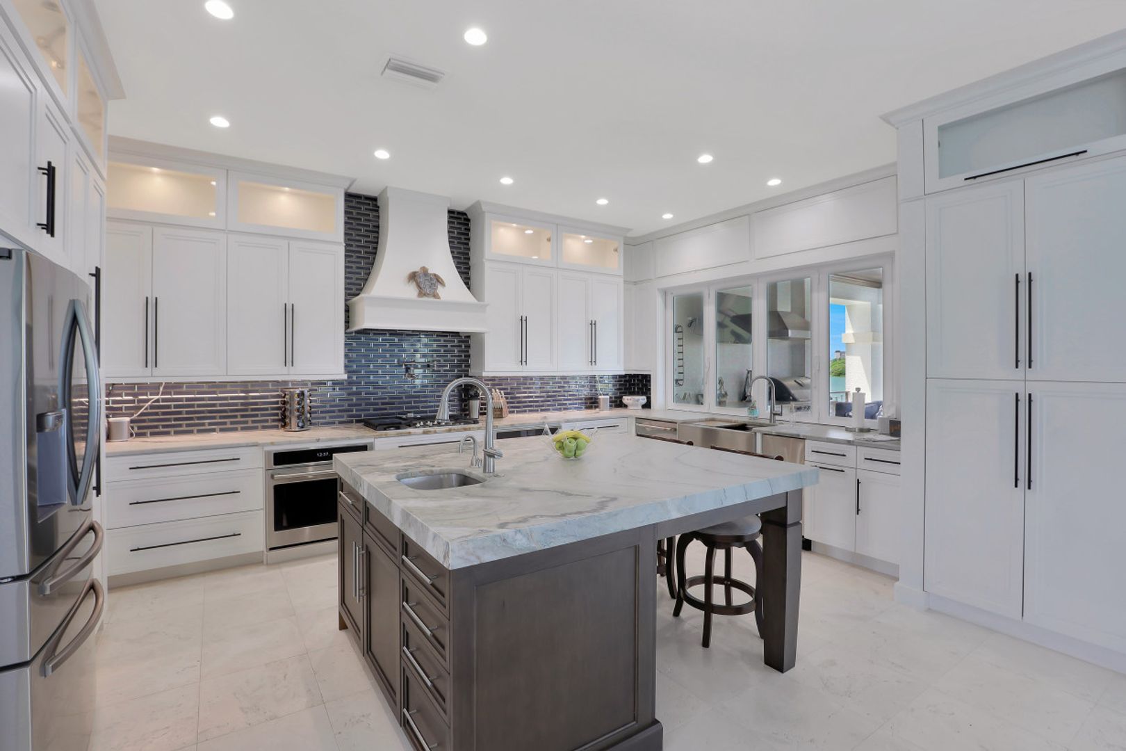 Four bedroom suites with private bathrooms make this home ideal for traveling couples. The master bedroom offers a beautiful bathroom suite, a private outdoor lanai and the best view in the house. Bedroom number two, located on the third floor offers the same gorgeous view. On the second floor is a large bedroom suite, that includes a small kitchenette. This suite is ideal for a couple with children and can accommodate a small family if necessary. The fourth bedroom is also located on the second floor. The large open family room and luxurious kitchen make staying at home a vacation in itself. An eleven foot long dining table allows all guests to comfortably dine together. The large main level lanai is equipped with an outdoor kitchen with seating to accommodate 14 guests comfortably. This home is equipped with an elevator to help access all three levels of the house.