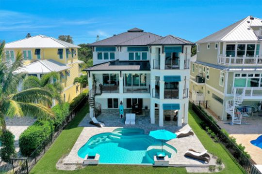 Words cannot describe this Executive Ft. Myers Beach Vacation Home. Situated on the gorgeous San Carlos Bay, this home, is only a ten minute walk to the beach. The tranquil setting on the Gulf of Mexico provides magnificent views of Sanibel Bridge and Bird Island. Guests can enjoy unbelievable sunsets from the sunset bar located on the main level lanai.