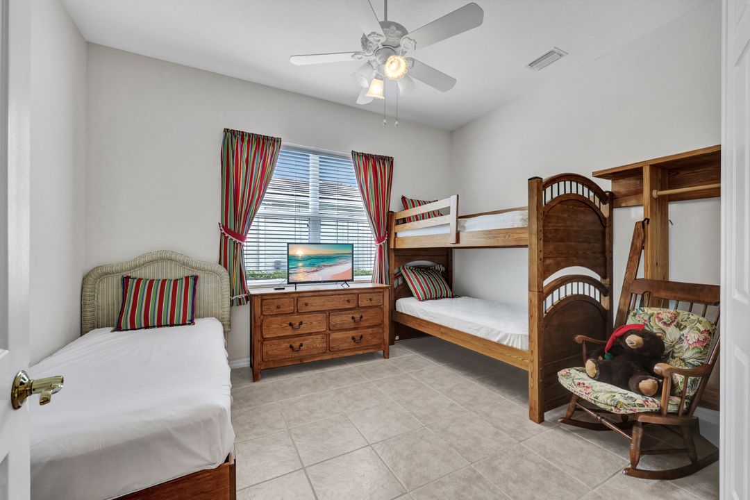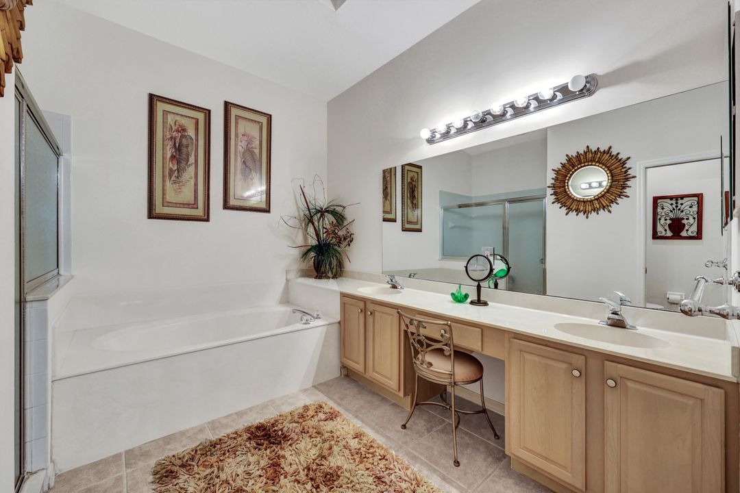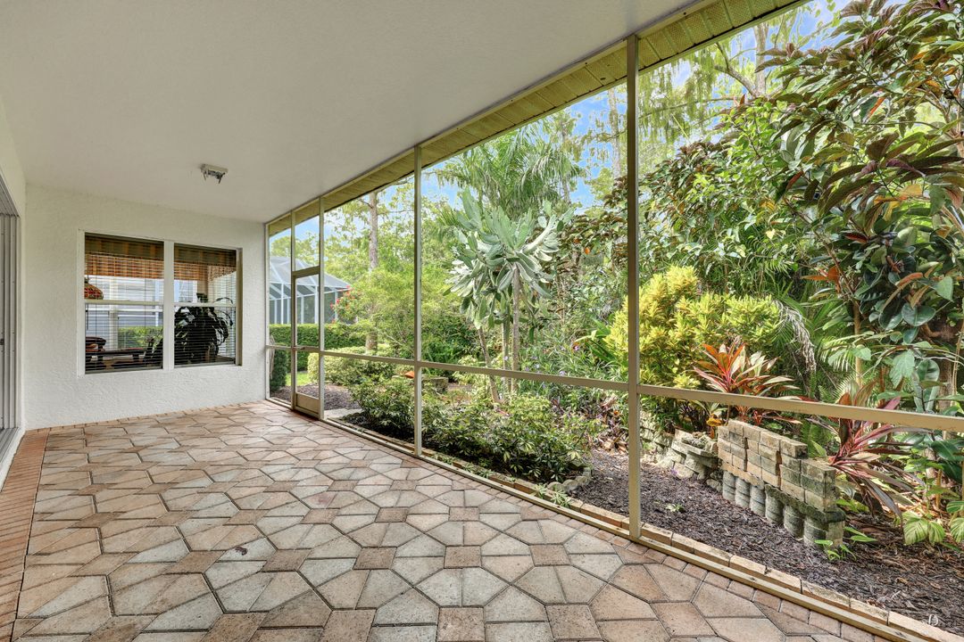 Quiet private Villa Single Family Home offers 3 Bedrooms, 2 Full Baths and a two-car garage it is set on a cul-de-sac It is located on Grafton Courts which backs onto a totally Private Preserve area and no flood insurance is required! This is the largest villa floor plan with 1857 square feet! A screened entry opens to a Great Room with soaring high ceilings and architectural trays. Large windows fill the Great Room and Breakfast Area with light. The spacious primary bedroom suite has a tray ceiling, dual vanities, step-in shower, soaking tub, separate water closet and his and hers large walk-in closets. The split bedroom floor plan features 2 guest bedrooms and bathroom. Relax on the large, screened lanai surrounded by lush landscaping in a private serene setting with no neighbors behind you. The paver driveway has ample parking for you and guests. The fees include Internet, cable, exterior painting every 5-6 years, lawn, mulch, and trimming, giving you lots of time to enjoy all the amenities that comes with Your Social Membership. Your fees include everything! Head to the Clubhouse for fabulous dining, bar, golf simulator, har-tru lit tennis courts, ping pong, billiards, library, card rooms, fire pit, great events, golfing May through October and much more. At the Divot you will find a full fitness center, outstanding complimentary fitness classes, breakfast and lunch. Glen Eagle is a Gated Community offering 2 gates leading to great restaurants, multiple grocery stores, shopping and only 4 miles to downtown Olde Naples, its beaches and boutiques. Naples is the Pickleball Capital of the World, and this home is only 10 minutes to the USOP- National Pickle Ball Center which host the world pickleball tournaments each year, plus there are over 100 pickleball courts throughout Naples!