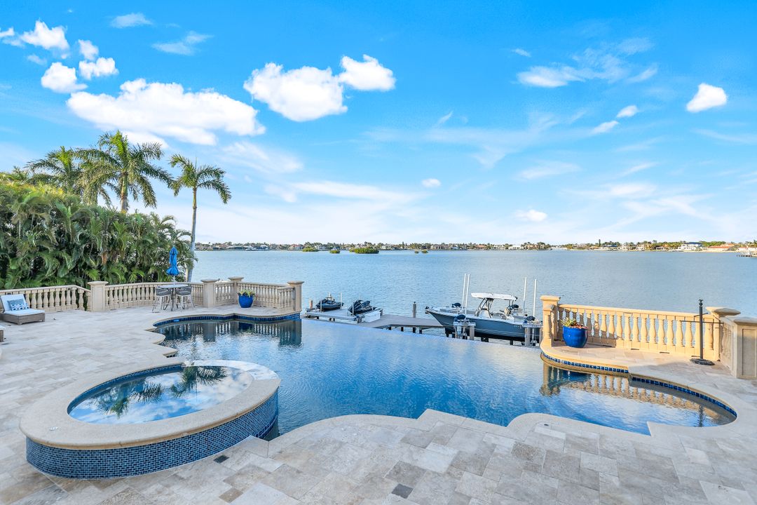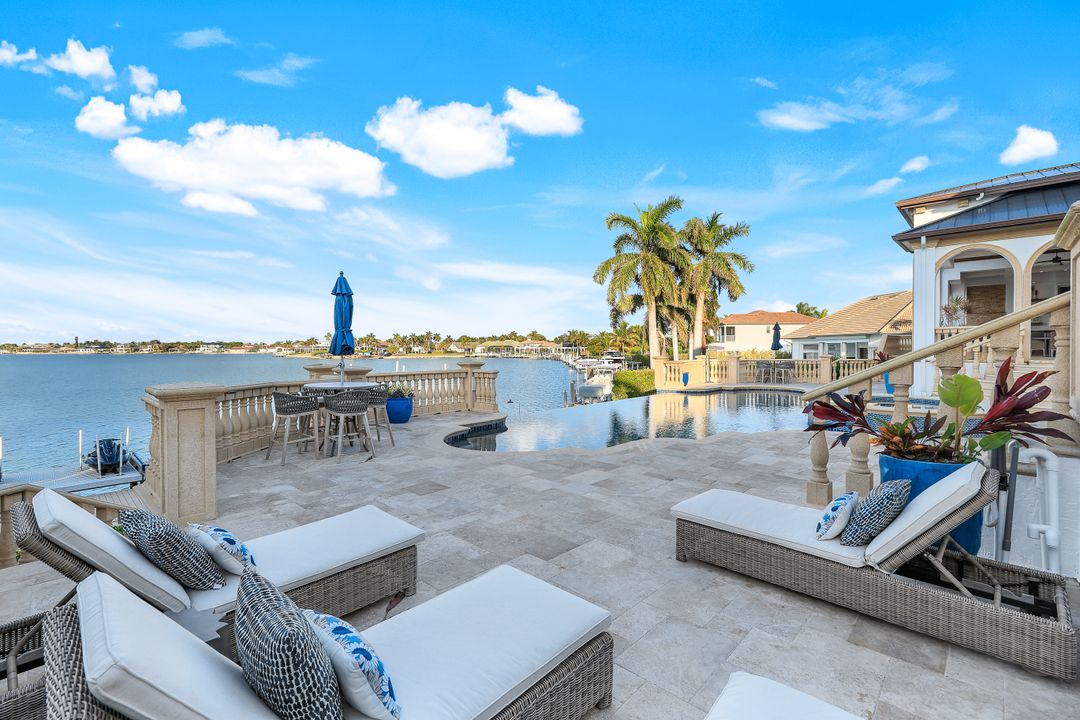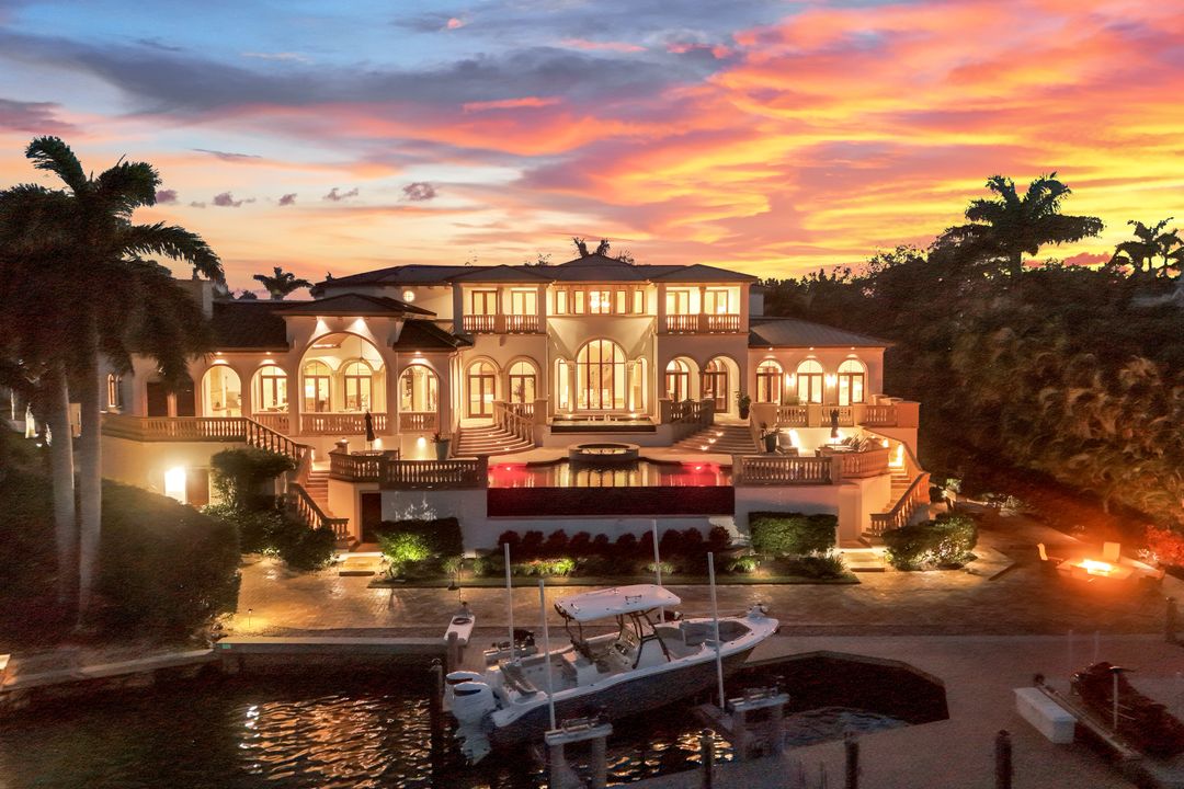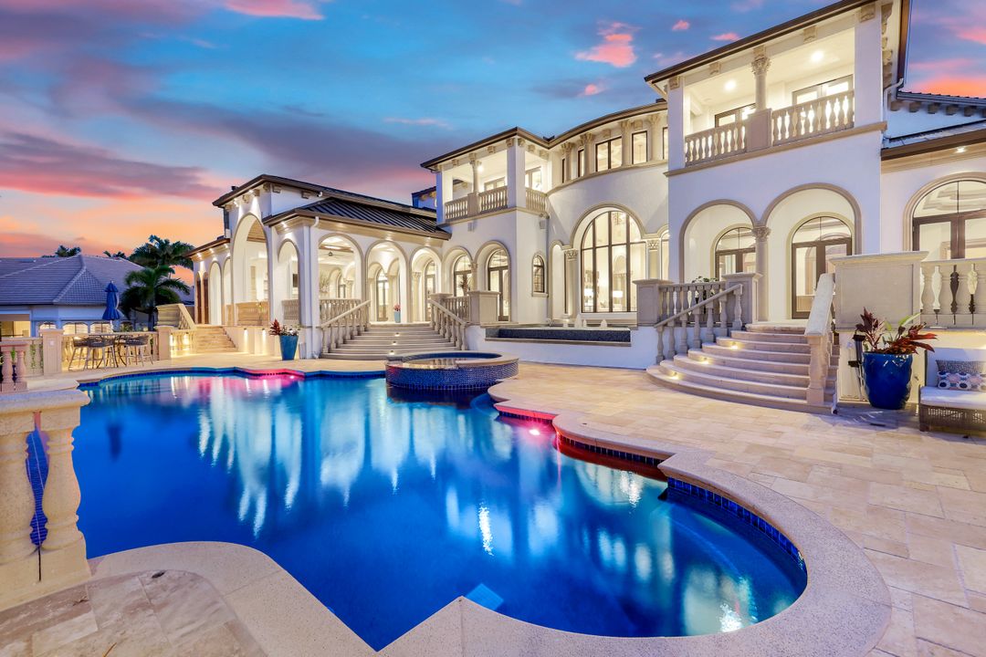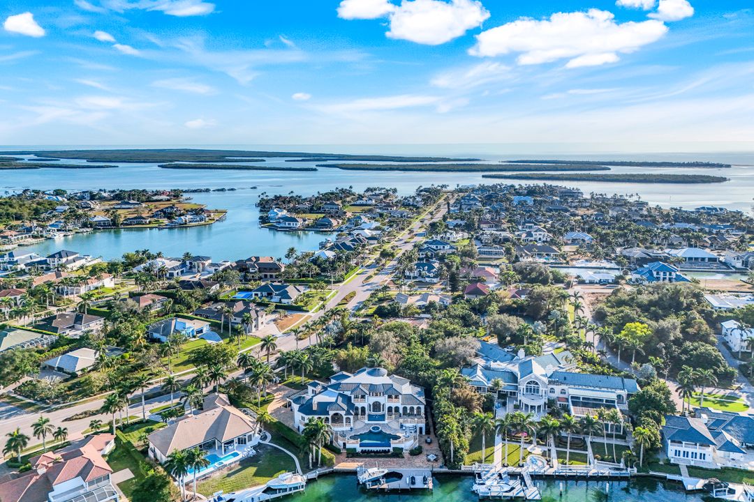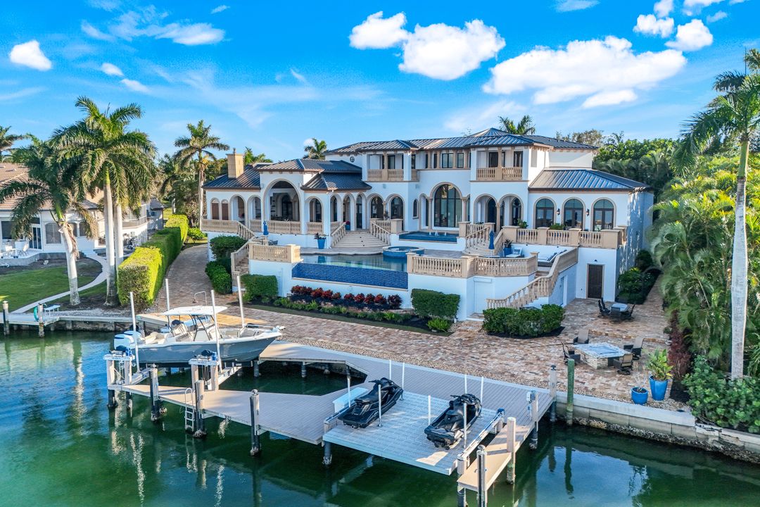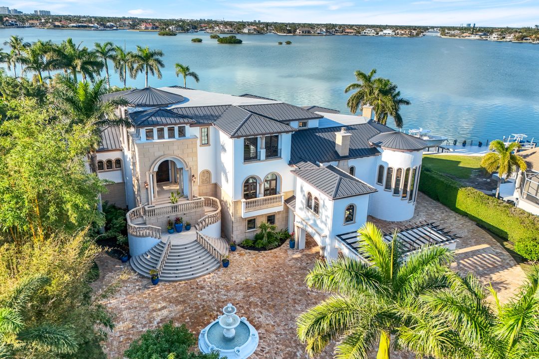 Welcome to an extraordinary estate of grandeur and refinement on Marco Island, where 9,481 SF of sophisticated living space meets an impressive total of 15,072 SF, elevated 18 feet above sea level for ultimate peace of mind. This rare .87-acre gated estate offers privacy, lush landscaping, and stunning wide sunset views of Roberts Bay, complemented by deep-water direct access with a slip for up to a 47-ft boat on a 36K LB lift with additional jet ski/flat boat platforms. The ground-level, climate-controlled garage spans 4,075 SF and accommodates 14 vehicles with custom epoxy flooring, 2 lifts, and room for more. Designed for the automotive enthusiast, it features a full-size fitness center, billiards room, tackle room, gun-safe room, workbench, and a lounge area making for an unparalleled "man cave." Enveloping you in an atmosphere of refined grand scale elegance discover inside, the hewn doors, barrel-vaulted, coffered, and domed ceilings, soaring archways, Corinthian columns and meticulous painted finishes, enhanced by Control4 automation throughout the home, epitomizing ultimate luxury. A 2-story great room, with soaring cathedral windows, showcases wrought iron railings, marble floors, and multiple sparkling chandeliers. An expansive chef's kitchen boasts stunning countertops, a massive island, and top-tier appliances with a sun filled breakfast room, full butler's pantry and formal dining room nearby. Dual his-and-her studies offer a harmonious blend of productivity and privacy, for focused work and personal reflection.The luxurious primary suite includes a private patio, steam shower, spa-like bath, and walk-in closets that double as a safe room. Upstairs, a bridge connects 3 beautifully appointed private ensuites, one jack and jill, with a massage room. Nearby find a home theater with seating for 11. Two elevators provide access with one dedicated exclusively to the kitchen and service areas. The rear outdoor space cascades elegantly toward the waterfront, featuring a serene reflecting pool with a tranquil water feature and a fully equipped outdoor kitchen that includes a pizza oven, built-in grill, refrigerators, and ice maker, all perfectly designed for luxurious outdoor entertaining, with music piped through the interior and exterior refining your experience. Terraced landscaping, enhanced by sophisticated outdoor lighting, guides you to the sculpted vanishing-edge pool and waterfall spa, creating breathtaking ambiance. Drive seamlessly from your car to your boat, enjoying an effortless luxury lifestyle. This extraordinary property is a masterpiece of thoughtful design, unparalleled privacy, and modern convenience, crafted on a grand scale to exceed the expectations of the most discerning buyer. Pat Wilkins | 239-290-8593 | https://MarcoExpert.com
