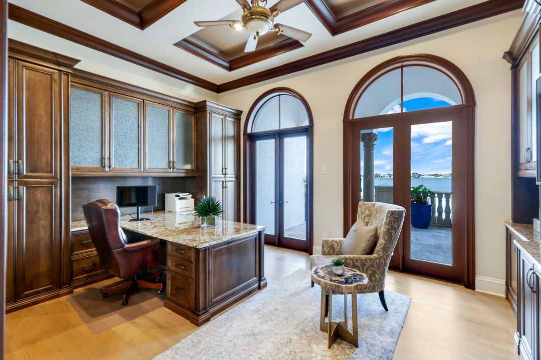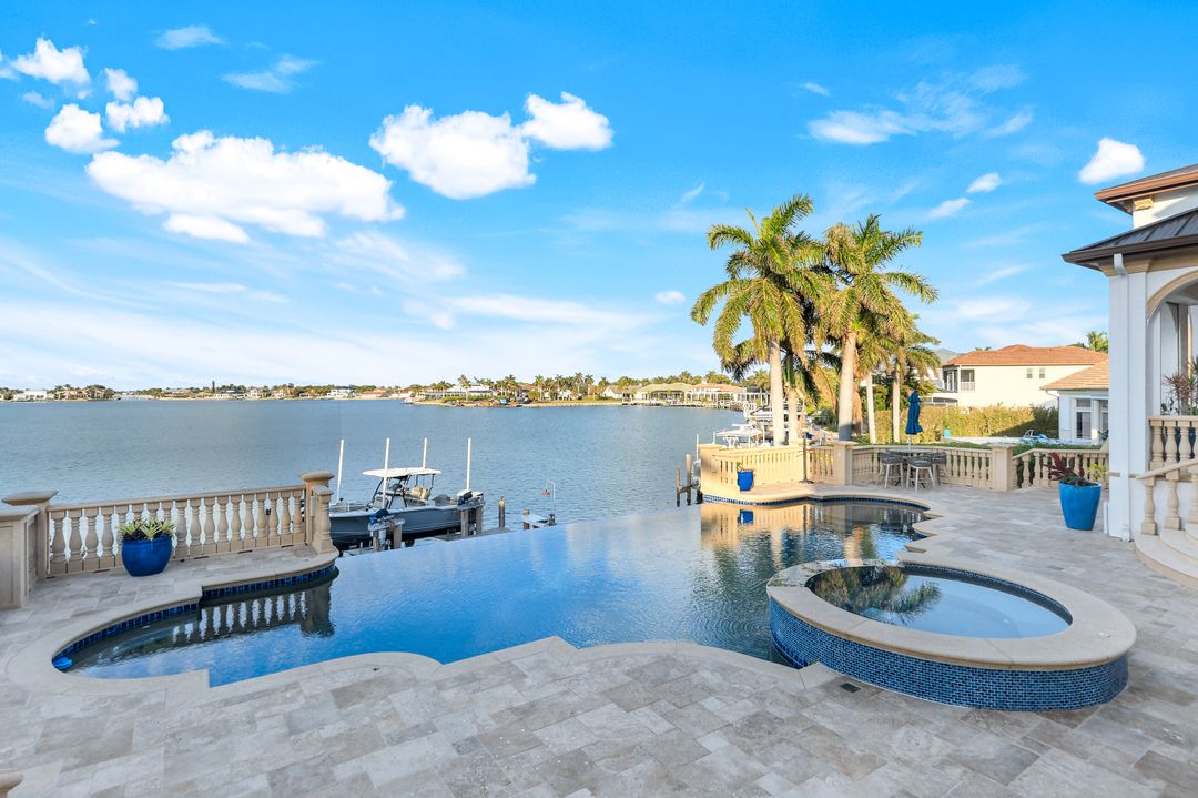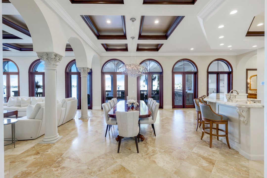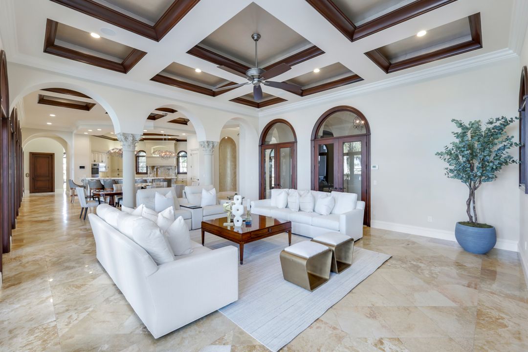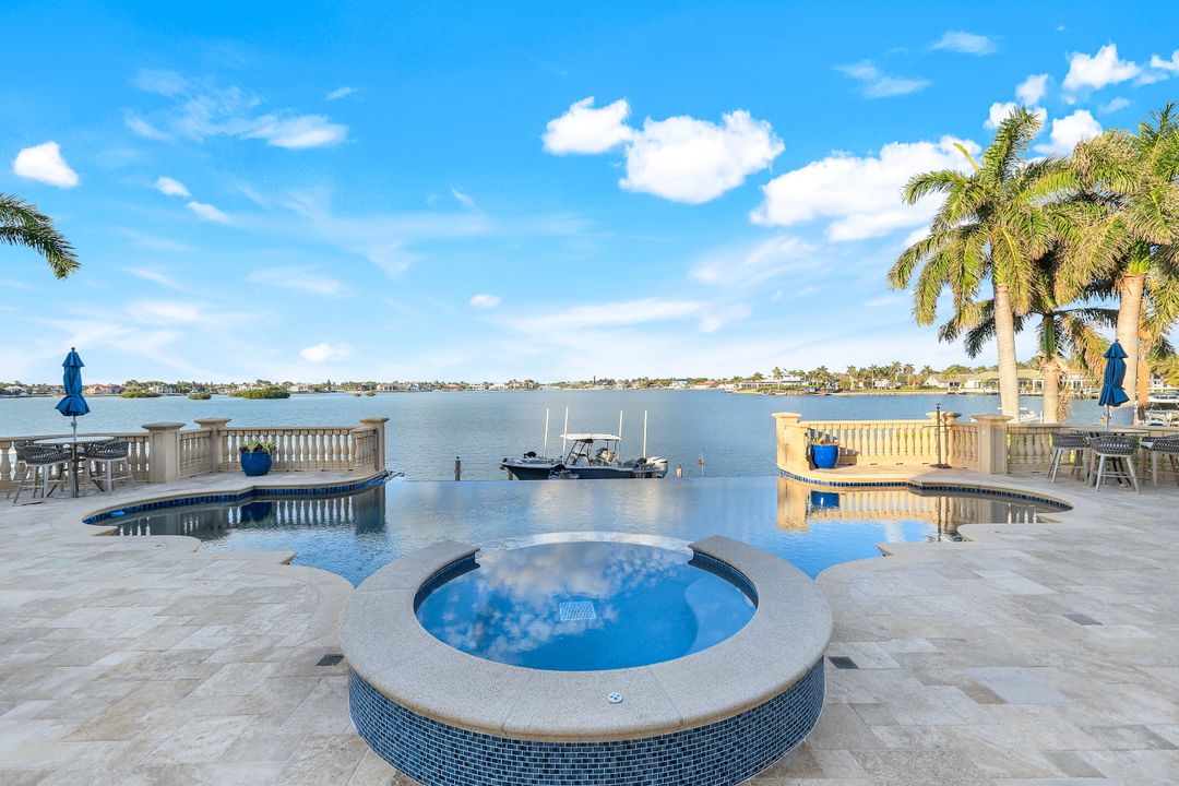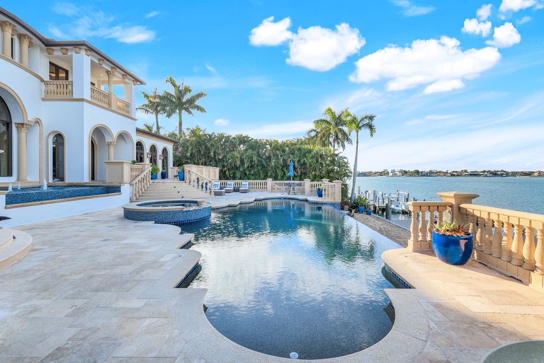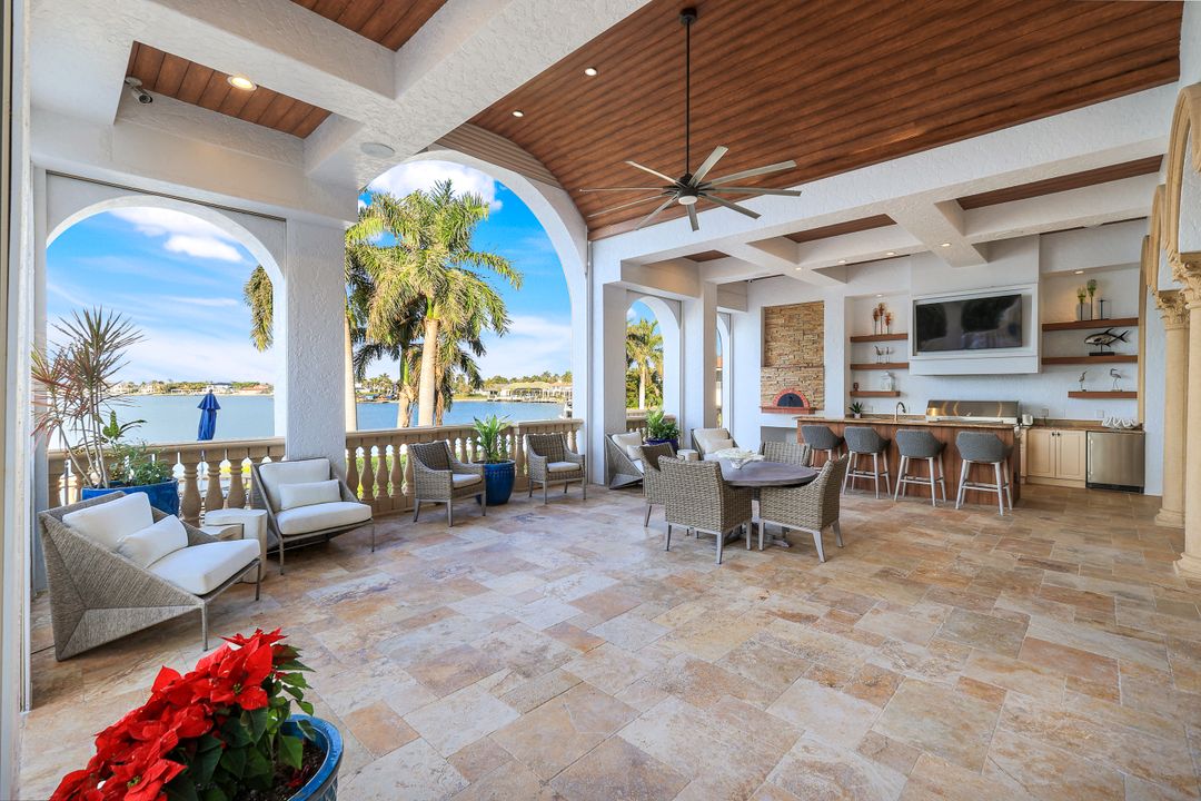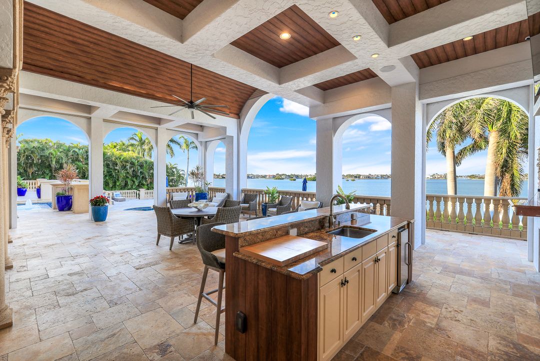 Welcome to an extraordinary estate of grandeur and refinement on Marco Island, where 9,481 SF of sophisticated living space meets an impressive total of 15,072 SF, elevated 18 feet above sea level for ultimate peace of mind. This rare .87-acre gated estate offers privacy, lush landscaping, and stunning wide sunset views of Roberts Bay, complemented by deep-water direct access with a slip for up to a 47-ft boat on a 36K LB lift with additional jet ski/flat boat platforms. The ground-level, climate-controlled garage spans 4,075 SF and accommodates 14 vehicles with custom epoxy flooring, 2 lifts, and room for more. Designed for the automotive enthusiast, it features a full-size fitness center, billiards room, tackle room, gun-safe room, workbench, and a lounge area making for an unparalleled "man cave." Enveloping you in an atmosphere of refined grand scale elegance discover inside, the hewn doors, barrel-vaulted, coffered, and domed ceilings, soaring archways, Corinthian columns and meticulous painted finishes, enhanced by Control4 automation throughout the home, epitomizing ultimate luxury. A 2-story great room, with soaring cathedral windows, showcases wrought iron railings, marble floors, and multiple sparkling chandeliers. An expansive chef's kitchen boasts stunning countertops, a massive island, and top-tier appliances with a sun filled breakfast room, full butler's pantry and formal dining room nearby. Dual his-and-her studies offer a harmonious blend of productivity and privacy, for focused work and personal reflection.The luxurious primary suite includes a private patio, steam shower, spa-like bath, and walk-in closets that double as a safe room. Upstairs, a bridge connects 3 beautifully appointed private ensuites, one jack and jill, with a massage room. Nearby find a home theater with seating for 11. Two elevators provide access with one dedicated exclusively to the kitchen and service areas. The rear outdoor space cascades elegantly toward the waterfront, featuring a serene reflecting pool with a tranquil water feature and a fully equipped outdoor kitchen that includes a pizza oven, built-in grill, refrigerators, and ice maker, all perfectly designed for luxurious outdoor entertaining, with music piped through the interior and exterior refining your experience. Terraced landscaping, enhanced by sophisticated outdoor lighting, guides you to the sculpted vanishing-edge pool and waterfall spa, creating breathtaking ambiance. Drive seamlessly from your car to your boat, enjoying an effortless luxury lifestyle. This extraordinary property is a masterpiece of thoughtful design, unparalleled privacy, and modern convenience, crafted on a grand scale to exceed the expectations of the most discerning buyer. Pat Wilkins | 239-290-8593 | https://MarcoExpert.com