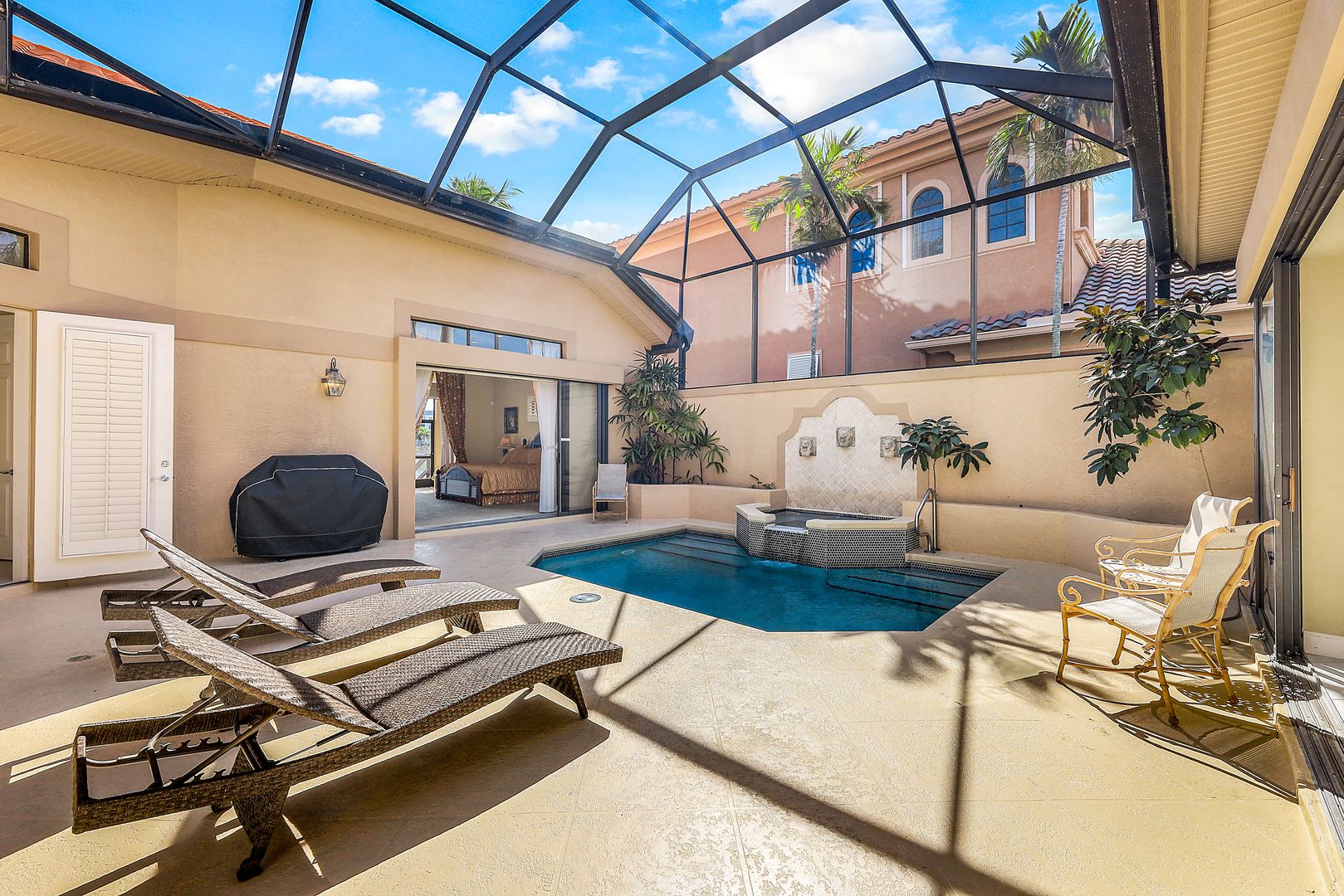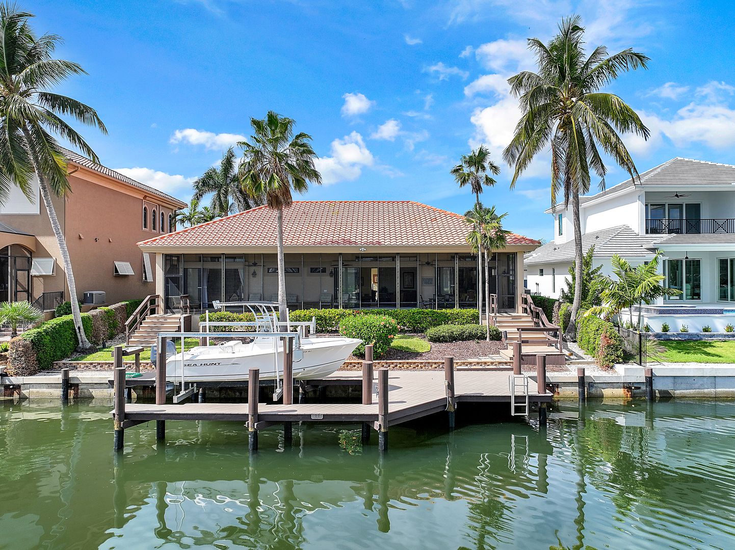 Location, Location, Location! Rare opportunity to own this property, located on one of the most sought after streets, a view and within 10 minute walk to Marco Island's "South Beach" access. This private courtyard style home with poolside cabana (1 bedroom suite with full bath) for a total of 4 bedroom, 3 1/2 baths, living, family and formal dinning rooms all of which can be opened up to your privet outdoor living areas. Screened waterfront lanai with hurricane shutters showcases the beautiful, panoramic, converging waterway views. New dock 2021, with lift, and direct access to the Gulf of Mexico, 10,000 Islands, incredible fishing, sightseeing and adventure. This home would be a fantastic residence, vacation home or rental property. Sold turnkey furnished.