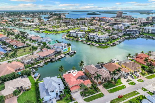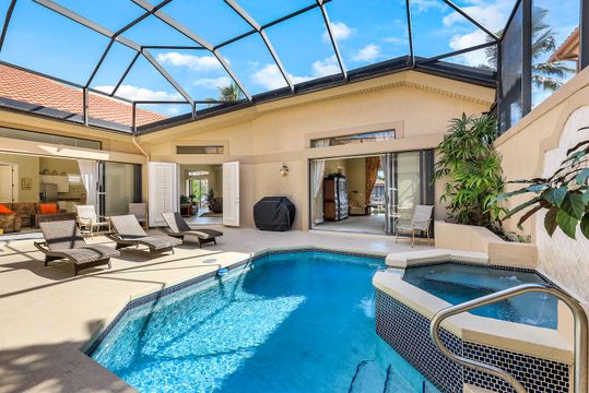 Location, Location, Location! Rare opportunity to own this property, located on one of the most sought after streets, a view and within 10 minute walk to Marco Island's "South Beach" access. This private courtyard style home with poolside cabana (1 bedroom suite with full bath) for a total of 4 bedroom, 3 1/2 baths, living, family and formal dinning rooms all of which can be opened up to your privet outdoor living areas. Screened waterfront lanai with hurricane shutters showcases the beautiful, panoramic, converging waterway views. New dock 2021, with lift, and direct access to the Gulf of Mexico, 10,000 Islands, incredible fishing, sightseeing and adventure. This home would be a fantastic residence, vacation home or rental property. Sold turnkey furnished.
