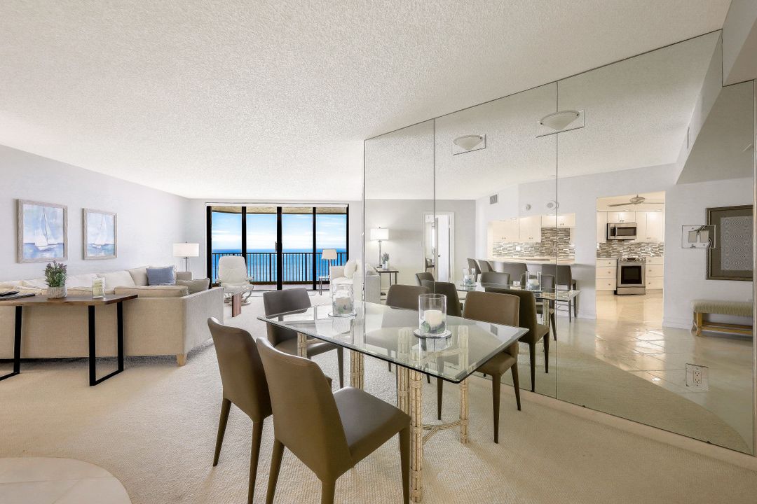 Spacious turn-key furnished 17th floor two bedroom plus den beach front condo offering breathtaking unobstructed Southwest Gulf views from every room. Fabulous split floor plan with updated kitchen, breakfast bar, dining area, walk-in closets, custom built-ins, storm shutters, separate laundry room, and extra-large storage on the same floor. New washer and dryer. Enjoy beautiful sunsets from your extensive open lanai. Luxury building with outstanding amenities that include a pool, spa, tennis, BBQ, Chickee hut, billiards, ping pong, sauna, exercise room, community room, guest suites, trash chute, beach access, covered parking, and on-site Management. Located on the south-end of Marco Island this is the perfect opportunity to start living in paradise today!