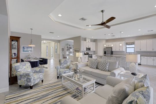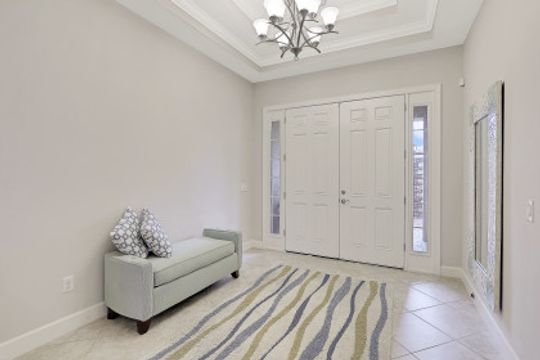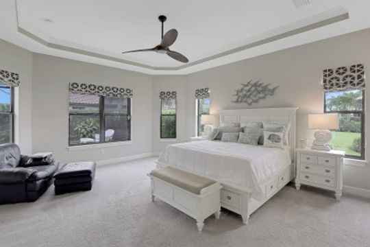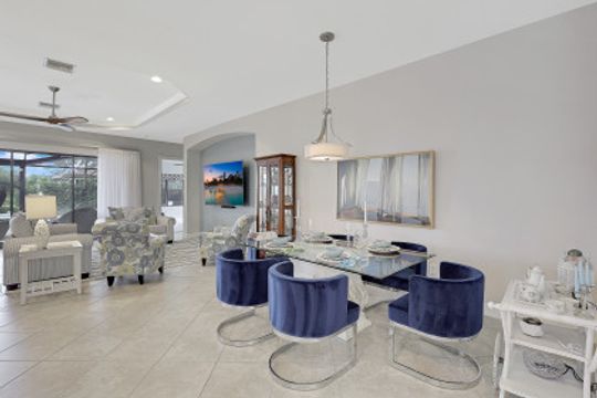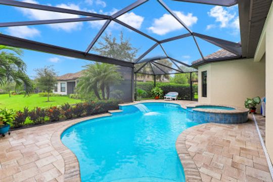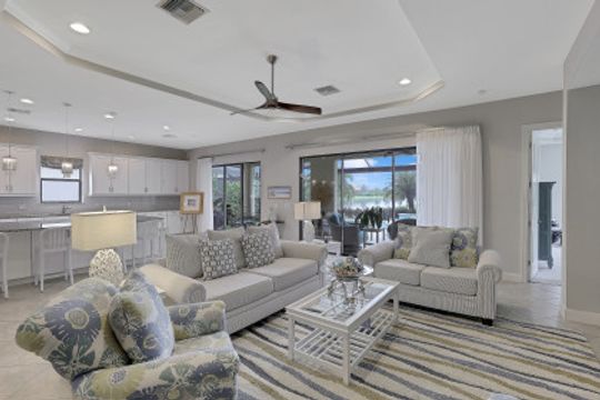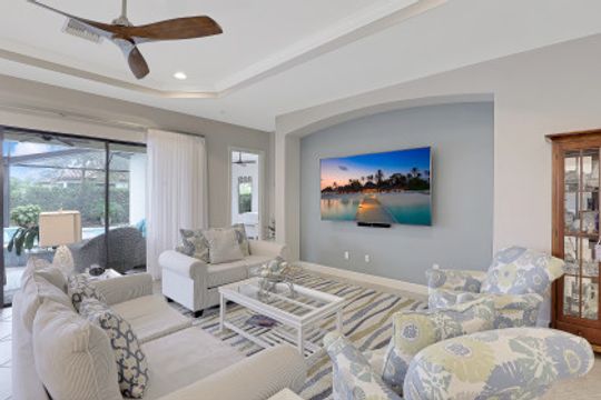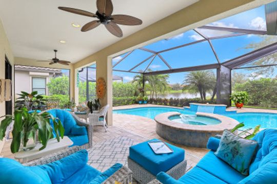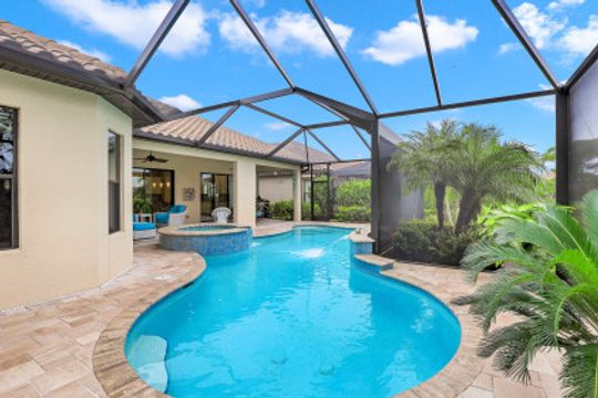 Located in the beautiful, gated community of Esplanade at Hacienda Lakes you will find this highly desired Taylor Morrison Pallazio floorplan. Conveniently nestled in between downtown Naples and the white sandy beaches of Marco Island. This home was built in 2014 and is packed with over $190K worth of builder and custom upgrades! Enter through the private courtyard with double doors where you will be greeted by the stunning foyer. Step a little further into the expansive great room that includes tray ceilings, tile flooring and hurricane impact sliding glass doors. Expansive screened lanai with saltwater heated pool and spa, picture frame screens and covered sitting area make entertaining guests a breeze. When it is time for lunch make your way over to your gourmet kitchen equipped with stainless steel appliances, granite countertops, white cabinetry, and large island/breakfast bar. Retreat to your master suite featuring volume tray ceilings and massive walk-in rain shower. Esplanade at Hacienda Lakes has no shortage of amenities including clubhouse, fitness center, resort style pool and spa, bocce ball, tennis/pickle ball courts. Don’t miss out on owning this piece of paradise!