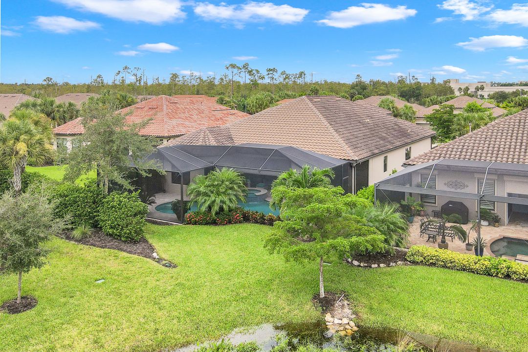Located in the beautiful, gated community of Esplanade at Hacienda Lakes you will find this highly desired Taylor Morrison Pallazio floorplan. Conveniently nestled in between downtown Naples and the white sandy beaches of Marco Island. This home was built in 2014 and is packed with over $190K worth of builder and custom upgrades! Enter through the private courtyard with double doors where you will be greeted by the stunning foyer. Step a little further into the expansive great room that includes tray ceilings, tile flooring and hurricane impact sliding glass doors. Expansive screened lanai with saltwater heated pool and spa, picture frame screens and covered sitting area make entertaining guests a breeze. When it is time for lunch make your way over to your gourmet kitchen equipped with stainless steel appliances, granite countertops, white cabinetry, and large island/breakfast bar. Retreat to your master suite featuring volume tray ceilings and massive walk-in rain shower. Esplanade at Hacienda Lakes has no shortage of amenities including clubhouse, fitness center, resort style pool and spa, bocce ball, tennis/pickle ball courts. Don’t miss out on owning this piece of paradise!