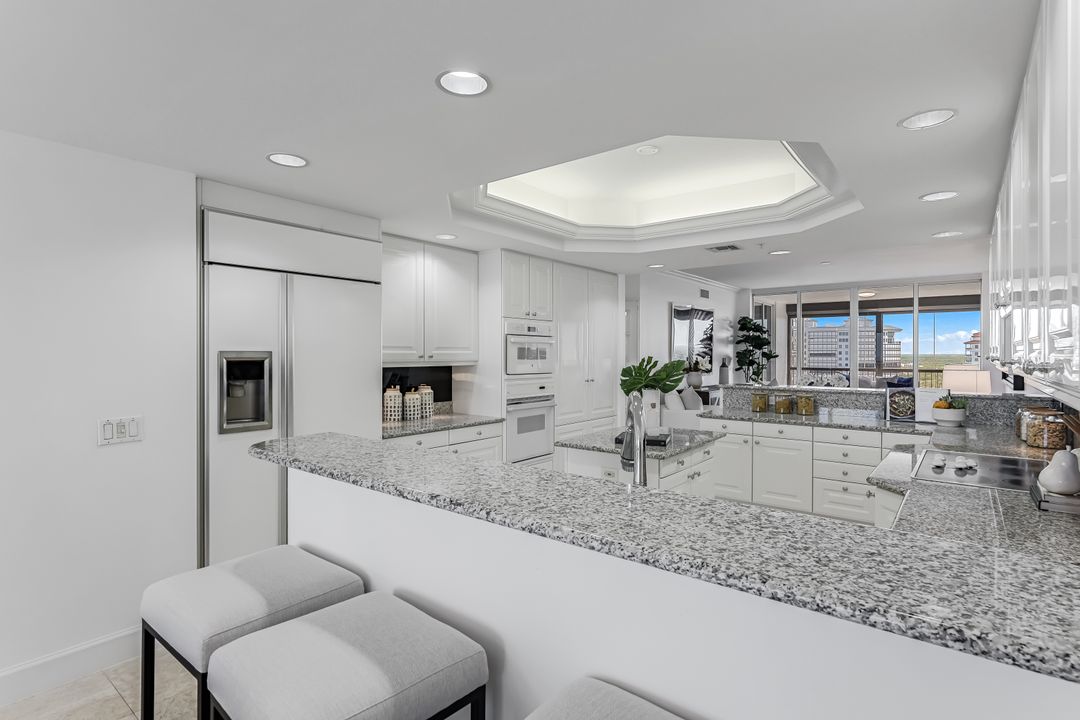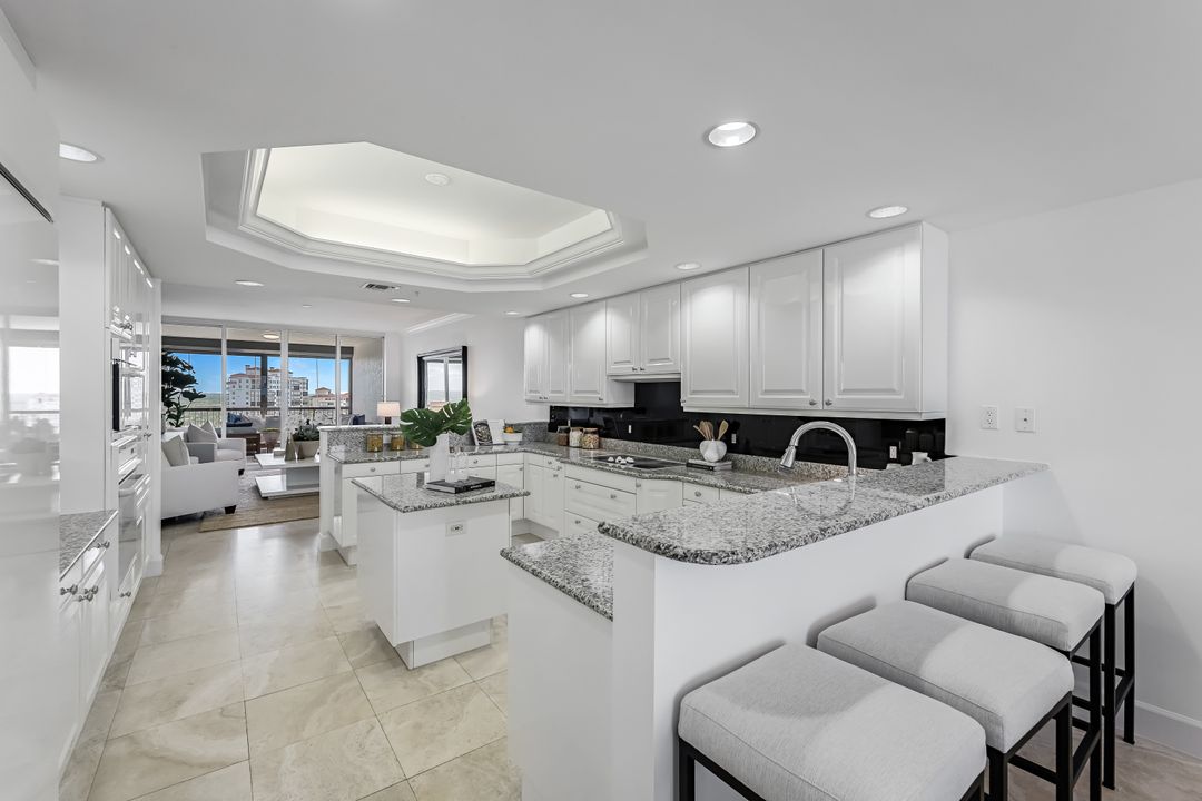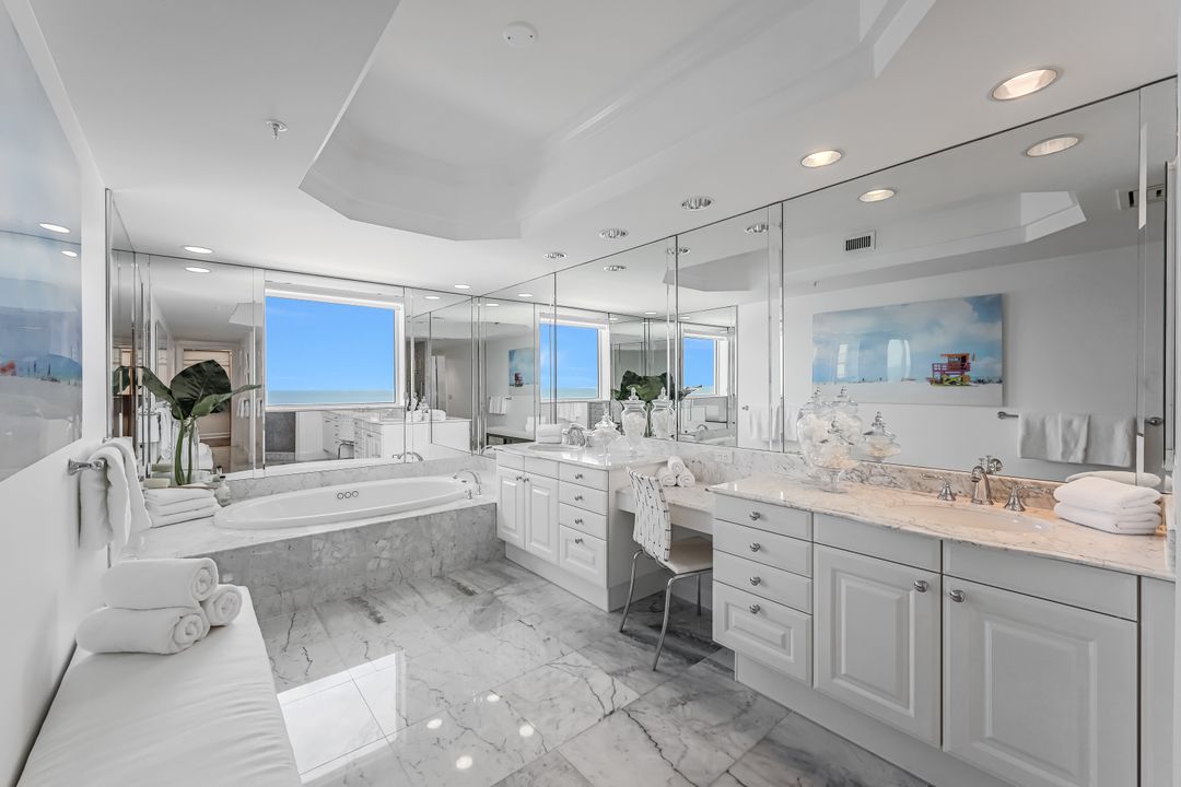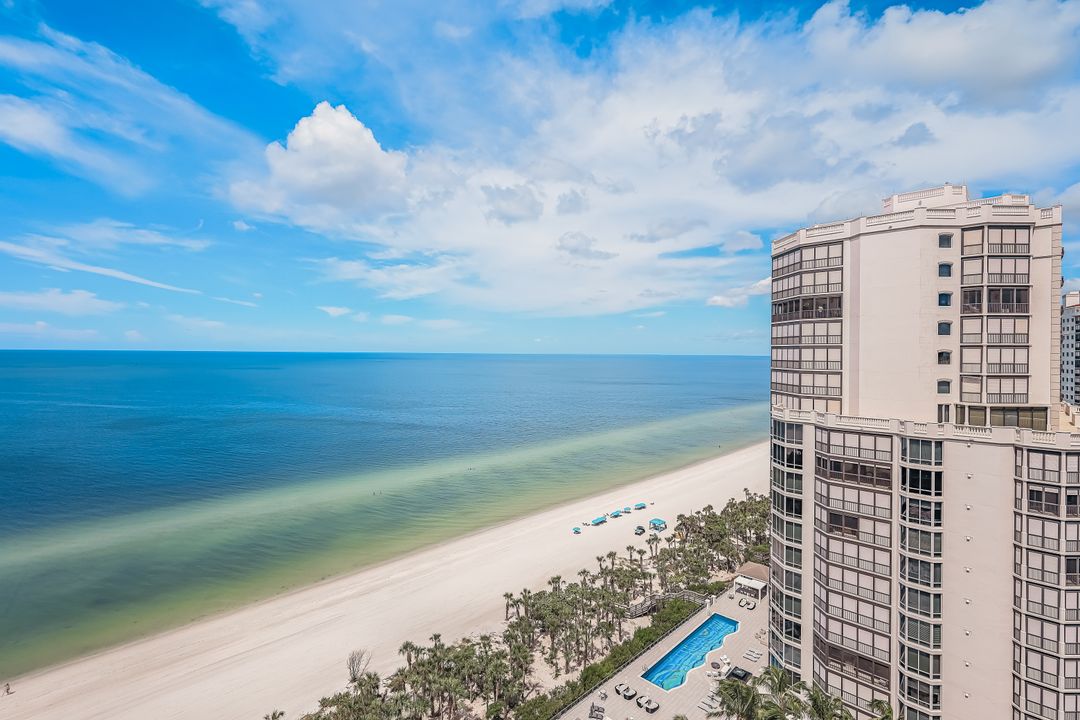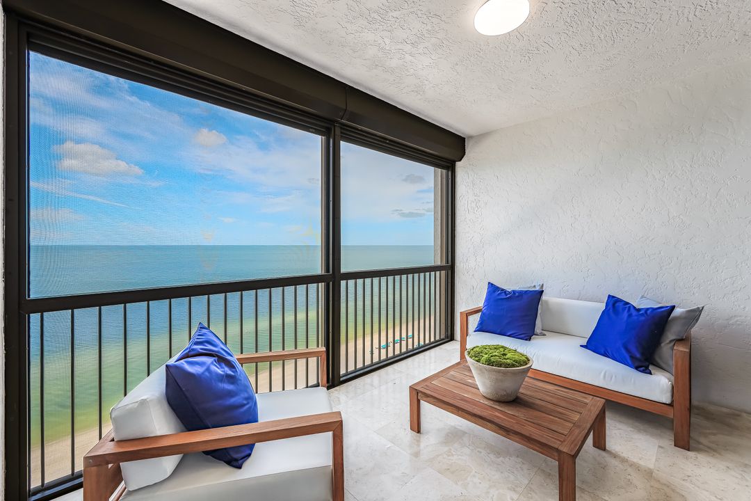 A Naples Dreamscape! Totally refreshed with endless soaring views from the eighteenth floor of the luxe world-class Biltmore Condominium located directly on the Beach. Kick off your shoes and roam through this sprawling, comfortable beautiful home with ample room for family, friends and spontaneous entertainment. Or select from one of three fabulous lanais for lazy day gazing, peaceful reading or just relaxing refreshments. The Biltmore is undergoing an impressive exterior renovation to its Entrance and Pool Deck, soon to be the envy of its waterfront neighbors. Located in the exclusive gated enclave of Bay Colony with private beach access, residents enjoy a cruise-like lifestyle replete with attended beach service, tennis courts and members-only outdoor and indoor upscale dining venue
