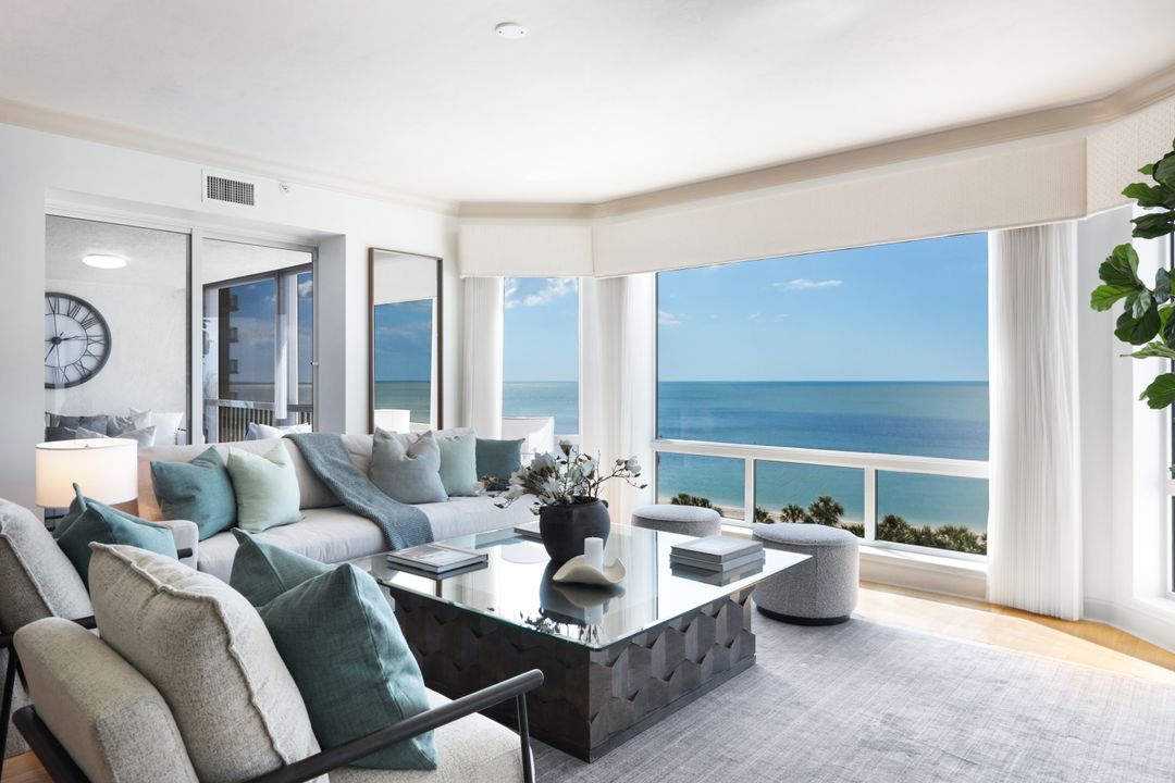 Like a rainbow, the beauty and radiance of this stunning home will take you by surprise. A gorgeous picture postcard of the gulf and beach with endless cascading waves is on view from all of your beachfront windows and lanais. Generously sized at three bedrooms with multiple dining areas and in pristine condition, you and your loved ones will enjoy the ultimate Naples lifestyle. The primary suite boasts two walk-in closets, its own lanai and an oversize spa-like bathroom. Situated in the exclusive gated enclave of Bay Colony at Pelican Bay, the Biltmore will soon be the resort condominium of choice as it unveils its beautiful new pool deck that leads you directly to the sand. Or you can indulge further by strolling over to the members-only Beach Club and Restaurant or one of Bay Colony's private tennis courts. As a resident, you will also enjoy all of the fabulous amenities of Pelican Bay, including two additional beachfront restaurants, a host of water activities and an active community center. Hesitation will not win this season-ready exceptional residence, because like a rainbow it will disappear.