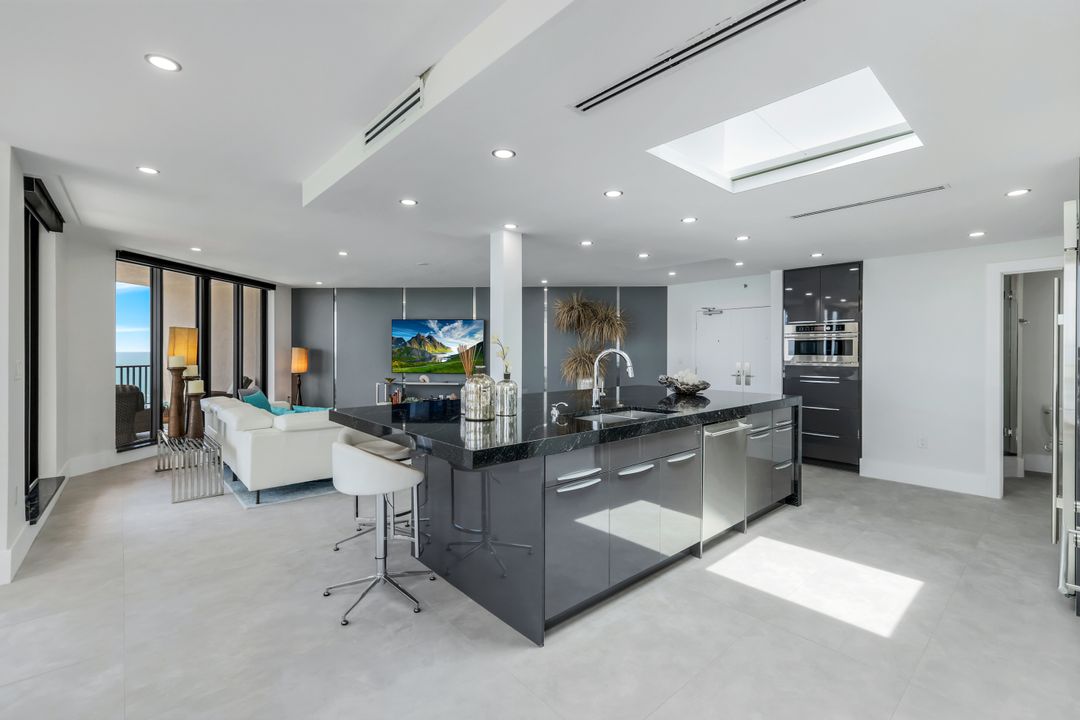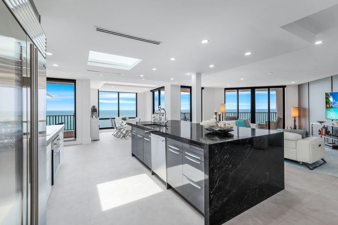 Stunning Penthouse, rarely available, with breathtaking and forever beach, gulf and sweeping island views including iconic landmarks like Cape Marco, Tigertail Beach and the famous Ten Thousand islands. The epitome of modern sophistication and coastal luxury yet comfortable waterfront living. This grandiose 3 bedroom- 3 full bath residence with 4 balconies, high impact windows and tile throughout has been completely renovated. The exquisitely open floor plan flows smoothly integrating the spacious living and dining room areas showcasing a fabulous gourmet kitchen with pot filler, rich cabinetry, top-of-the-line appliances, wine cooler, top notch Miele Coffee machine to savor your favorite coffee and gorgeous quartz island making it the ideal setting to entertain, and/or relax. Unique accent walls, recess lighting, Motorized window treatments, Hunter Douglas blinds, skylight and mesmerizing, unobstructed vistas from every room to enjoy unforgettable sunsets, inspiring sunrises and the phenomenal skyline of Marco Island at night. Watch the boats go by, witness wild marine life, dolphins playing, and exotic birds flying by. Exquisitely appointed and professionally decorated. Offered fully furnished for your convenience. Sandpiper building has been completely renovated offering a timeless coastal feel and desirable amenities including Guest Suite, Social and Exercise Room, Full-Service Kitchen, Tropical Pool/Spa/BBQ, Outdoor Shower & Dining Areas, gated beach walkway with storage for your beach gear, covered parking, pickle Ball/Tennis/Shuffleboard courts & car wash. Privileged location right on the beach and close to shops, restaurants, movie theater, miniature Golf Course and more. Paradise living at its finest!