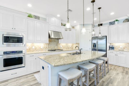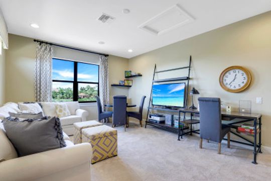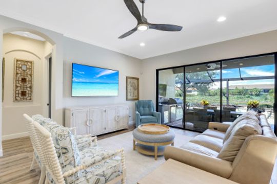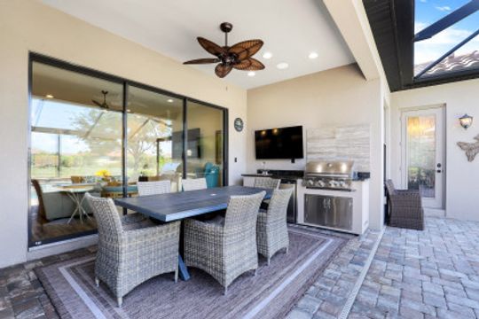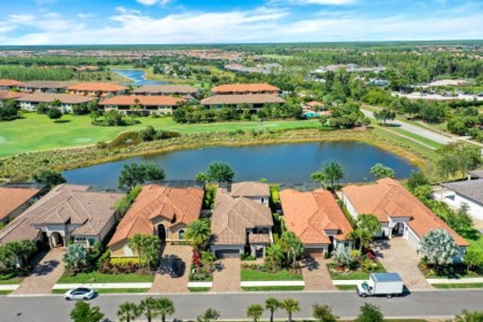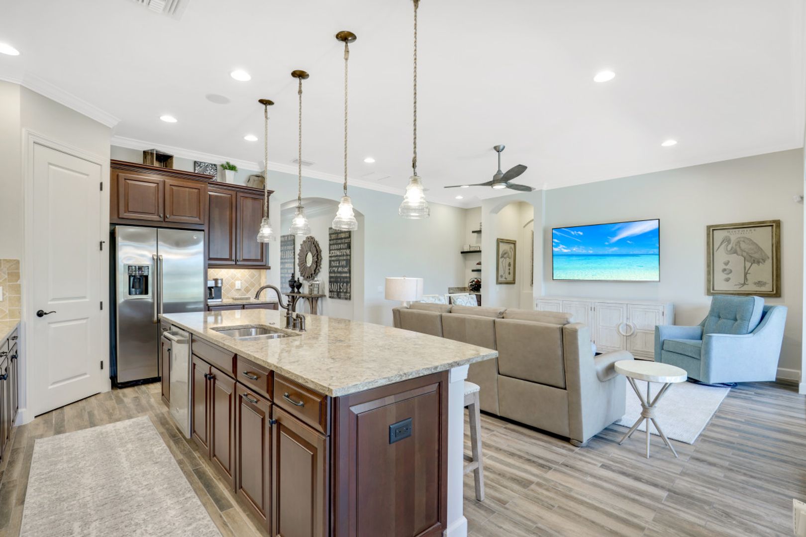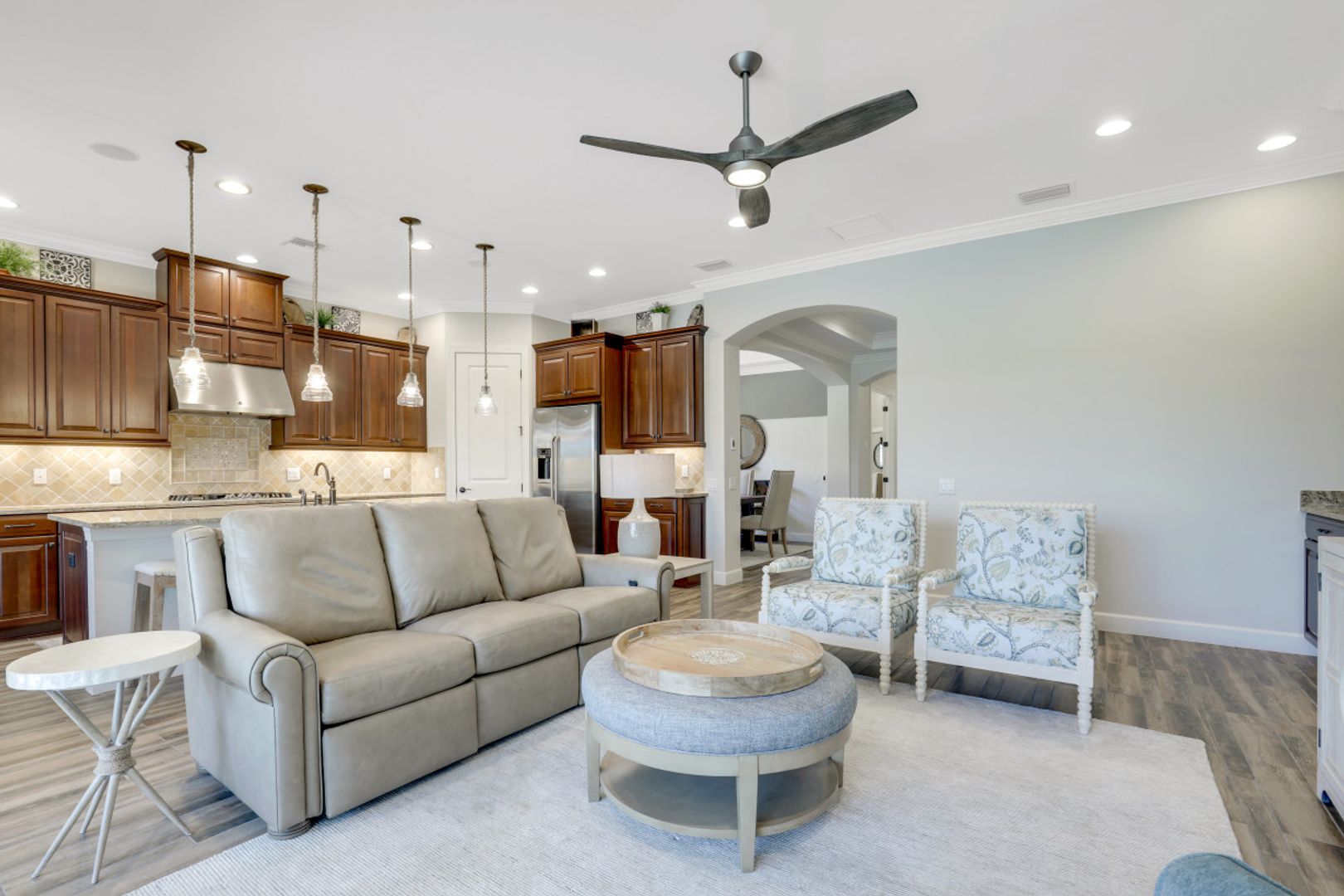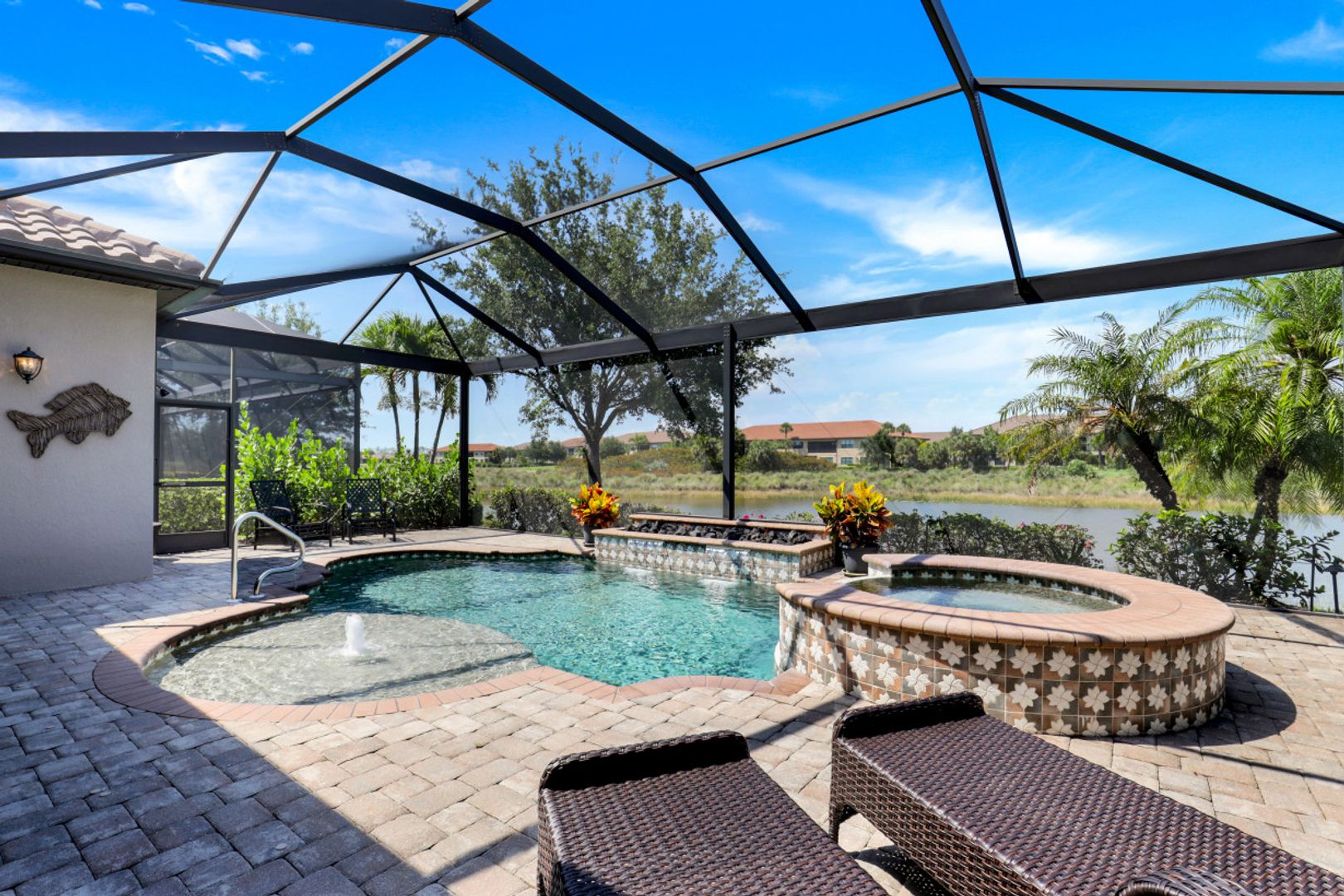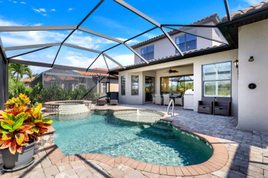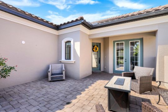 LEAST EXPENSIVE HOME PRICE PER SQ FT! This former builder model offers 3 Bedrooms+Den+Loft, 3.5 Baths plus pool bath, & 2899 Sq Ft under air! Enjoy the Florida sun in the extended lanai with GAS heated pool/spa along with sunshelf, bubbler, & fire wall all overlooking a pristine lake and the golf course. Other fine appointments include: courtyard style entrance with gate; wood look tile floors throughout the common areas and master suite; GE Cafe appliances include wall oven & GAS cooktop; spacious second floor loft/game room with private bedroom suite. Furniture package available. FULL GOLF/CLUB MEMBERSHIP INCLUDED! Esplanade is a true "Lifestyle Community" with something for everyone: Resort Pool complete with cabanas and beach entrance; 6 tennis courts; 4 bocce balls courts; 4 pickleball courts; Koquina Day Spa offering hair, nail, facial, and spa treatments; Techno Gym with Aerobics Room; Dog Park; Poolside Bahama Bar; 14 miles of bike/walking trails; 18 hole private golf course (can use your own cart); 15,000 Sq Ft Culinary Center featuring restaurant, bars, wine tasting room, wine lockers, & Starbucks style cafe! DUES $2654/QTR including lawn care, golf, & all club amenities!