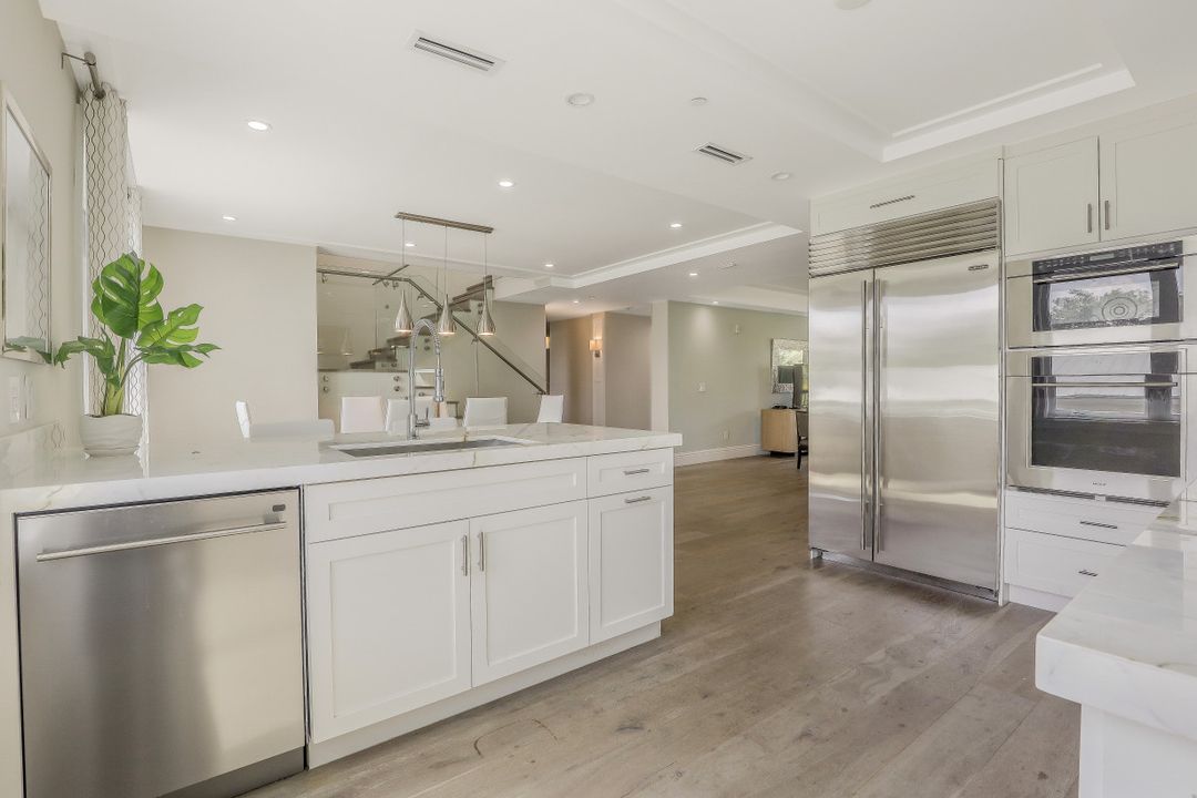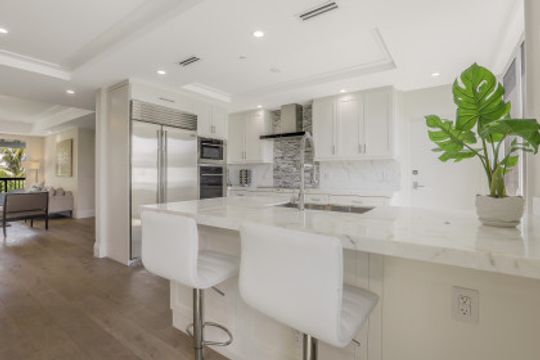 Regarded as the pinnacle in luxury living, this spacious 4 bed / 4 bath penthouse residence is mere steps away from 5th Ave S and world renowned beaches. Sprawling over 3700 sq ft, this luxurious two story residence offers two master suites, conveniently located on each floor, with private balconies and spa inspired bathrooms. The first floor features a chef's kitchen with marble countertops, Wolf and SubZero appliances, and overlooks the adjacent dining and living room. Fashion forward, glass-railing staircase leads to the second floor of the home, or take the convenient private elevator. Entertaining awaits on the second floor with a TV/game room, private balcony and wet bar, complete with a wine cooler and 3 bedrooms and bathrooms. Enjoy the outdoor tropical oasis pool and spa shared only by the four residences. Outstanding finishes and superb living in the heart of Olde Naples; a short stroll from the vibrant shopping and dining of 5th Avenue, Cambier Park, beaches, and the iconic Naples Pier. All 4 residences are for sale-could be purchased as a family compound or corporate retreat.
