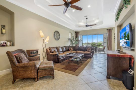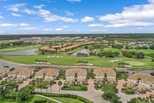 START LIVING A VACATION LIFESTYLE AT THE QUARRY! This spacious 3+Den, 2.5 Bath, 2297 Sq Ft coach home offers expansive long lake and golf course views of the 18th fairway and The Quarry Golf Club. A Great Room style floorplan awaits you at the top of the stairs including a formal dining room, breakfast nook, kitchen with solid wood cabinets, and two sets of sliding glass doors to the lanai. Other fine appointments include multiple tray ceilings throughout, diagonal tile floors, frames shower door in the master bath, crown molding, and more! Enjoy a lakefront living lifestyle in a country club setting! The Quarry is a lakefront community offering Boating, Golf, Tennis, Pickleball, Bocce Ball, Tiki Bar, Restaurant, Pool-Side Food/Drink Service, Gym, Social Activities, and more! The Quarry offers a lifestyle like no other, including an impressive "Lake Lodge" and over 500 acres of lakes that can handle boats & jet skis. The Quarry offers a Private 18 hole Golf Club (Not Mandatory). COMING SOON is a $15M Expansion Project of the Lake Lodge & Beach Club which will include BIGGER & BETTER amenities of all facilities!