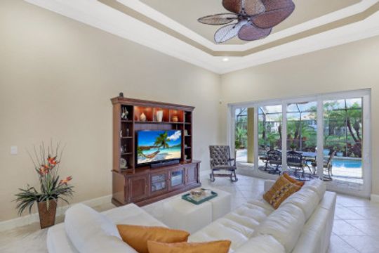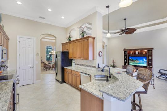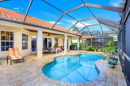 START LIVING A VACATION LIFESTYLE IN THE QUARRY! This immaculate "Reddington" is situated on a direct lake access canal with its own deeded, floating boat slip and is also located just steps away from both the Lake & Golf Lodges! Featuring 3 Bedrooms, Den, 2.5 Baths, and 2601 Sq Ft under air and a long list of upgrades including: BRAND NEW FLAT TILE ROOF (to be completed by Jan/Feb 2022); HURRICANE IMPACT WINDOWS/DOORS; Solar heated, salt water pool; renovated baths including custom vanities and upgraded tile; HVAC & hot water heater replaced in 2018; 12' ceilings/8' doors; and more! The Quarry is a lakefront community offering something for everyone: Boating, Golf, Tennis, Pickleball, Bocce Ball, Tiki Bar, Restaurant, Pool-Side Food/Drink Service, Gym, Social Activities including Full Time Social Director, and more! The Quarry offers a lifestyle like no other, including an impressive "Lake Lodge" and over 500 acres of lakes that can handle boats & jet skis. The Quarry offers a Private 18 hole Golf Club (Not Mandatory). An impressive $15M renovation and expansion of the Lake Lodge & Beach Club is under way and slated to be completed for the 2023 winter season.