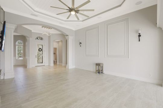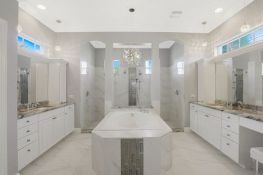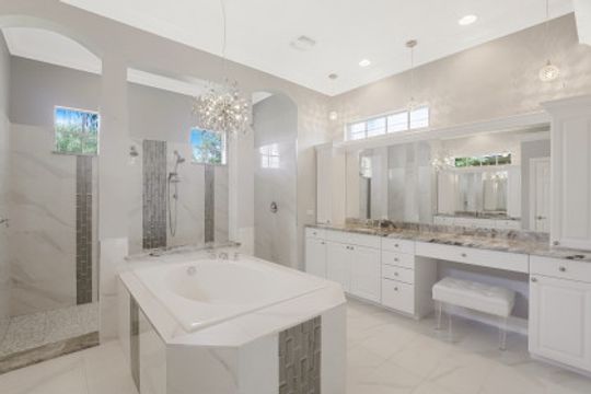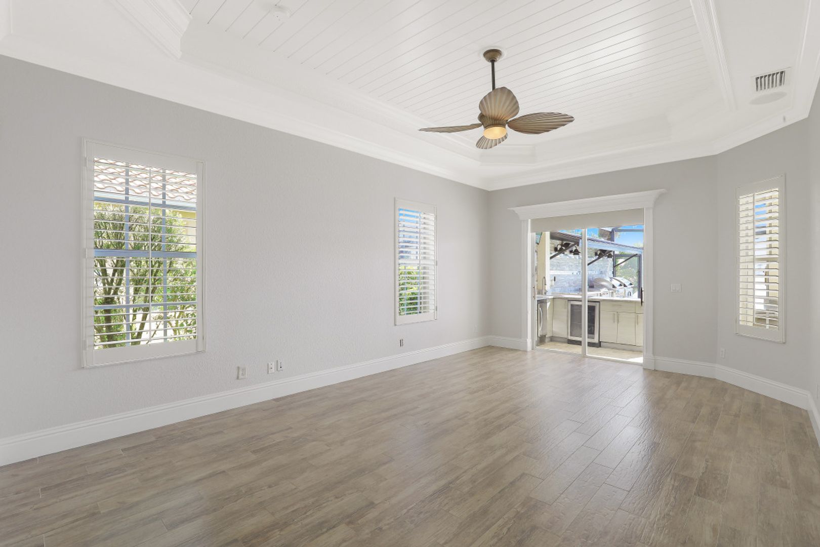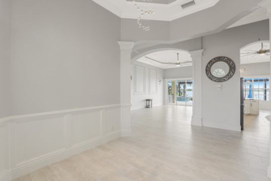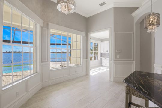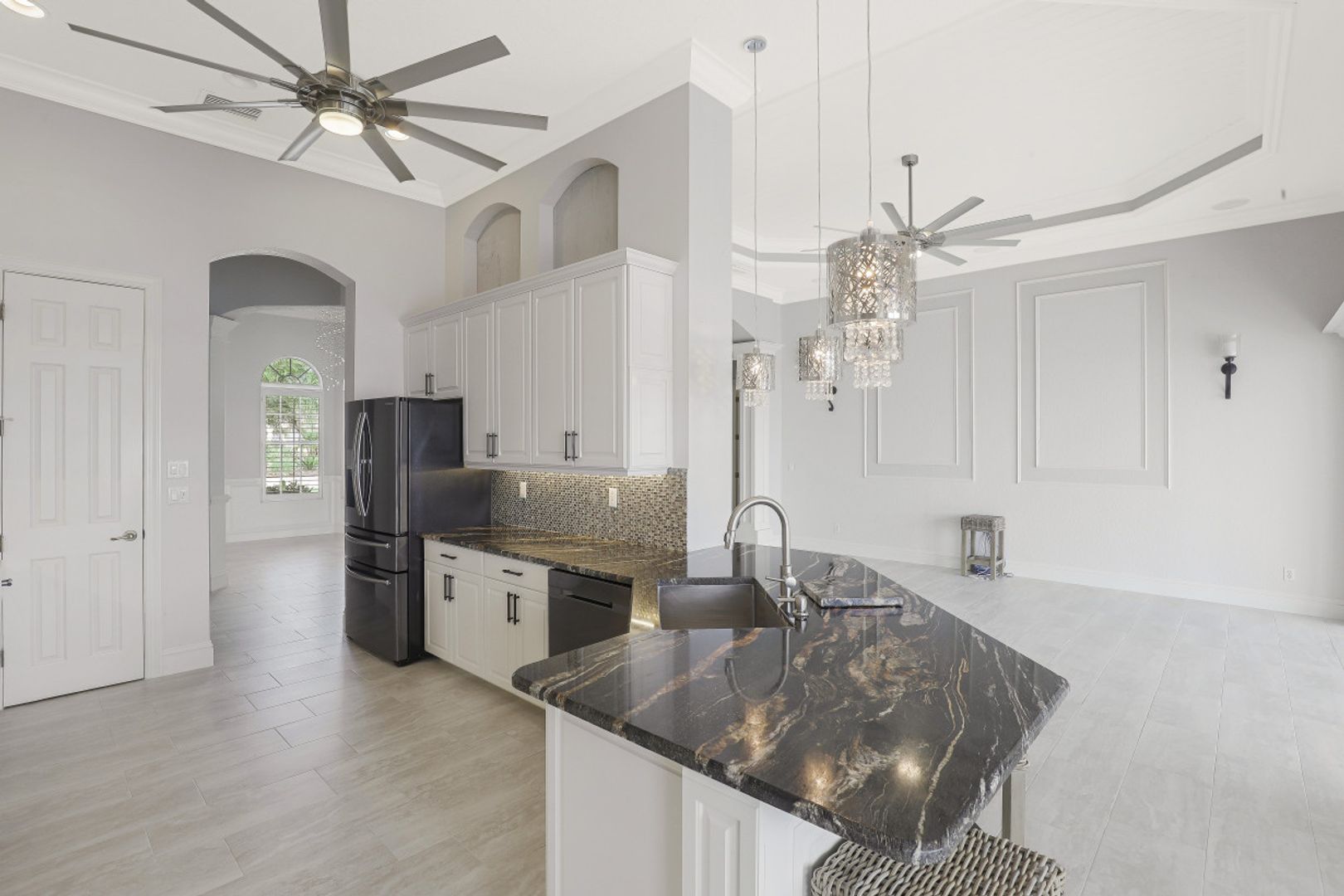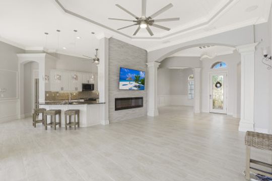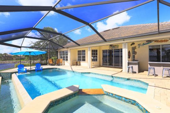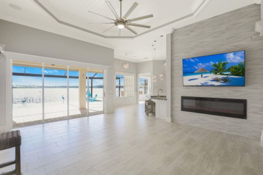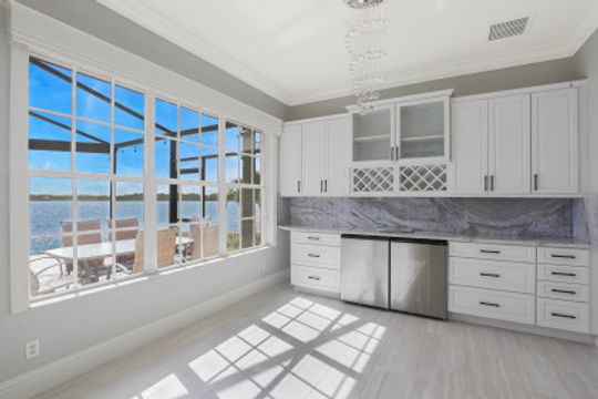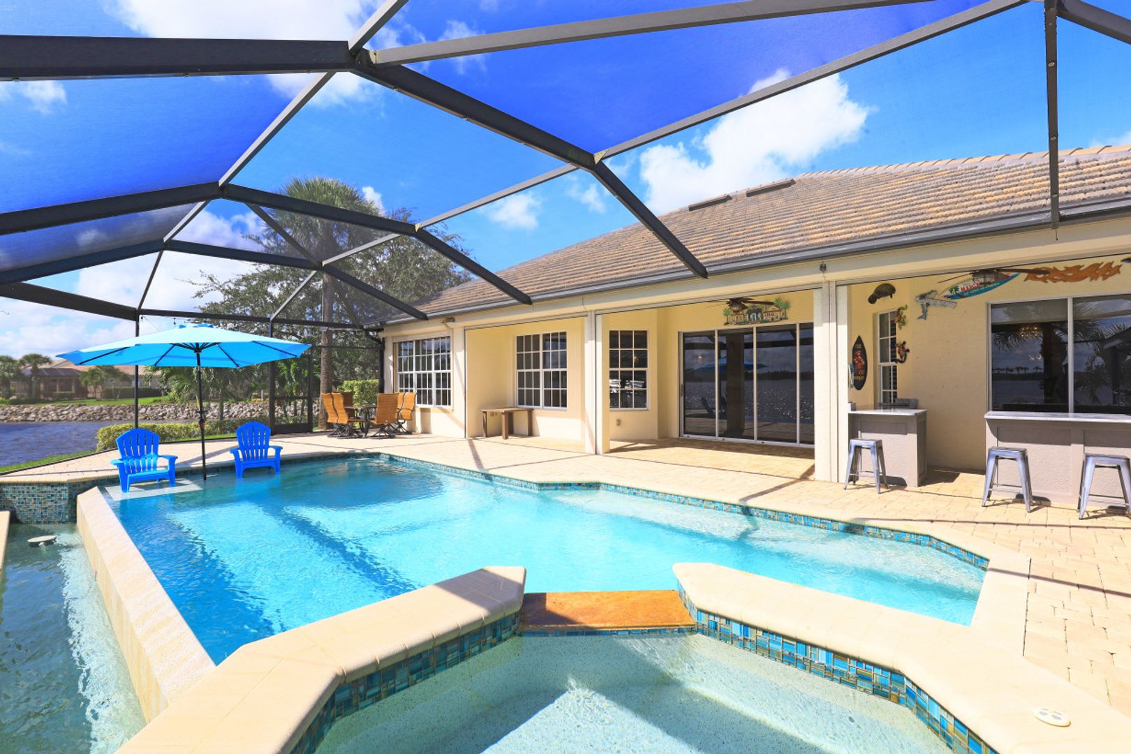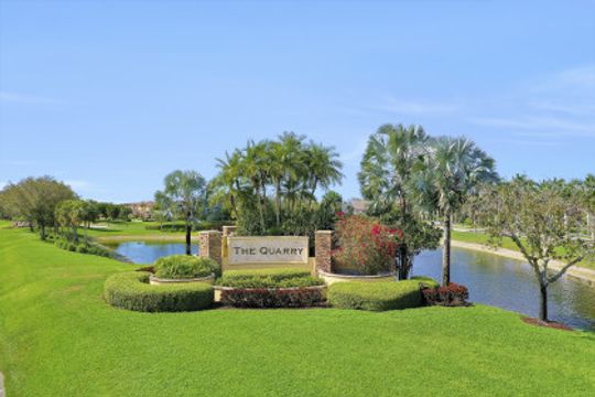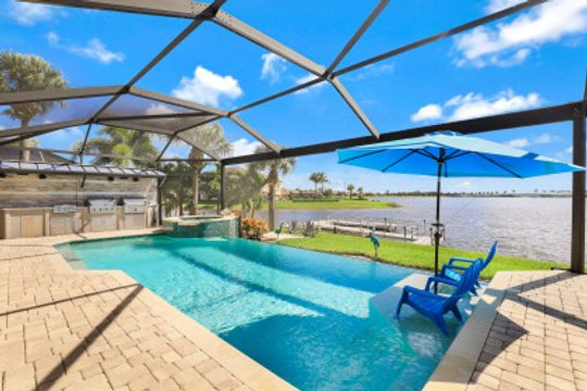 The BEST VIEW in The Quarry! This highly upgraded home is surrounded by water views and is situated on a prime lot at the end of a short cul-de-sac street with breathtaking views of Boulder Lake. This is the ONLY property in the community that offers a concrete sea wall, water on two sides, floating boat dock with ramp, and big lake views. Recently updated over the last few years including: NEW ROOF (2017); NEW AC (2018); Infinity edge, salt water, heated Pool/Spa/Sunshelf; Expansive outdoor bar & kitchen including sink, ice maker, refrigerator, gas grill, charcoal grill, AND hibachi grill; Electric Roll Down Shutters on the rear of the home & accordion shutters; Extended Garage (22'x27'); and more! The Quarry is a Lakefront RESORT STYLE LIVING COMMUNITY offering resort pool, Tiki Bar with Food & Beverage service, Full Time Activities Director, Fitness Center, Tennis Courts, Bocce Courts, and Pickleball courts as part of their Master HOA Dues (No memberships required). The Golf Club offers an 18 hole PGA Level Hurdzan Frye course and its own private clubhouse & restaurant (Golf Memberships available but memberships are not mandatory). Go boating on 500 acres of fresh water lakes.