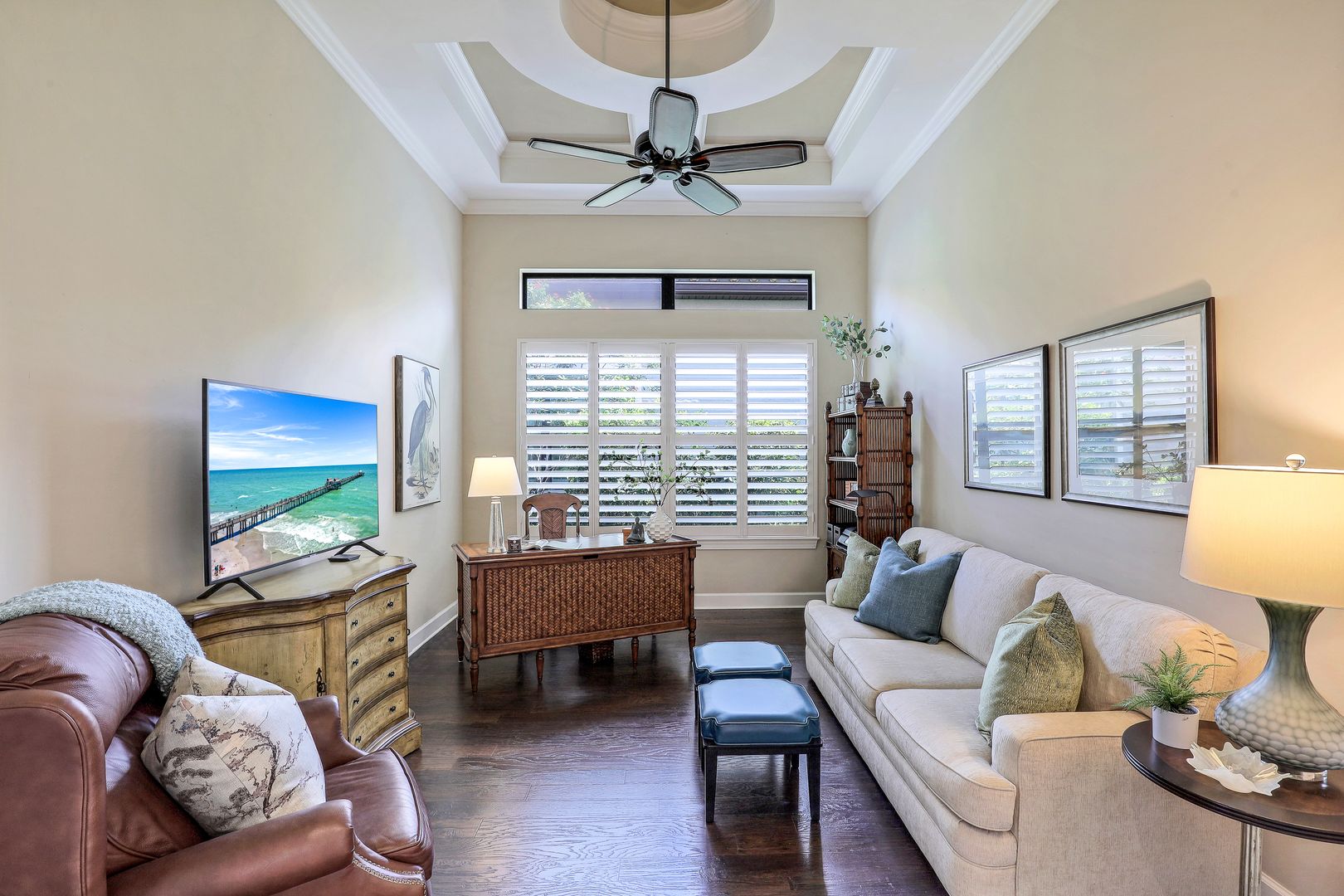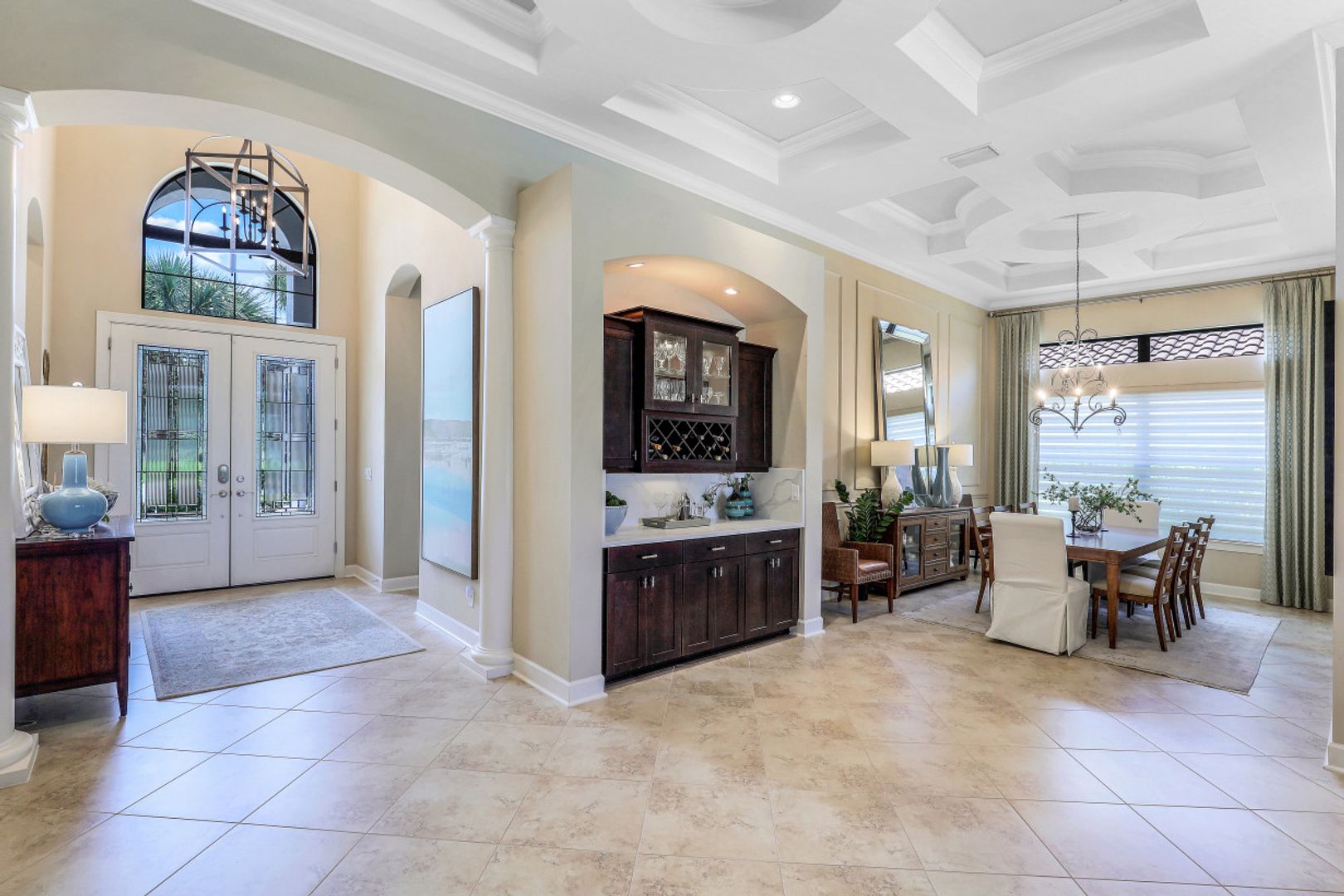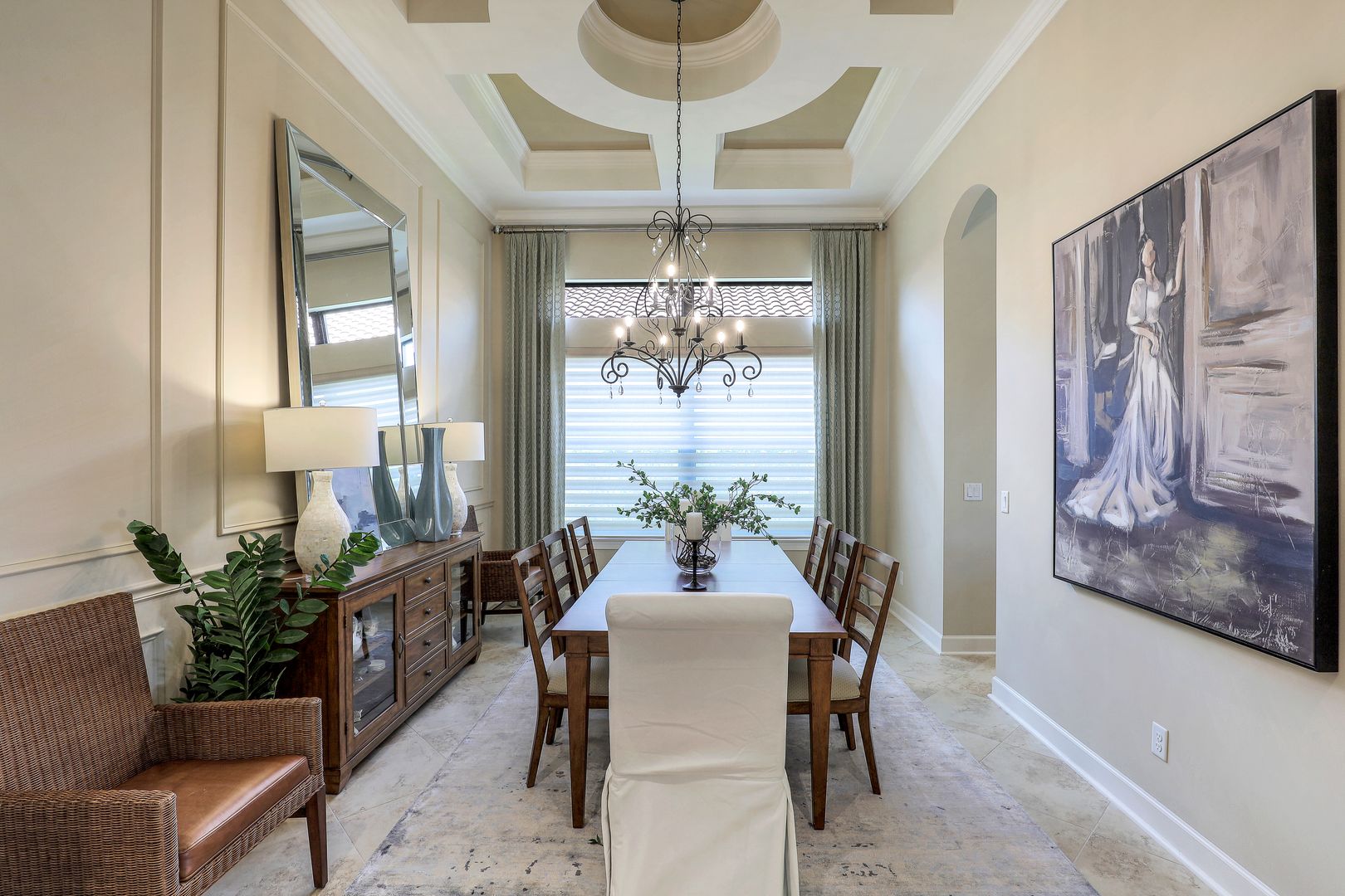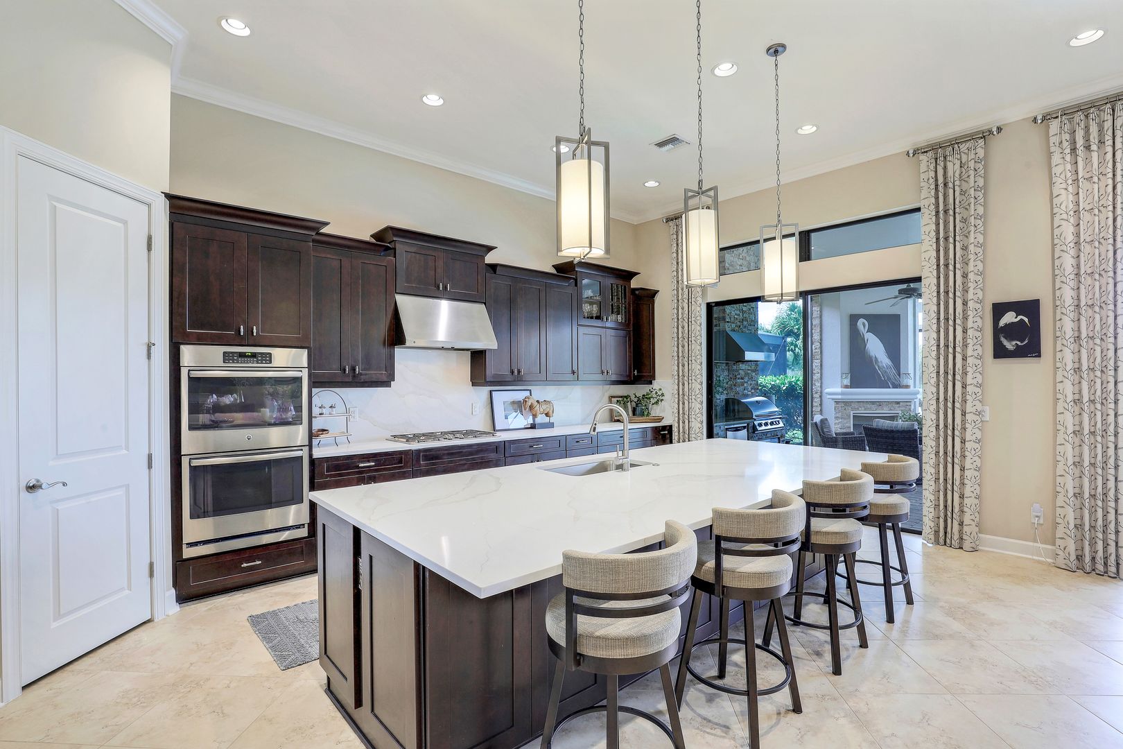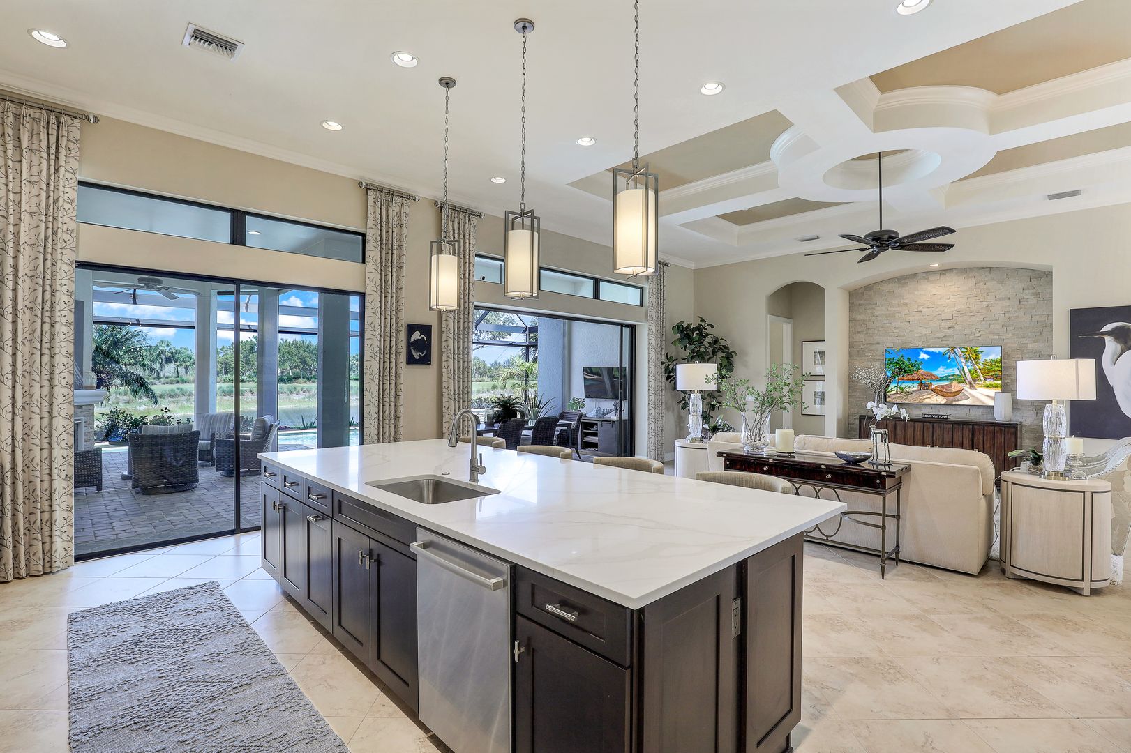 LIVE A VACATION LIFESTYLE IN ESPLANADE! Step inside this full golf membership included “Francesco" and be greeted with 12' ceilings throughout, impressive coffered ceiling details, tile & wood floors throughout, and spacious kitchen complete with GAS cooktop, double wall ovens, and NEW Calacatta Gold quartz countertops & full quartz backsplash! Two sets of sliding glass doors lead you to the extended covered lanai featuring a GAS heated pool/spa/sunshelf, outdoor kitchen, and GAS fireplace overlooking the lake & golf course with no other roof tops insight! Other features include: plantation shutters; fresh exterior paint; electric roll down shutters on the lanai; dry bar; stone wall detail on the lanai; windows galore including transom windows; diagonal tile floors; crown molding; double impact glass front doors; 8’ interior doors; custom window treatments; upgraded light fixtures; wood shaker cabinetry with dovetail construction; and more! Esplanade is a true "Lifestyle Community" with something for everyone: Resort Pool complete with cabanas and beach entrance; 6 tennis courts; 4 bocce balls courts; 4 pickleball courts; Koquina Day Spa offering hair, nail, facial, and spa treatments; Techno Gym with Aerobics Room; Gated Dog Park; Poolside Bahama Bar; 14 miles of bike/walking trails; 18 hole private golf course (Can use your own cart); 15,000 Sq Ft Culinary Center featuring restaurant, bars, wine tasting room, wine lockers, & Starbucks style cafe!