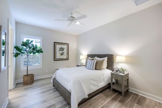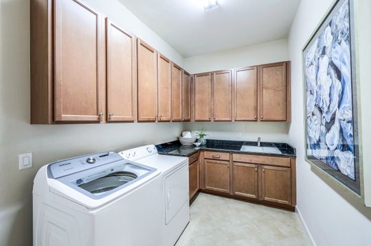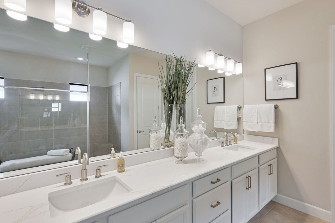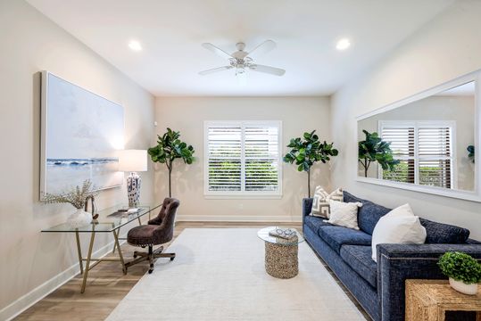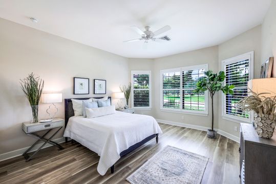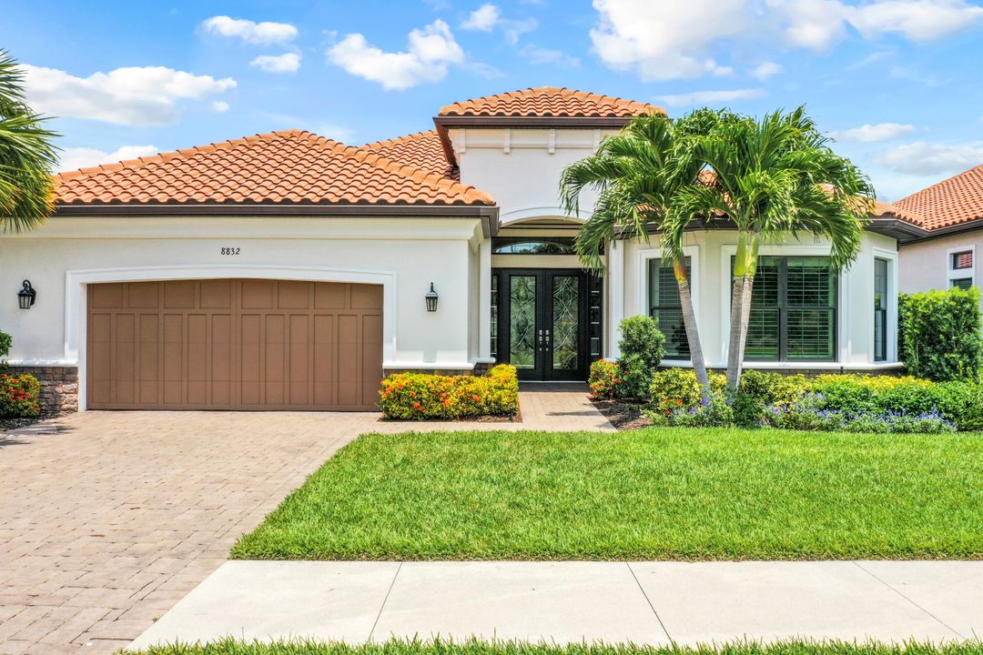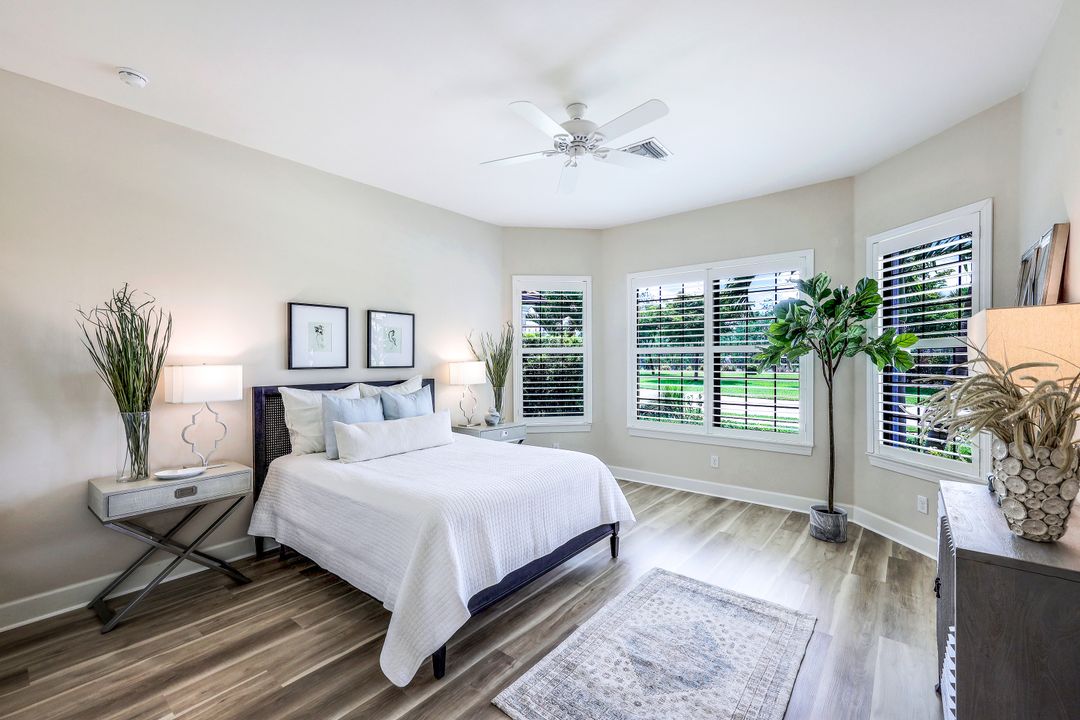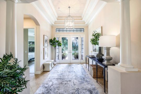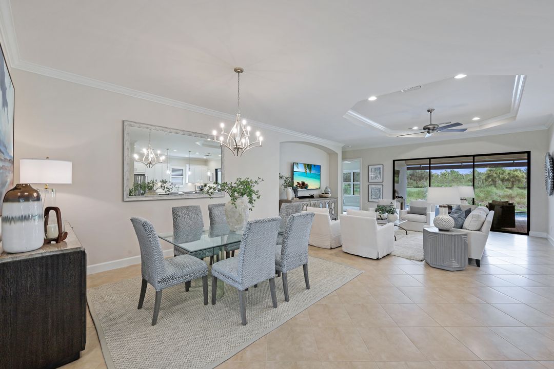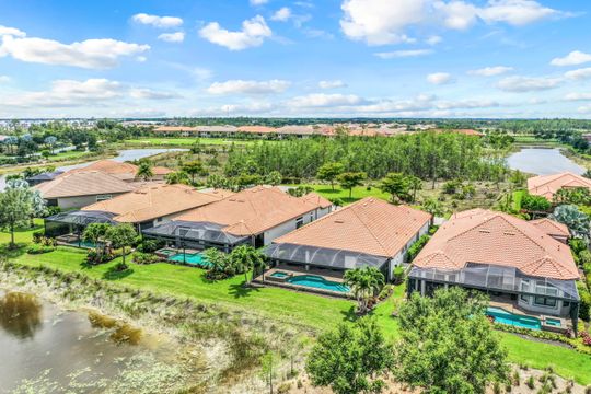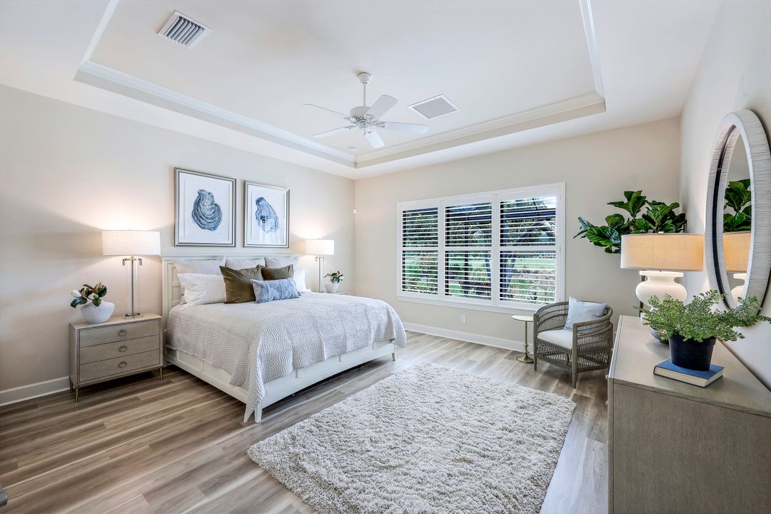 Situated at the end of the cul-de-sac & just steps away from the club, this "Palazzio" (3+Den/3BA) offers an open floorplan with generously sized rooms throughout. Two sets of sliding glass doors lead you to the extended covered lanai featuring a GAS heated pool/spa & outdoor kitchen all overlooking the lake & golf course. Other features include: new Calcutta Fantasy quartz countertops in the kitchen and baths; fresh exterior paint; electric roll down shutters; IMPACT WINDOWS/DOORS; plantation shutters throughout; diagonal tile floors & new luxury LVP flooring in the bedrooms/den; crown molding; closet built-ins; finished garage flooring; picture window screen cage; and more! GOLF MEMBERSHIP INCLUDED! Furniture/decor available. Esplanade is a true "Lifestyle Community" with something for everyone: Resort Pool complete with cabanas; 6 tennis courts; 4 bocce balls courts; 4 pickleball courts; Koquina Day Spa offering hair, nail, facial, and spa treatments; Techno Gym with Aerobics Room; 2 Dog Parks; Poolside Bahama Bar; 14 miles of bike/walking trails; 18 hole private golf course (Can use your own cart); 15,000 Sq Ft Culinary Center featuring restaurant, bars, wine tasting room, wine lockers, & Starbucks style cafe! Total dues just $2,932/qtr including lawn care, club, & GOLF!