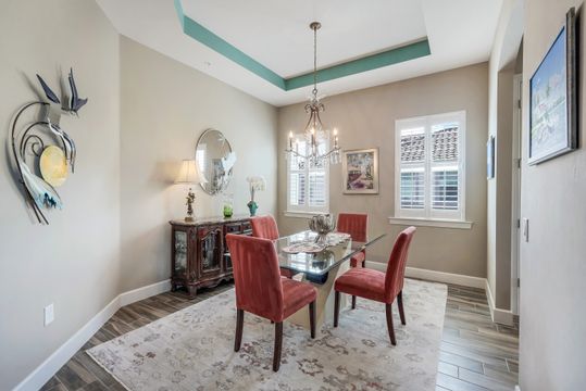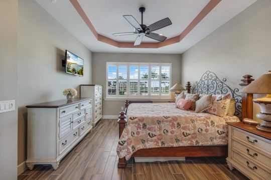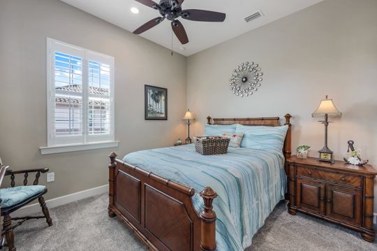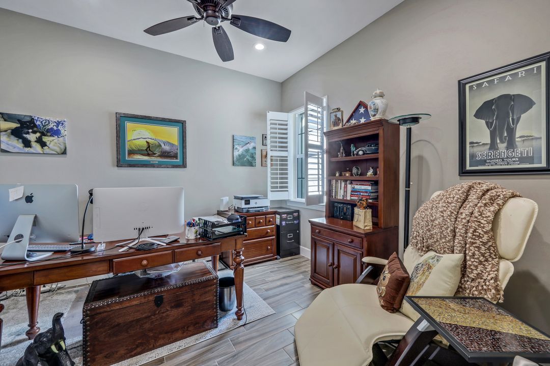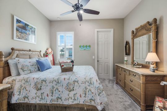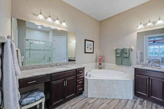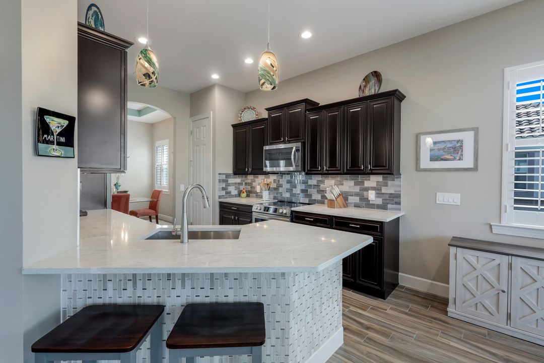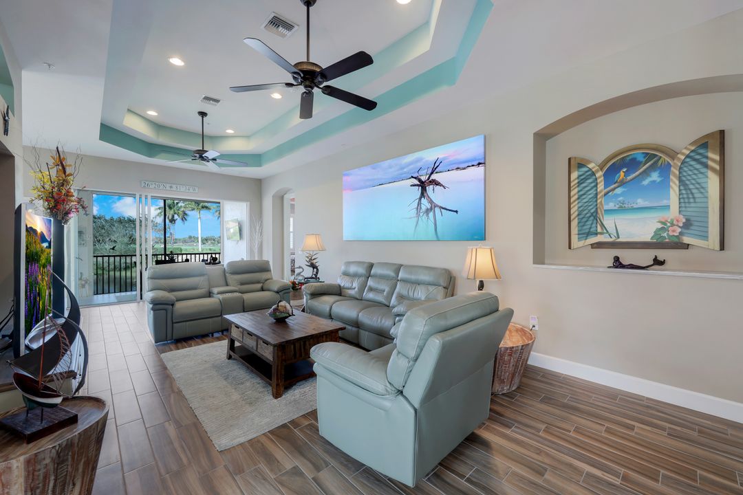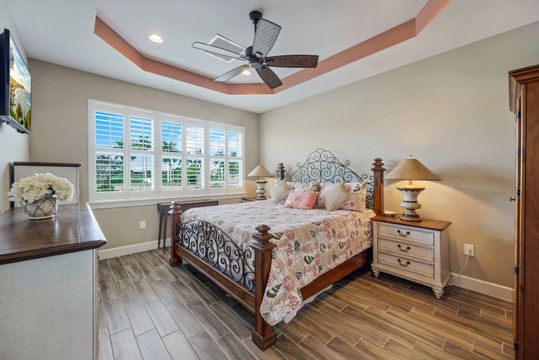 ENJOY STUNNING SUNSETS, GOLF AND LAKE VIEWS FROM THIS PRISTINE COACH HOME! LIVE A VACATION LIFESTYLE IN A COUNTRY CLUB SETTING! This 2nd floor WESTERN EXPOSURE Coach Home is conveniently located within walking distance to the Beach Club and features 3 Bedrooms plus a Den/Home Office, 2.5 Baths and a 2 Car Garage. The updated kitchen is light and bright and has Quartz Countertops, Glass Backsplash, Espresso Cabinets and Stainless Steel Appliances. Fine Appointments/Special Features include, Plantation Shutters throughout, Wood Plank Tile in Great Room, Owners Suite, Den and Lanai plus more! For peace of mind during inclement weather, the whole house is protected with Electric Shutters on the back and Accordion Shutters on the sides. The Quarry is an amenity-rich gated lakefront community offering over 500 acres of lakes for boating, water skiing, paddle boarding, jet skiing, kayaking, and fishing. The NEWLY expanded resort style Beach Club includes Tennis, Pickleball, Bocce Ball, a Tiki Bar, Restaurant, Pool-Side food/drink service, a Wellness Center, and a full-time activities director. The Golf Lodge offers an 18 hole PGA Level Hurdzan-Frye Golf Course. GOLF (OPTIONAL)
