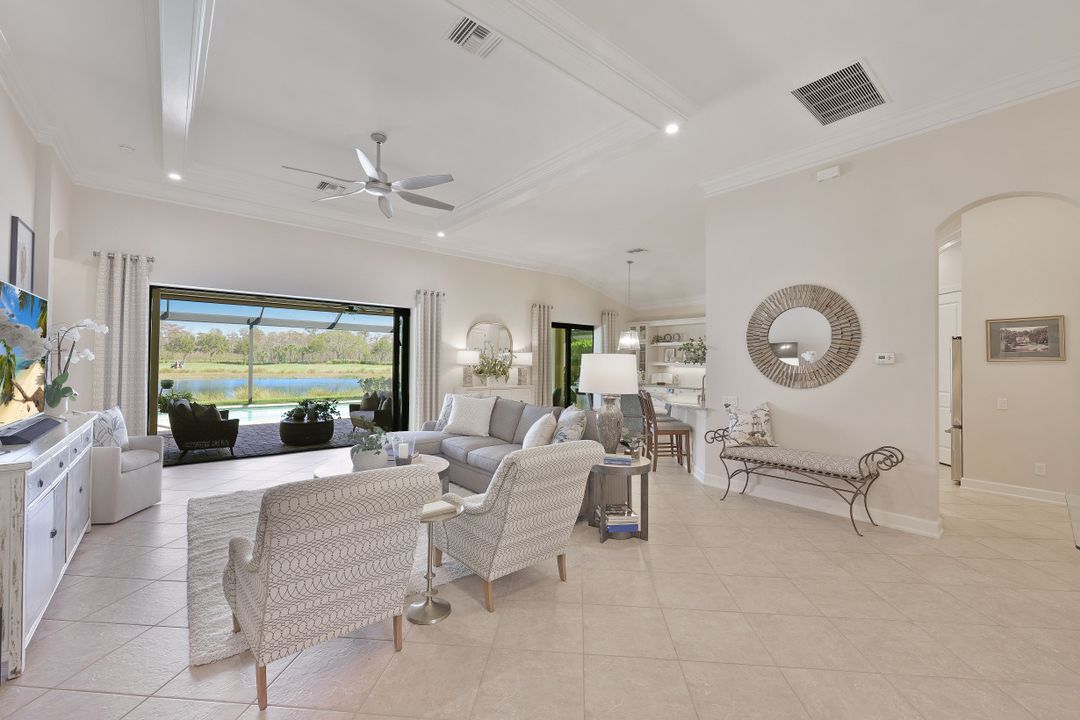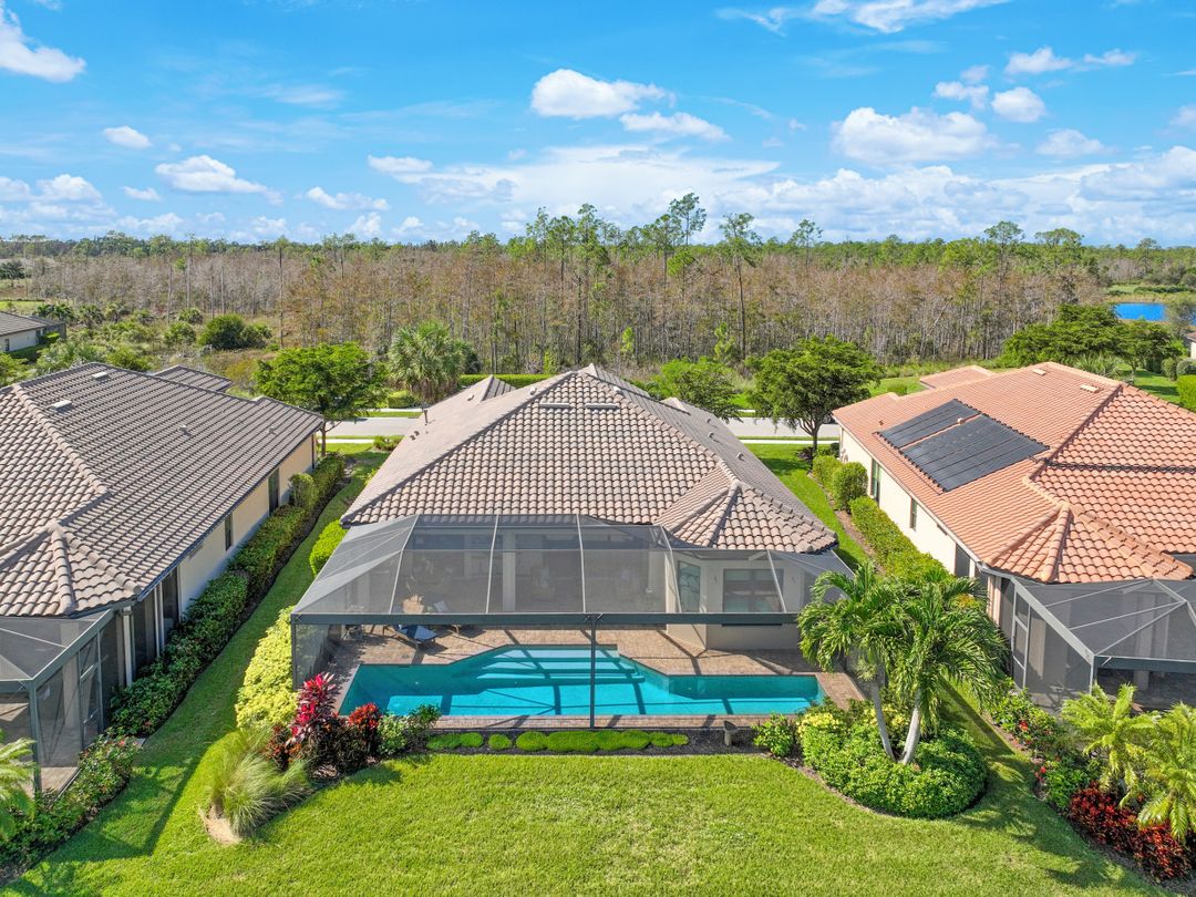 IT'S ALL ABOUT THE VIEW! This FULL GOLF MEMBERSHIP "Carrera" is situated on a premium lot overlooking the lake, 9th hole, and preserve (with no other homes in sight) & is just a short walk from the amenity campus. Lovingly cared for by its original owners, this home offers 3 Bedrooms, 2.5 Baths, extended 2 car garage, and a long list of special features: HURRICANE IMPACT WINDOWS/DOORS; ELECTRIC HURRICANE SHUTTERS ON THE LANAI; two sets of pocketing sliding glass doors; 42' long salt water GAS heated lap pool with picture window screen cage; expanded kitchen incl GAS Cooktop; 11' ceilings; 8' doors; and more! Esplanade G&CC is a true "Lifestyle Community" with something for everyone: Resort Pool complete with cabanas; 6 tennis courts; 4 bocce balls courts; 4 pickleball courts; Koquina Day Spa offering hair, nail, facial, and spa treatments; Techno Gym with Aerobics Room; Gated Dog Park; Poolside Bahama Bar; 14 miles of bike/walking trails; 18 hole private golf course (can use private cart); 15,000 Sq Ft Culinary Center featuring restaurant, bars, wine tasting room, wine lockers, & Starbucks style cafe! Total dues just $11,728/yr includes landscaping, all club amenities, & full golf privileges.