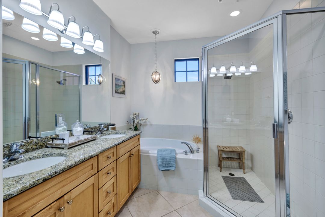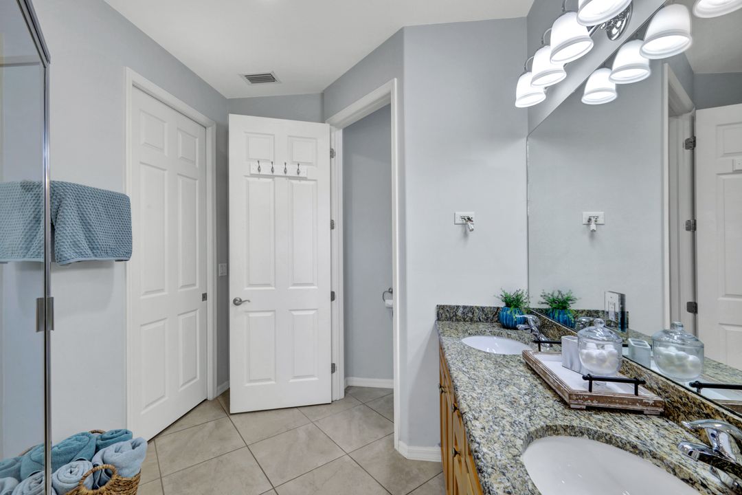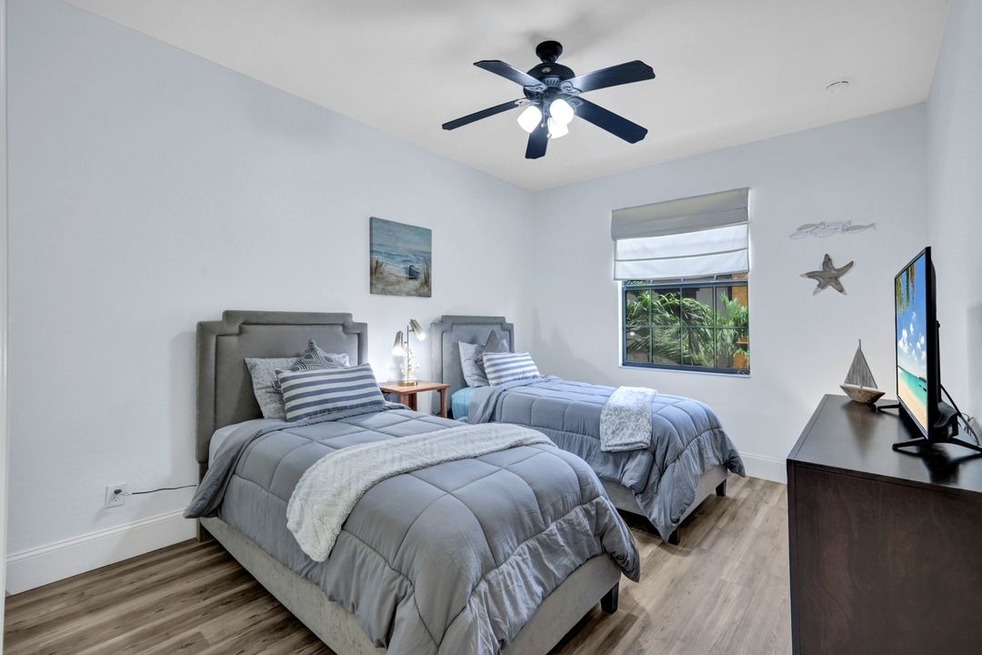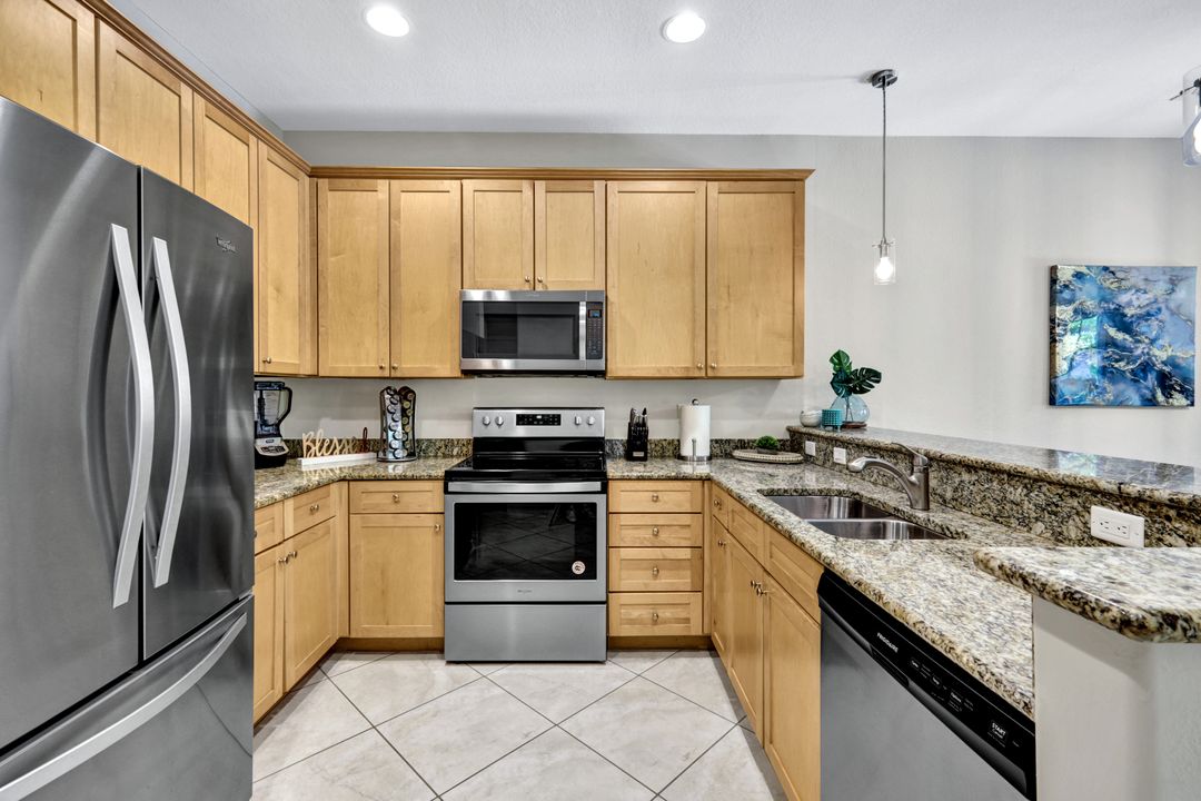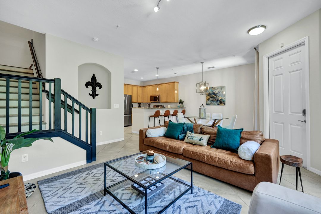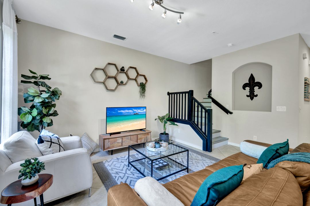 OLE'S FINEST OFFERING!--- 3 BR 2.5 BA INVESTOR’S DREAM! Beautifully appointed, turnkey furnished, VERY CLEAN coastal condo -pristine condition, with SPECIAL ASSESSMENT FULLY PAID! Rental income up to $11,500 per month possible during high season, with STRONG RENTAL HISTORY for 10 + mos. of the year. Your 2024-25 rental bookings are already in place, offering GUARANTEED INCOME! (Or new owner may cancel bookings at no charge.) This Coastal Oasis FEELS BRAND NEW, w/light colors, fresh paint, designer furnishings, and newly installed luxury vinyl plank wood-look flooring on second level. NEW HOT WATER HEATER, and newer washer dryer, plus NEST thermostat and keyless entry. A spacious living and dining area and open kitchen w/SOLID WOOD CABINETS, GRANITE COUNTERTOPS and high-top snack bar are great for entertaining and relaxing after a day at the pool. NO STEEP CLIMBS! - Staggered L-shape stairs offer easy access to bedrooms and laundry area. In the MBR the ROMEO & JULIET BALCONIES offer extra light and tropical courtyard views, and there’s a KING-SIZE BED, ceiling fan and large flatscreen TV w/remote, and plenty of "his and hers" closet space. Double doors to the hallway ensure PRIVATE EN SUITE LIVING while you luxuriate in the spacious Master Bath w/separate shower, privy, and soaking tub. This home boasts a 2-car garage, stocked w/beach chairs, coolers, umbrellas, and racquets, PLUS 4 bicycles to provide easy guest access to the Ole’ Village Center and amenities! Owners and guests will enjoy all the WORLD-CLASS OLE’ RESORT AMENITIES year around, with resort-style pool/spa/waterfalls, poolside food & drink service, volleyball, pickleball, & bocce ball courts, movie theater, pub, bistro, café, ice cream parlor, library, and fitness center. ***PLUS*** access to THE PLAYER’S CLUB is included May through October, with dining privileges at THREE RESTAURANTS and MASSAGE AND SPA SERVICES available, plus you can soak up the sun at three resort-style pools, and enjoy tennis, pickleball, basketball, and more! PRICED TO SELL, this is truly THE BEST VALUE IN OLE’ RESORT! Don’t miss this amazing opportunity for EASY FLORIDA LIVING in one of Naples' Premier Communities, 15 minutes to Marco Island and downtown Naples. Whether buying as your primary home, second home, semi-retirement get-away, or lucrative rental investment ~ this beautiful condominium home won't last long! ASK ABOUT SPECIAL BUYER BONUS AVAILABLE FOR FULL PRICE OFFERS CLOSING ON OR BEFORE JULY 31, 2024!