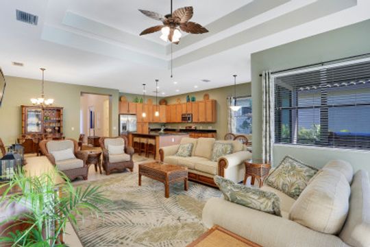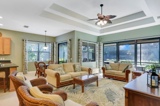 Serenity awaits! This home - a lovely, private retreat - is the perfect spot to relax all winter long! Away from it ALL, a nature lover's dream - surround yourself with the lush, tropical landscape while enjoying one of SWFL's most stunning communities. Near enough to everything to be convenient but also tucked away & secluded. Loaded with all the extras today’s buyer desires - 8ft doors, tray ceilings, tile flooring throughout main living area, stainless appliances, granite counter-tops, large hers & his walk-in closets, impact resistant glass through-out the home & so much more! This home has a large master bedroom and 2 additional rooms for guests. One of the additional rooms could also be used as a den or office. The large outdoor area boasts a private, beautifully landscaped yard. There is ample space on the lanai for cooking, dining and relaxing. Amenities at Bonita Isles include a resort style pool that is never crowded, an open air clubhouse, tennis courts, & a fitness center. Pride of ownership, lovingly maintained. Minutes to beaches, fine dining, Coconut Point Mall, downtown Naples & the SWFL Intl Airport.