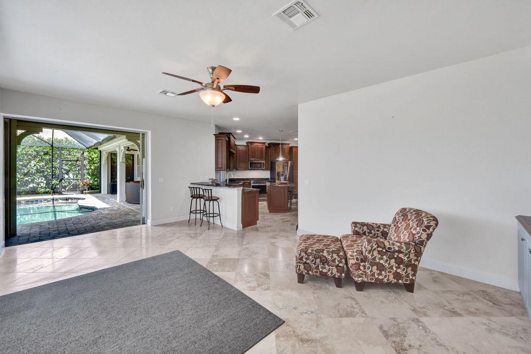 Cedar Creek is one of the most sought after communities in the area with low HOA fees & very close to beaches, shopping, dining, golf & everything you want to do in Southwest Florida. This is a rare opportunity to pick up a very nice home on a large corner lot with beautiful lake views, privacy, pool, gourmet kitchen, living room, family room, large master suite & 2 split guest bedrooms. The property is in terrific shape with newer roof, AC system, new hot water tank, new flooring & an inviting outdoor area. The pool was resurfaced just a few years ago & the pool heater is also newer. The seller has already moved & has priced this house to sell quickly. The community boasts a Junior Olympic Pool, spa, tennis & pickleball, bocce, kayak-canoe park with access to Estero Bay & the Gulf, cabana, play ground, storage for kayak's & canoes, butterfly garden, walking paths, large lake in the preserve for waking or fishing, picnic area, pet friendly & social activities on a monthly basis. Walking or biking distance to the Prado shopping center that includes a VIP seating movie theater, Ice Cream Shop, 4 restaurants, Walgreens, a Credit Union & more. This house has very low insurance premiums as a comparison due to its condition, hurricane protection & elevation. Schedule your private showing today. The HOA is solid with no outstanding assessments. Fiber Optics is now available. Some furnishing shown are virtual. There are a few pieces of furniture in the house that can be negotiated with the sale.