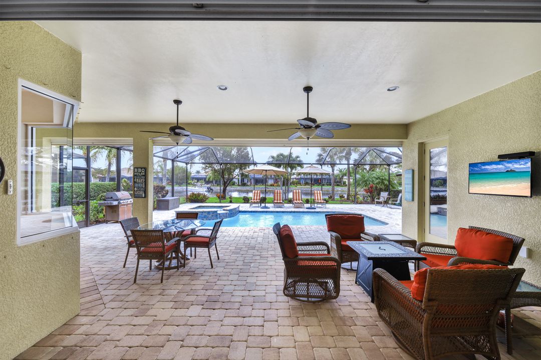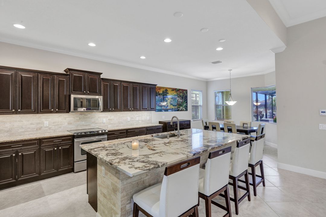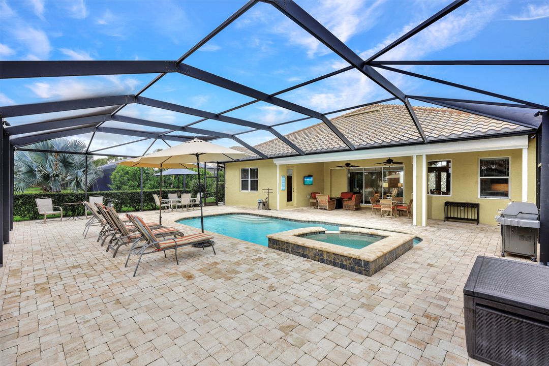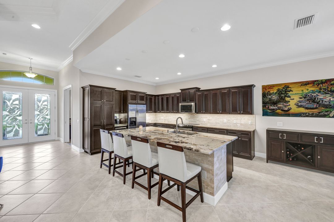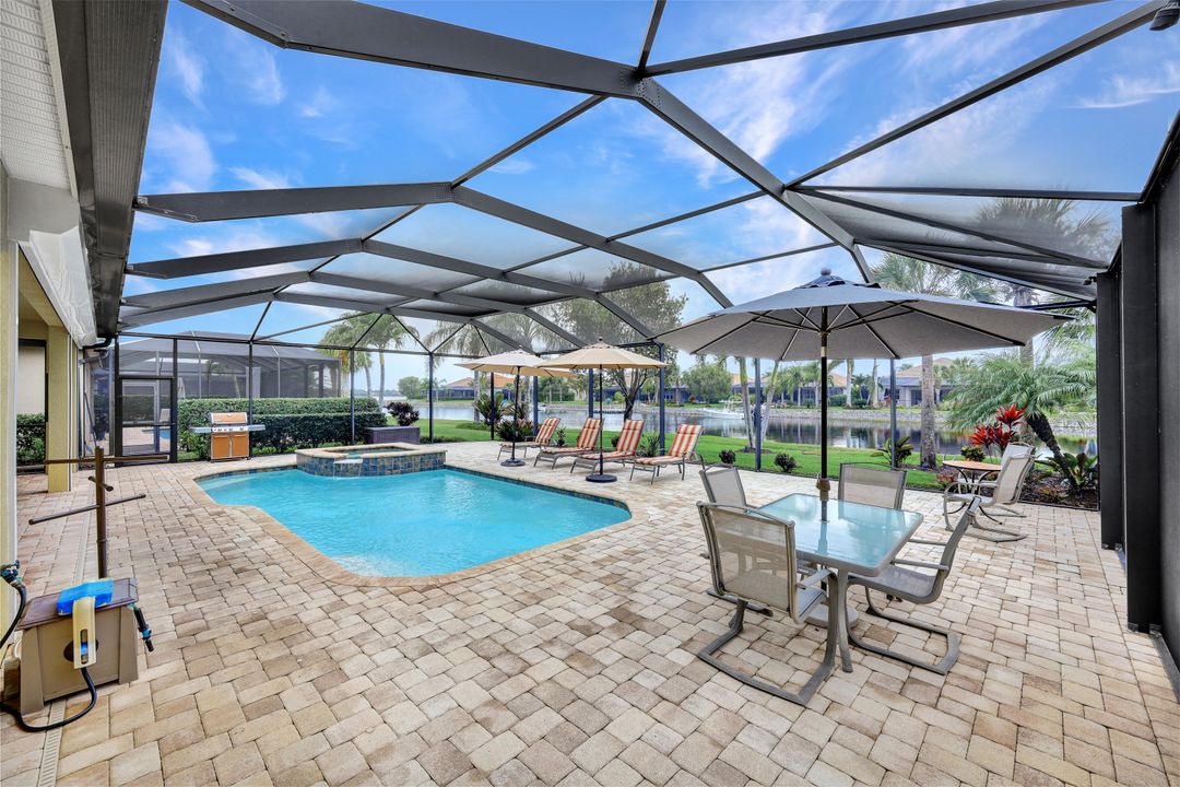 IT'S ALL ABOUT LIVING A VACATION LIFESTYLE IN THE QUARRY! This Pristine Waterfront Barrington Open floorplan model features 3 bedrooms, den/office, 2 full baths, and extended 2 car garage. Upgraded Kitchen with Quartzite on an extra large island, custom pantry with side broom closet, under cabinet lighting, and stainless-steel appliances. Large master suite with upgraded Luxury Vinyl flooring, soaking tub, and access to the lanai. Walk thru the great room to an expansive lanai with a pool/spa, and roll down electric shutters - views and direct access to Stone Lake - Great for Entertaining! Opportunity for a private boat dock also! The Quarry is a gated lakefront community offering 500+ acres of lakes for boating, skiing, paddle boarding, jet skiing, and fishing. Additional amenities include Tennis, Pickleball, Bocce Ball, a Tiki Bar, Restaurants, Pool-side food/drink Service, Fitness Center and a full-time Activities Director. A $18M Expansion Project of the Lake Lodge & Beach Club - completion by December 2023. The Golf Lodge & Golf Club offers an 18 hole PGA Level Hurdzan Frye Golf Course with its recently updated clubhouse, dining room, and grill room. (Membership Optional).