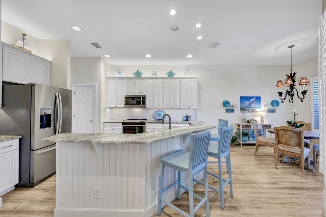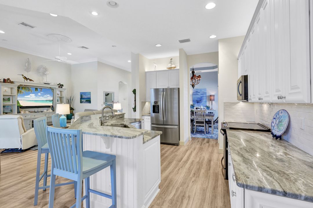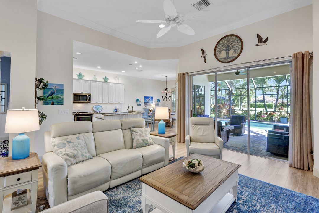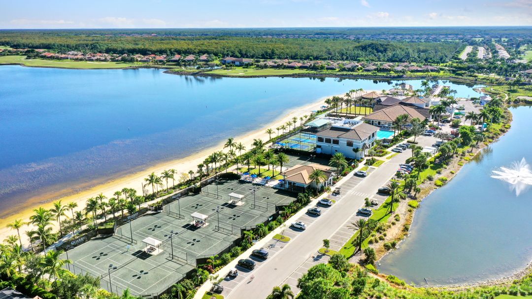 LIVE A VACATION LIFESTYLE IN A COUNTRY CLUB SETTING! This 3 BEDROOM PLUS DEN, 3 FULL BATH home is situated on a quiet cul-de-sac and a short walk to the Amenity Rich Beach Club AND has an IMMEDIATE (Avoid waitlist) GOLF MEMBERSHIP AVAILABLE TO PURCHASE (OPTIONAL.) This open and airy Great Room Style floor plan leads to the spacious lanai which boasts a salt water pool, spa, and a beautiful water view.The updated kitchen features white cabinets, granite countertops and newer (5 years) stainless steel appliances. Special features include crown molding, plantation shutters, tile throughout (no carpet), tray ceiling in master and dining room, newer pool pump and piping, newer roof (5 years) plus more! The Quarry is an active lifestyle gated lakefront community offering over 500 acres of lakes for boating, water skiing, paddle boarding, jet skiing, kayaking, and fishing.The Beach Club includes Tennis, Pickleball, Bocce Ball, a Tiki Bar, Restaurant, Pool-Side food/drink service, a Wellness Center, and a full-time activities director, wellness director and a physical therapist. The Beach Club is undergoing an $18 million Expansion Project due to be completed December 2023.