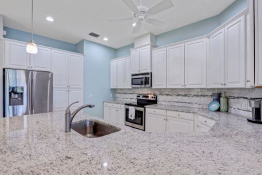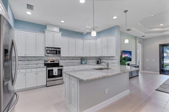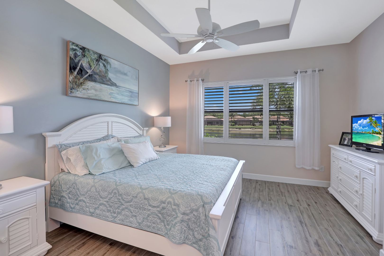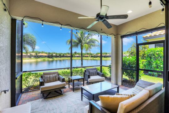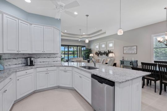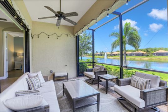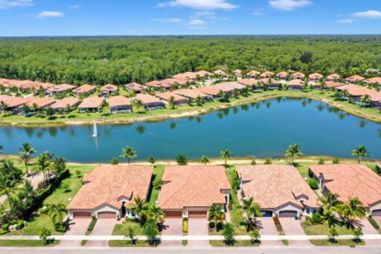 You will love this meticulously maintained ROMA model on a premium lakefront lot with fountain & wide lake views! Located in the highly desirable community of Bonita Isles! From the minute you enter -- this home's upgrades will impress, beginning with the large living area open to a spacious kitchen boasting beautiful custom cabinetry, GE appliances & granite counter tops with decorative back splash. Tile throughout the main living areas, hurricane impact windows & sliders, plantation shutters, screened in front entrance, custom ceiling fans and recessed lighting are just a few of this home's "extras." All this AND a spacious master bedroom and master bath with an extra large walk in closet. All closets in this home come w/custom shelving and organizers! There is an additional bedroom & full bath PLUS a large den & a gorgeous, large PRIVATE lanai. This home is one of the most desirable in Bonita Springs -- a spacious interior located in a stunning community, with a club house, resort style pool, two sparkling lakes, LOW HOA fees and NO CDD! HURRY, before someone else finds this -- as anyone who visits this gem will quickly want to call it "home!"