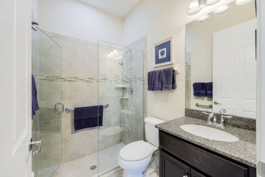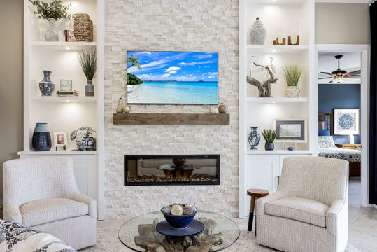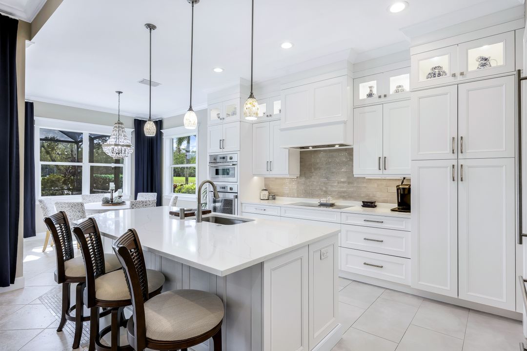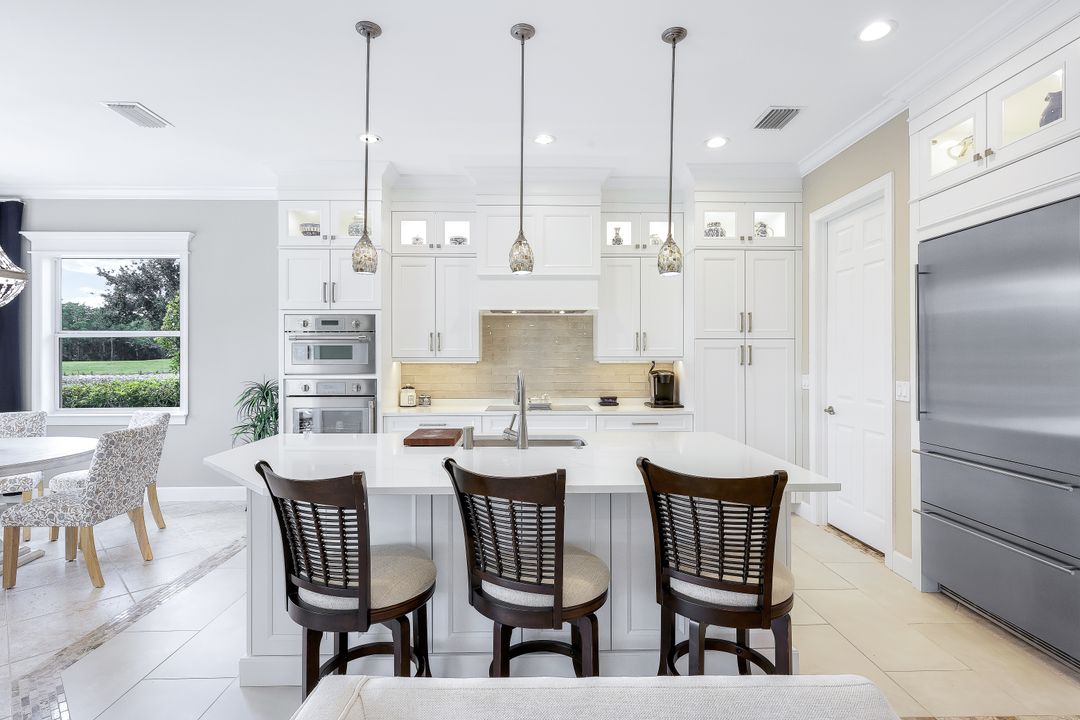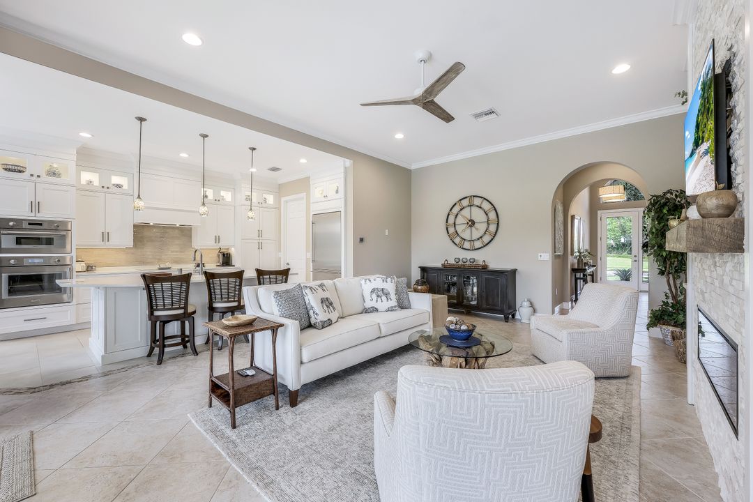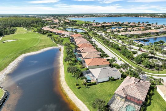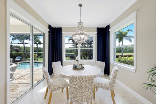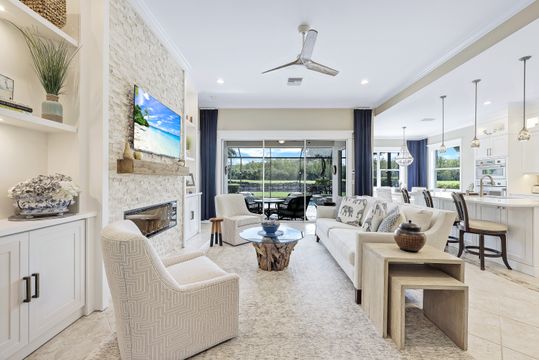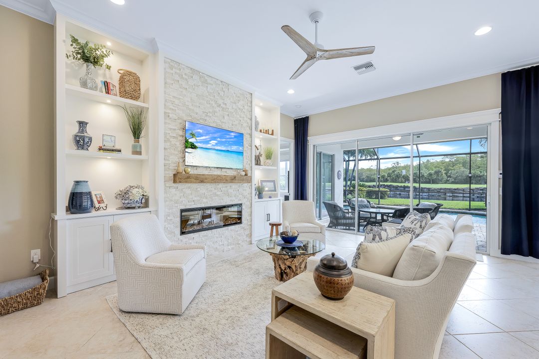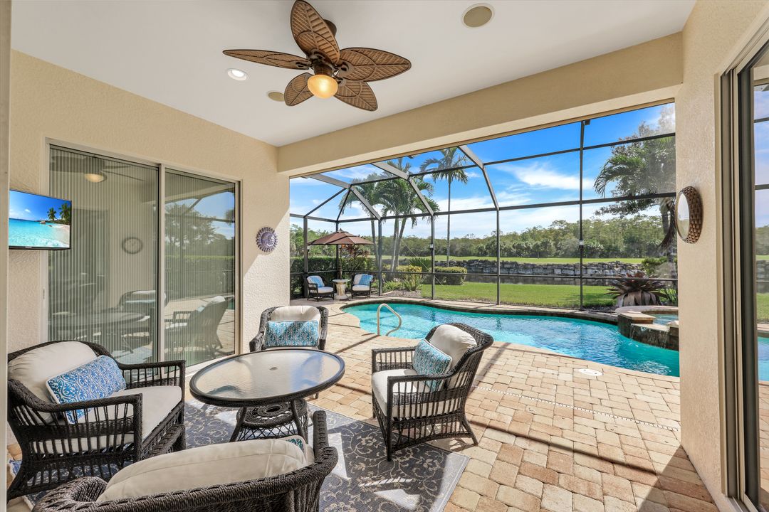 LIVE A VACATION LIFESTYLE IN THE QUARRY! This HIGH END 2+Den, 2 Bath home is situated on a spacious pie shaped lot with sunrise views overlooking the lake, rock wall, golf course, and preserve! A long list of features include: CUSTOM KITCHEN incl Thermador appliances (induction cooktop) & Sub Zero refrigerator; BRAND NEW ROOF; NEW Solar panels for pool heating; WHOLE HOUSE GENERATOR incl 500 buried tank; BRAND NEW AC; remodeled master bath w/ walk in shower; custom wall built in; fresh exterior paint; electric hurricane screen; and more! The Quarry is a lakefront community offering something for everyone: Boating, Golf, Tennis, Pickleball, Bocce Ball, Tiki Bar, Restaurant, Pool-Side Food/Drink Service, Gym, Social Activities, and more! The Quarry offers a lifestyle like no other including the BRAND NEW "Lake Lodge & Beach Club", over 500 acres of navigable lakes (boat slips available for lease), & a private 18 hole Golf Club (Not Mandatory). An impressive $18M renovation & expansion of the Lake Lodge & Beach Club is set to be completed by Dec 2023. HOA dues include access to ALL community amenities within The Quarry (with the exception of The Golf Lodge/Membership required).