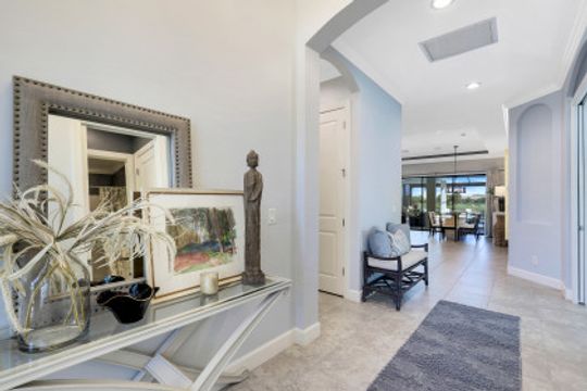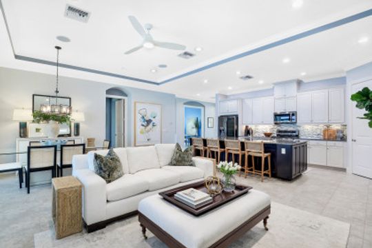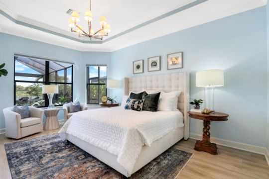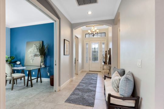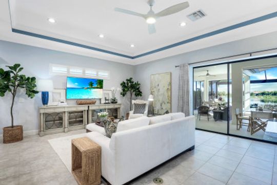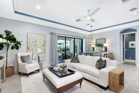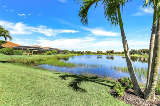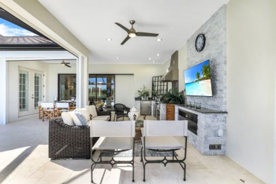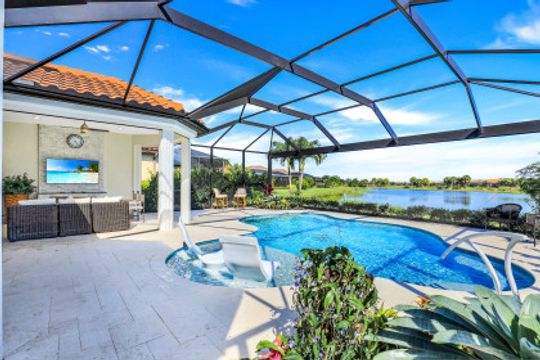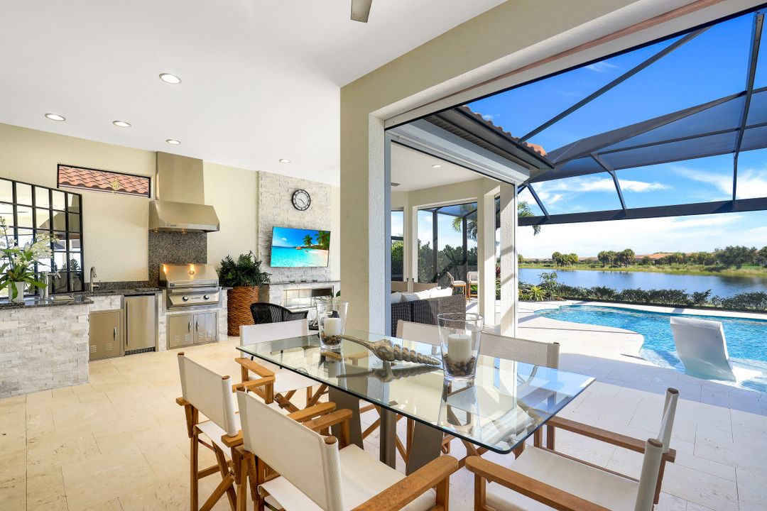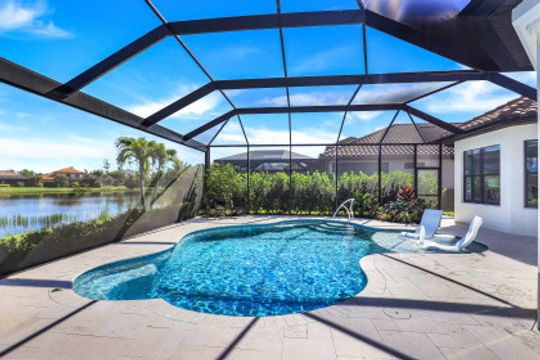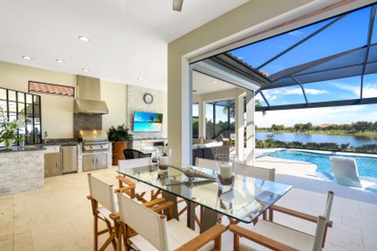 This FULL GOLF MEMBERSHIP "Piceno" is situated on one of the best lots in the neighborhood overlooking the lake and golf course. Inside, you will find an open great room style floorplan complete with pocket sliding glass doors to the lanai and oversized kitchen complete a massive 6’x14’ island and NEW LG black stainless appliances including GAS range. The Master Suite is located in the rear of the home with bay window overlooking the pool area, french doors to the lanai, his & her walk in closets, and spa like bath with dual sinks, walk in shower, and soaking tub. Completed just last year, the expanded screened-in lanai is an entertainer’s dream with shellstone decking, custom heated pool with sunshelf & bubbler, outdoor kitchen complete with grill, hood, ice maker, & two beer taps, and entertainment wall with TV & fireplace. Other fine appointments include electric roll down shutters, AC garage, fresh exterior paint, crown molding throughout, plantation shutters, tile & wood floors throughout, NEW tankless gas hot water heater, and more! Esplanade G&CC is a true "Lifestyle Community" with something for everyone: Resort Pool complete with cabanas and beach entrance; 6 tennis courts; 4 bocce balls courts; 4 pickleball courts; Koquina Day Spa offering hair, nail, facial, and spa treatments; Techno Gym with Aerobics Room; Gated Dog Park; Poolside Bahama Bar; 14 miles of bike/walking trails; 18 hole private golf course (can use private cart); 15,000 Sq Ft Culinary Center featuring restaurant, bars, wine tasting room, wine lockers, & Starbucks style cafe! DUES $10,616/yr includes landscaping, all club amenities, & full golf privileges.