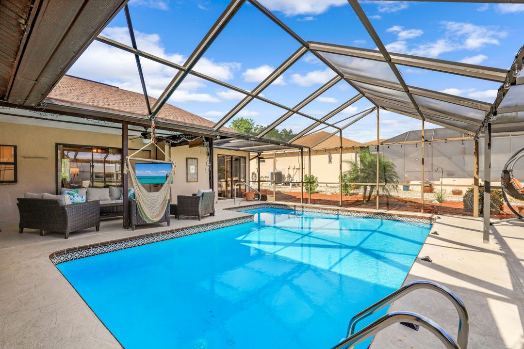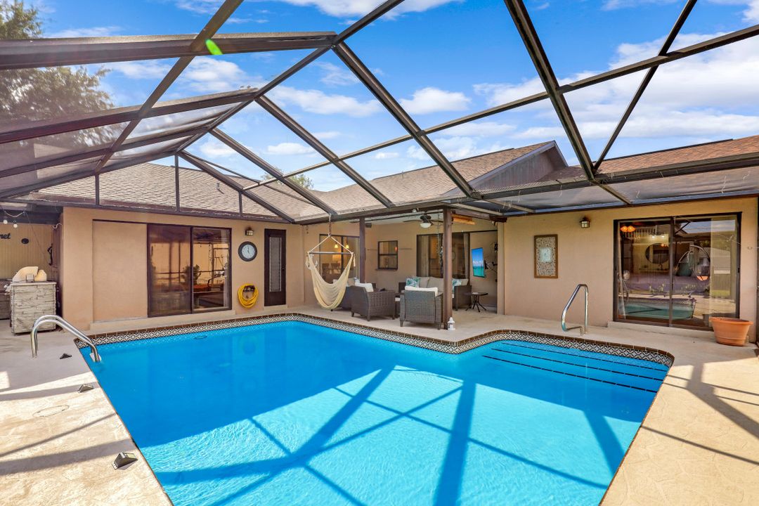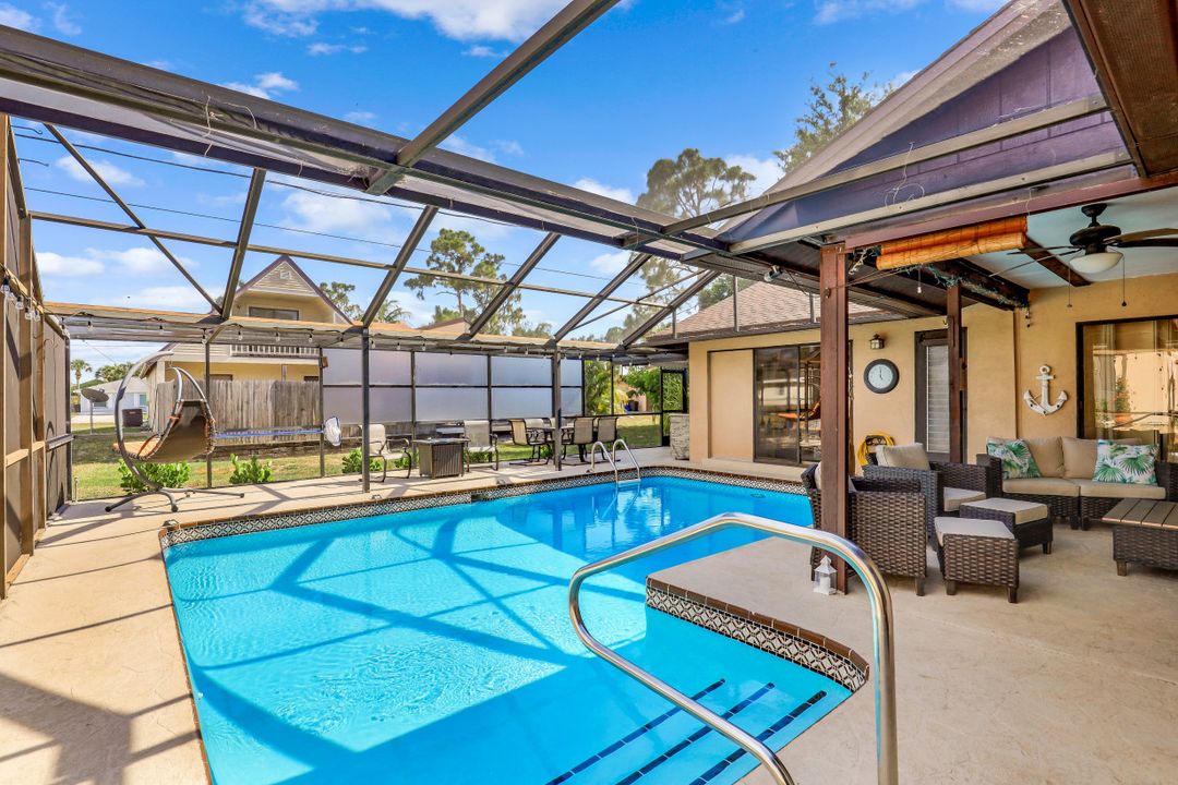 ONE OF THE NICEST POOL & OUTDOOR KITCHEN AREAS IN SOUTHERN FORT MYERS! Come see this incredibly maintained 1717 sqft POOL home located in San Carlos Park! This 3 bedroom, 2 bathroom home features a 2-car attached garage, oversized driveway, outdoor kitchen w/ built-in gas grill/two burner stove/refrigerator/sink, fresh paint in the master & main living area & NO carpet throughout! The light & bright living area provides tall ceilings & is open to the kitchen that boasts a suite of stainless steel appliances, separate refrigerator & freezer, granite countertops, custom backsplash, cabinets w/ upper crown molding, breakfast bar & a walk-in pantry. The master bedroom is conveniently located on the opposite side of the home from the two other bedrooms. It provides direct lanai access & an updated ensuite w/ a walk-in shower & nicely sized walk-in closet. The extended lanai gives you room to lounge, host gatherings or simply relax & enjoy the Florida sunshine in the private pool! With NO HOA fees, rules, or restrictions & just minutes from Gulf Coast Town Center, SWFL International Airport, Hertz Arena & Three Oaks Community Park, this home offers a little something for everyone.