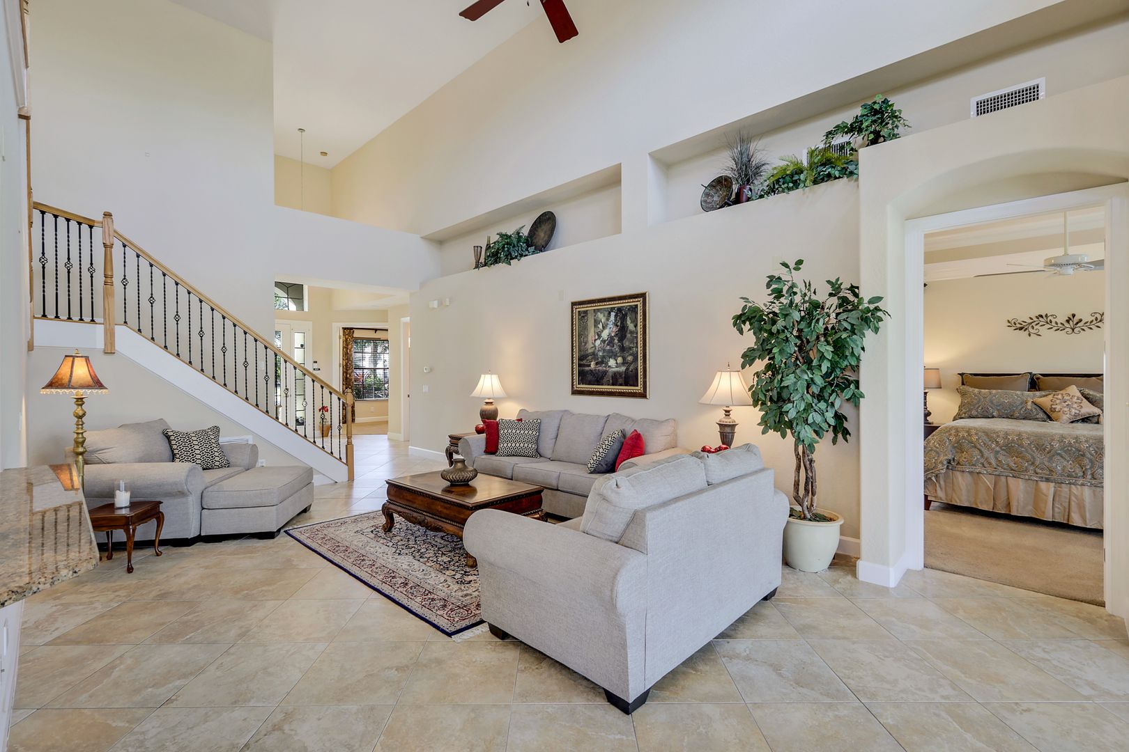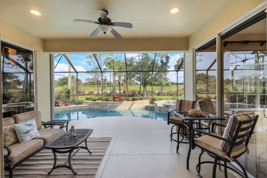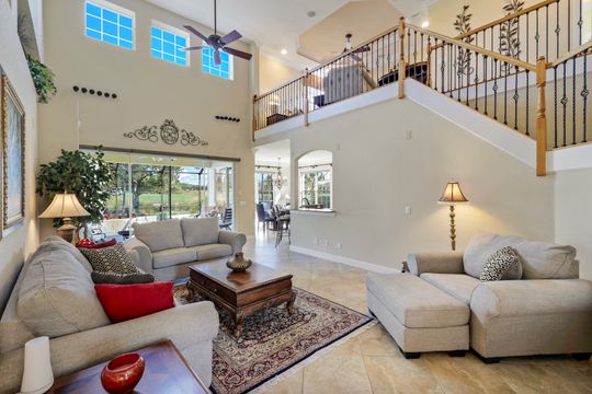 LIVE A VACATION LIFESTYLE IN THE QUARRY! Situated at the end of a short cul-de-sac street on an oversized pie shaped lot, this spacious 4 Bedroom plus Loft, 2.5 Bath home offers expansive golf course & lake views with no roof tops in sight! From the moment you walk in the front door you are greeted with 20' ceilings and a great room style floorplan with sliders to the lanai. A long list of special features include: BRAND NEW ROOF (2024); newer HVAC (2020); accordion hurricane shutters on all windows & doors; stained wood & wrought iron staircase; diagonal tile floors; wood cabinets; & more! The Quarry is a lakefront community offering something for everyone: Boating, Golf, Tennis, Pickleball, Bocce Ball, Tiki Bar, Restaurant, Pool-Side Food/Drink Service, Gym, Social Activities, and more! The Quarry offers a lifestyle like no other including the BRAND NEW "Lake Lodge & Beach Club", over 500 acres of navigable lakes (boat slips available for lease), & a private separate 18 hole Golf Club with optional memberships. The fully renovated Beach Club & Lake Lodge just underwent a $18M renovation and is NOW OPEN! HOA dues include access to ALL community amenities within The Quarry.
