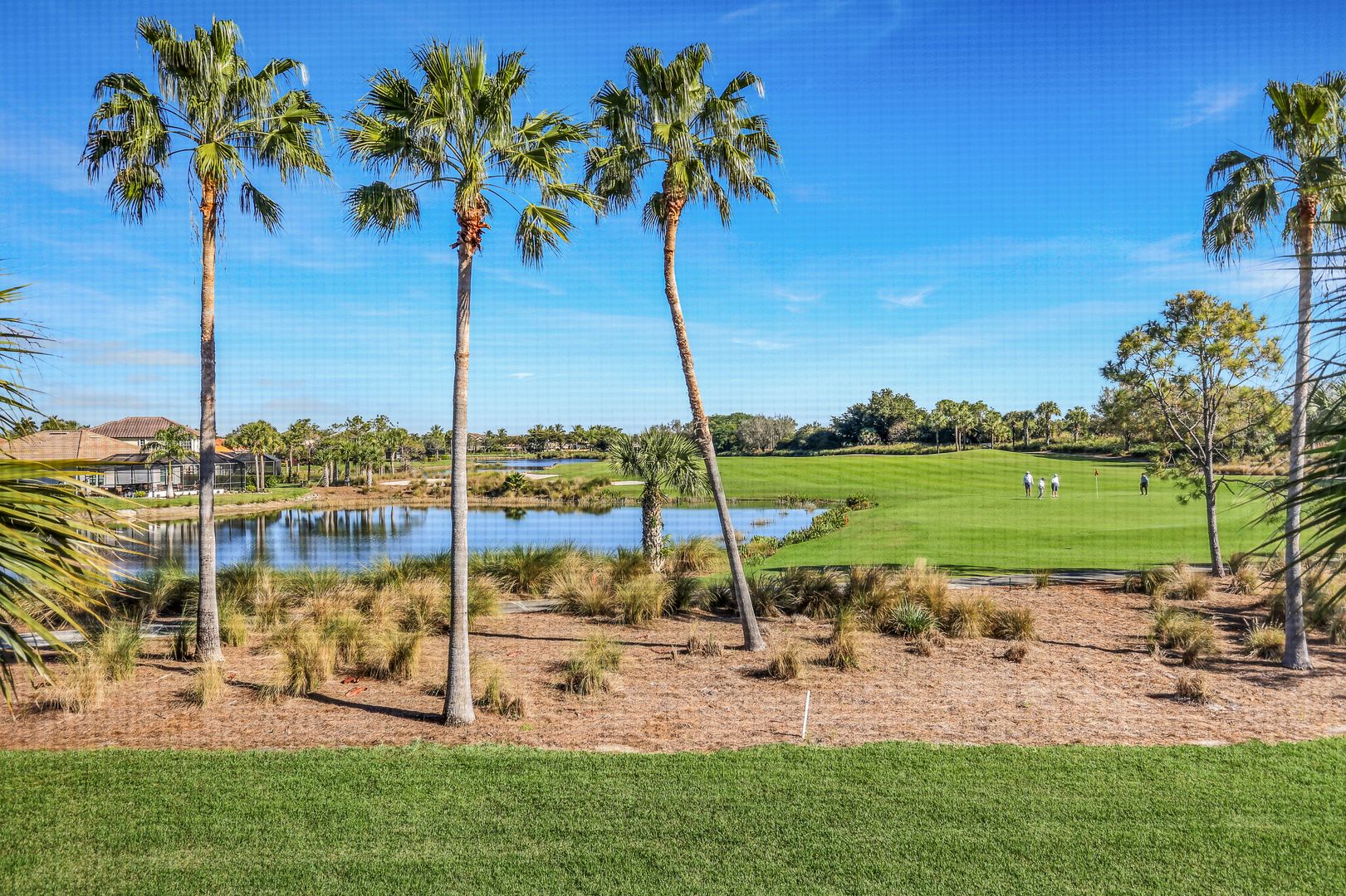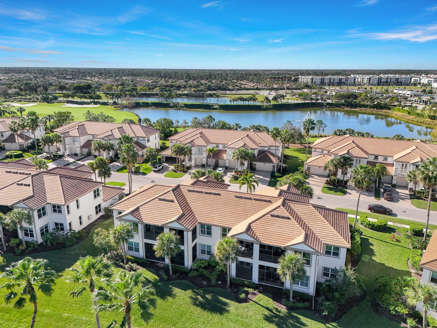LIVE A VACATION LIFESTYLE IN A COUNTRY CLUB SETTING! GORGEOUS GOLF AND WATER VIEWS! Enjoy beautiful sunrises and sunsets from your screened lanai. This 3 bedroom plus den and bonus room, 3 bath, 2 car oversized garage, PARTIALLY FURNISHED EXECUTIVE COACH HOME lives like a single family home with 2743 of living space. The light and bright kitchen features granite countertops, stainless steel appliances, upgraded cabinets. Special features and fine appointments include engineered hardwood floors in main living area, tray ceiling in owners suite, crown molding, new ceiling fans, newly painted on the outside and inside, BRAND NEW CARPET on Stairs, Front Bedroom and Owner's Suite, NEWER ROOF (2020), IMPACT WINDOWS AND DOORS AND SLIDERS(2022) and retrofitted for an elevator. The Quarry is a an amenity rich lakefront community offering over 500 acres of lakes for boating (up to 26 ft boat) water skiing, paddle boarding, jet skiing, kayaking, and fishing.The NEWLY RENOVATED Beach Club includes Tennis, Pickleball, Bocce Ball, a Tiki Bar, Restaurant, Pool-Side food/drink service, a Wellness Center, and a full-time activities director. GOLF (OPTIONAL)