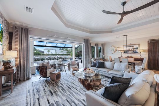 This rare “Kensington” model home (one of only two) is professionally decorated and is being sold FURNISHED. It features 4 bedrooms, 4 full baths, a den and 3 car garage. The 2nd floor can be used as a guest suite (4th Bedroom) home office or game room. This home shows like a model and is situated on a large lot with NAVIGABLE LAKE ACCESS AND A PRIVATE DOCK! The lanai features a new (2022) saltwater pool with water features, and an outdoor kitchen. Relax in your 2nd floor balcony hot tub while taking in the view. Fine appointments include tile wood look floors, crown molding, wainscoting, quartzite countertops in the kitchen, feature wall in the great room with a fireplace, plantation shutters, impact windows and doors plus more! A "must see" to appreciate the finishing touches!The Quarry is a an amenity rich gated lakefront community offering over 500 acres of lakes for boating, water skiing, paddle boarding, jet skiing, kayaking, and fishing.The Beach Club includes Tennis, Pickleball, Bocce Ball, a Tiki Bar, Restaurant, Pool-Side food/drink service, a Wellness Center, and a full-time activities director.The Beach Club is undergoing an $18 million Expansion Project (Dec 2023.)