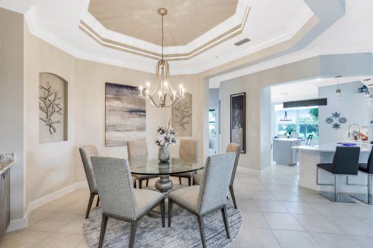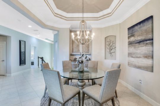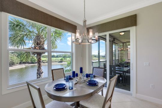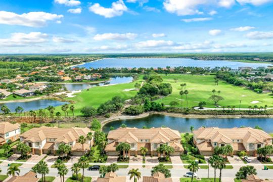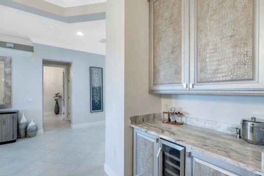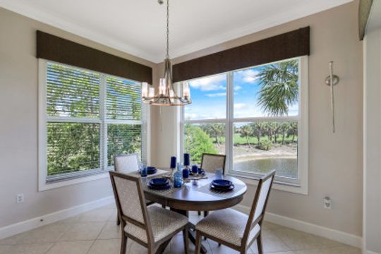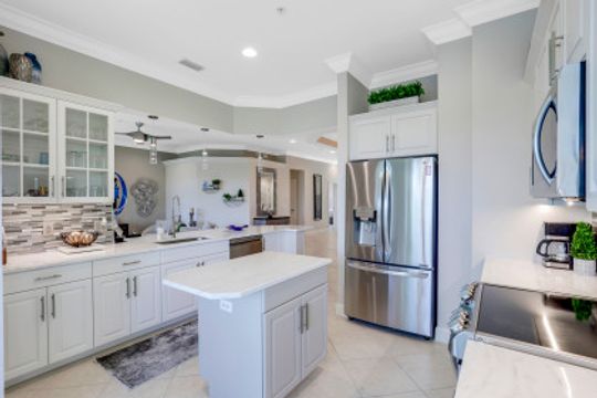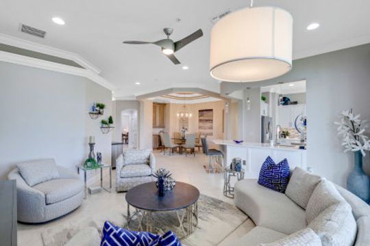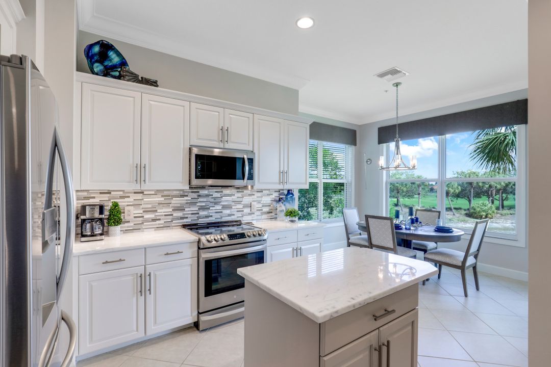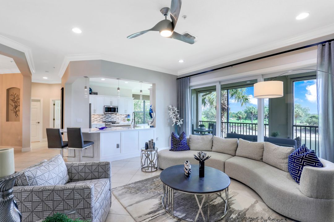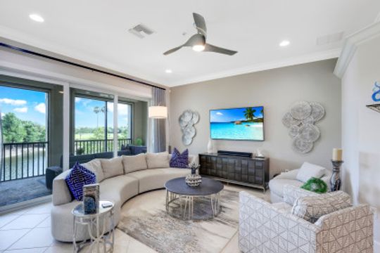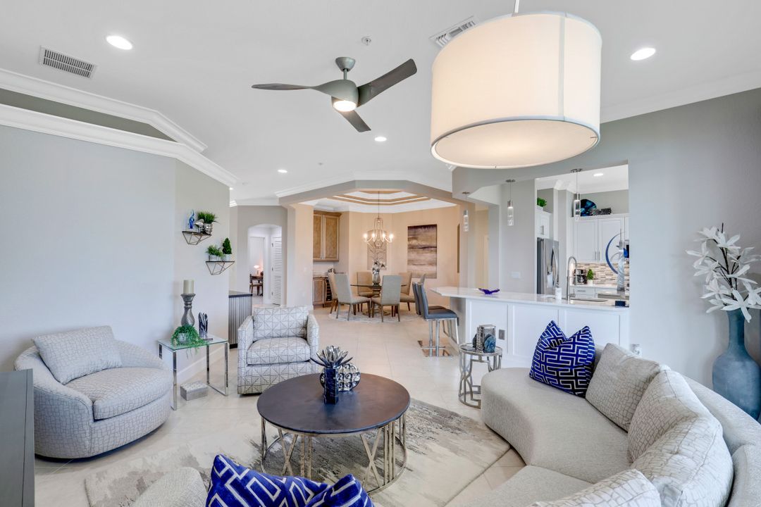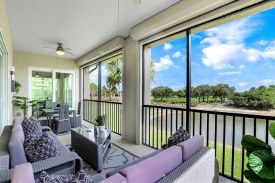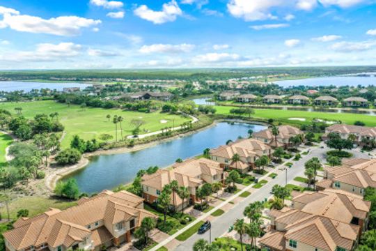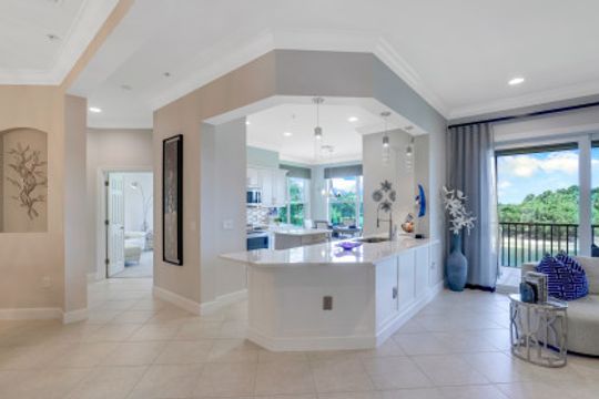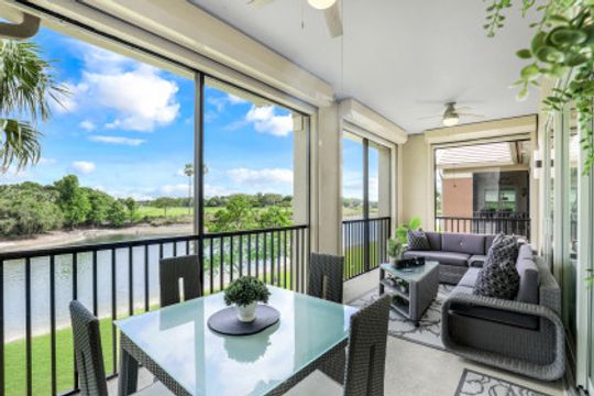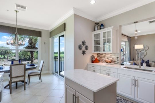 START LIVING A VACATION LIFESTYLE IN THE QUARRY! This FURNISHED condo lives like a single family home with 3 Bedrooms, 2 Dens, 3 baths (all with walk in showers), 2 car attached garage, & 2743 sq ft under air. A long list of special features and upgrades include: lake & golf course views; new HVAC (2017): brand new hot water heater (2021); new roof (2020); brand new HURRICANE IMPACT WINDOWS/DOORS (2021); electric roll down hurricane shutters on the lanai (2019); new LG kitchen appliances (2019); custom dry bar w/ wine cooler; dedicated driveway; 3 storage closets; and more! A private elevator can be installed! The Quarry is a lakefront community offering something for everyone: Boating, Golf, Tennis, Pickleball, Bocce Ball, Tiki Bar, Restaurant, Pool-Side Food/Drink Service, Gym, Social Activities including Full Time Social Director, and more! The Quarry offers a lifestyle like no other, including an impressive "Lake Lodge" and over 500 acres of lakes that can handle boats & jet skis. The Quarry offers a Private 18 hole Golf Club (Not Mandatory). An impressive $15M renovation and expansion of the Lake Lodge & Beach Club is under way and slated to be completed for season 2023.