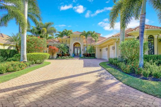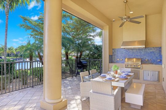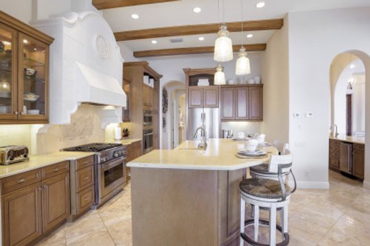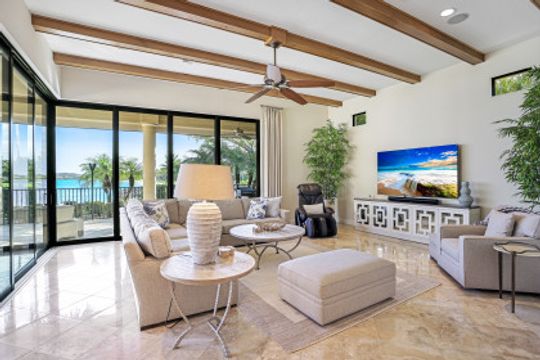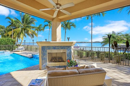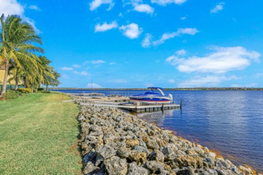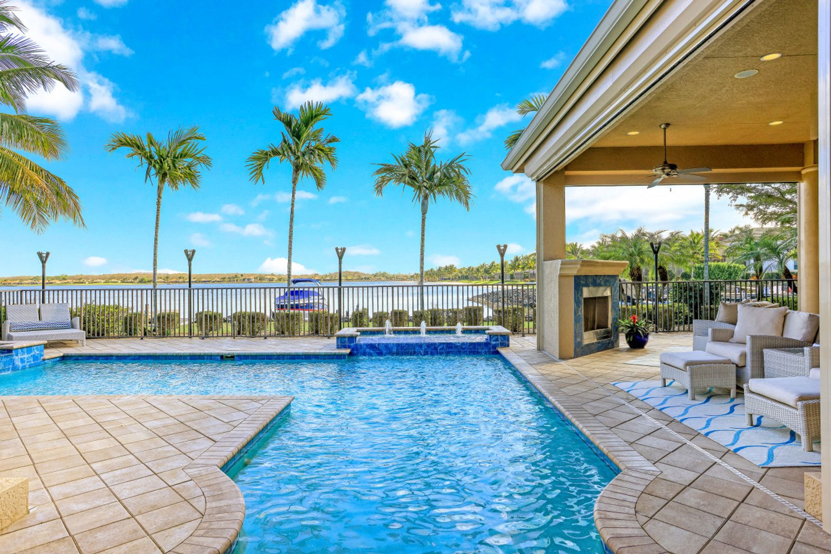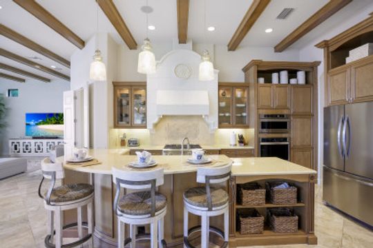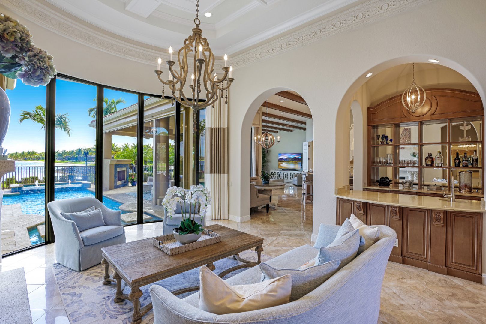 A ONE OF A KIND! This Arthur Rutenberg estate home is situated on a nearly half acre lot overlooking Stone Lake and the beach. Outfitted with a private dock and boat lift, you will enjoy 500 acres of navigable lakes and canals. From the moment you walk through the wrought iron front doors to the formal living room with wet bar and wine bar, luxurious kitchen with GAS range, exposed stained beams, multiple tray ceilings, rich moldings, pocket sliding glass doors to the lanai, and sweeping lake views, you are surrounded by pure elegance. Other fine appointments include: impact windows/doors; whole house water softener; garage AC; two gas fireplaces; tiki torches around the pool; hurricane & bug screen roll down shutters on the lanai; tile & wood floors throughout; and more! Furniture included. The Quarry is a lakefront community offering something for everyone: Boating, Golf, Tennis, Pickleball, Bocce Ball, Tiki Bar, Restaurant, Pool-Side Food/Drink Service, Gym, Social Activities including Full Time Social Director, and more! The Quarry offers a Private 18 hole Golf Club (Not Mandatory). An impressive $15M renovation and expansion of the Lake Lodge & Beach Club is under way.