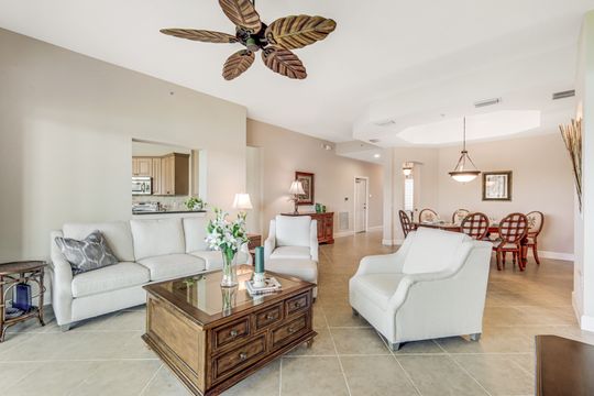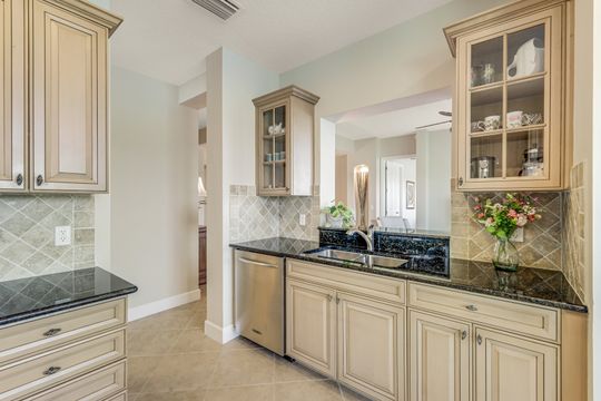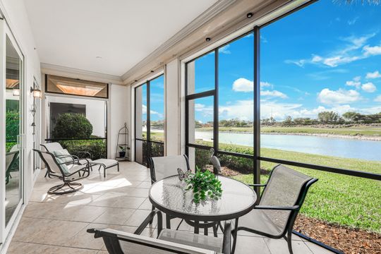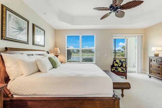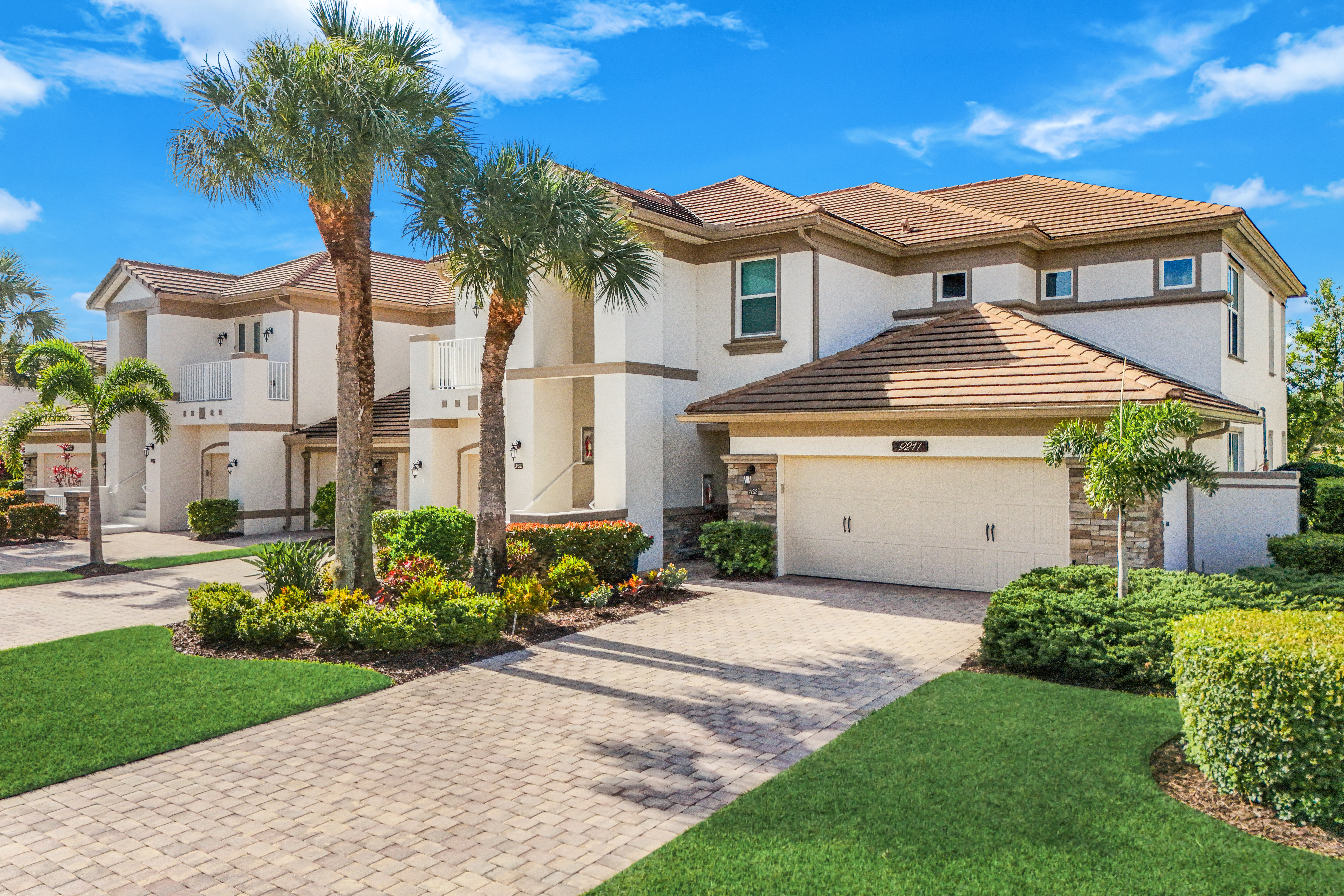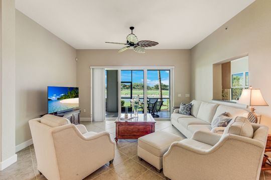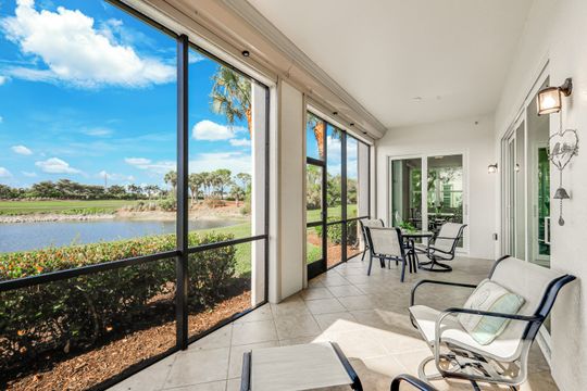 Enjoy serene water and golf course views from this tastefully maintained first floor Coach Home ideally positioned with a sweeping southern exposure. Filled with natural light from sunrise to sunset, and framed by picturesque landscaping and fairway vistas, this residence offers the perfect backdrop to truly enjoy the essence of Florida living. Designed for comfort and peace of mind, this residence features hurricane impact sliding doors and windows throughout and a new roof in 2020. The open living area seamlessly connects to the lanai through high grade sliders, bringing the outdoors in—not only from the living room, but also the primary bedroom and breakfast nook. The sun drenched kitchen provides a warm and inviting setting for everyday living and entertaining. This spacious floor plan offers 3 bedrooms and 2.5 full bathrooms, including a large primary suite with gorgeous views, a generous walk in closet, and a luxurious primary bath . This is a rare opportunity to enjoy comfort, style, and breathtaking surroundings in a move in ready home. Enjoy peaceful mornings and relaxing evenings from your private lanai, where the Florida lifestyle truly shines. The Quarry community delivers an unmatched array of amenities that cater to a wide range of interests. The newly renovated Beach Club serves as the social and recreational hub, offering both casual and formal dining options. A two-story fitness center provides a variety of classes ensuring residents have access to top-notch wellness programs. Sports enthusiasts will appreciate the tennis, pickleball, and bocce courts, while golfers can indulge in the private 18-hole course designed by the renowned Hurdzan-Fry team. For those who love the outdoors, The Quarry is a paradise of natural beauty and adventure. Over 500 acres of navigable lakes invite exploration by boat, kayak, paddleboard, or fishing excursions. Scenic walking trails wind through lush preserves, offering opportunities to connect with nature and enjoy the tranquility of the surroundings.