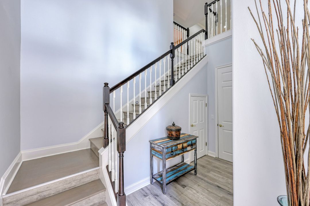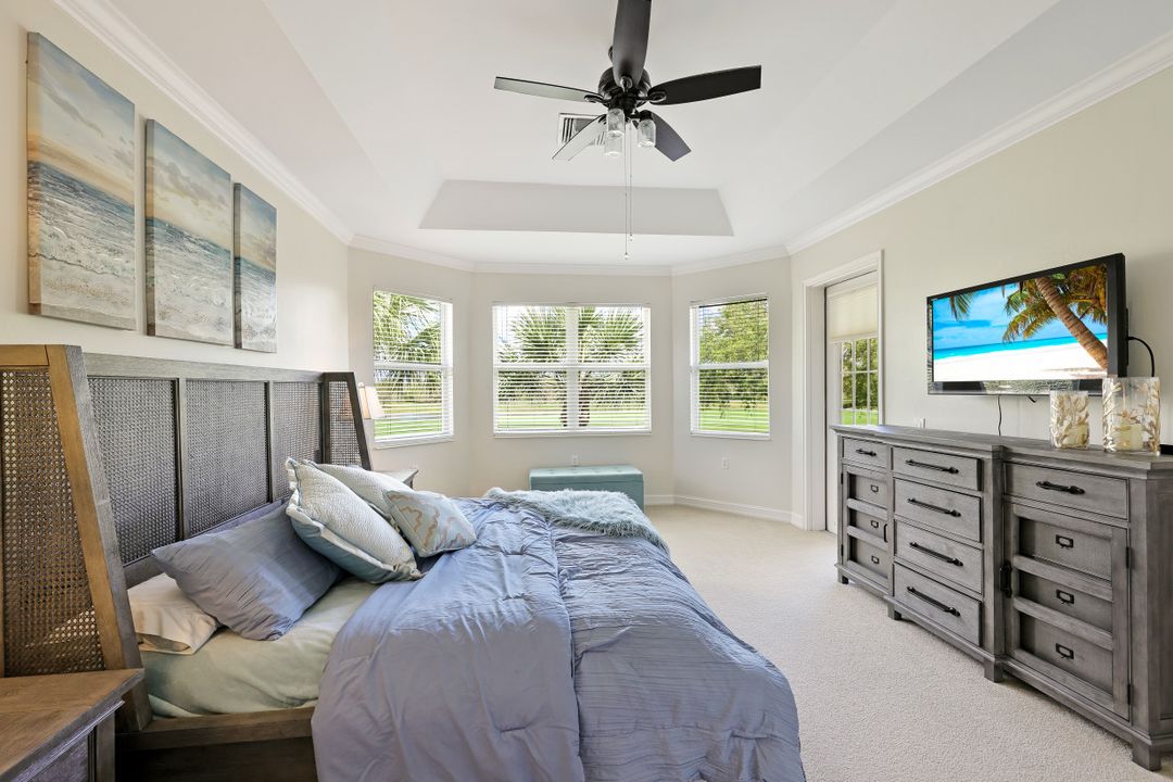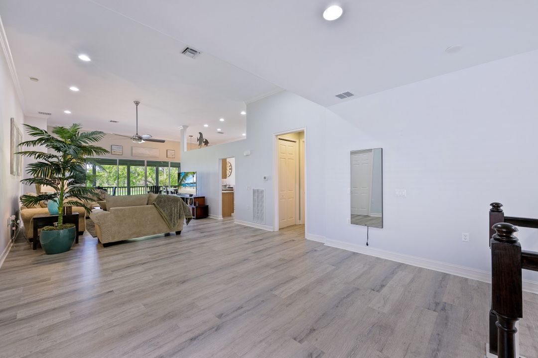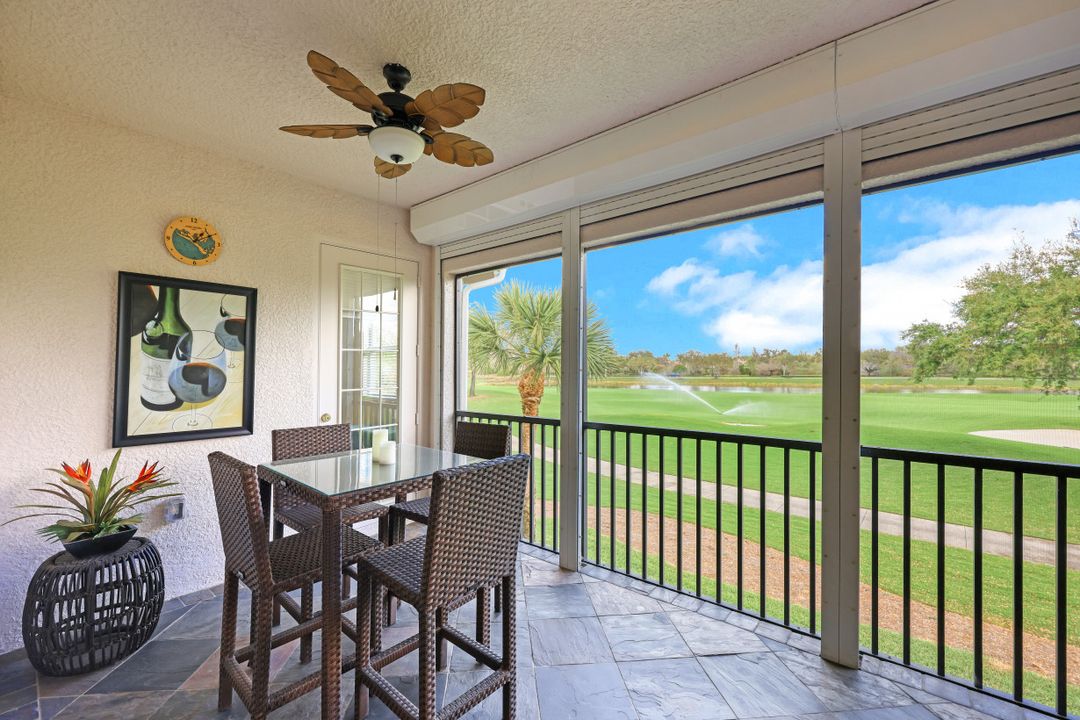 Welcome home to this immaculate, turn-key, 2nd floor Triana Carriage Home! Set among manicured grounds within the private Luxury Golf Community of Renaissance, this beautiful home was redesigned with a simple, modern vision — cool neutral tones, contemporary coastal finishes and an open concept. You will find an interior that flows effortlessly from the incredible open living space to the generously sized screened in lanai. The outdoor space gives you the best of Florida living, with gorgeous views of the sparkling lake and Hole #1 of the Arthur Hills Championship Golf Course. The recently updated kitchen boasts beautiful matte finish granite countertops, glass subway tile backsplash, new stainless steel appliances and large 42” light wood cabinetry! Other notable features include: new luxury vinyl flooring in the main living areas, soaring high ceilings, TWO Master Suites, ample storage and updated lighting fixtures. This home offers the very best of the Southwest Florida lifestyle, and is ready to be enjoyed!