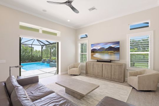 LIVE A VACATION LIFESTYLE IN ESPLANADE! This FULL GOLF MEMBERSHIP "Mercede" features 4 Bedrooms+Den+Bonus Room+Loft, 5.5 Baths, 3 Car Garage, & 4812 Sq Ft under air. Barely a year old, this SOUTHERN EXPOSURE estate home has a long list of special features: Hurricane impact glass & electric roll down shutters; NATURAL GAS; 12' ceilings throughout the first floor; heated, salt water pool/spa complete with water bowls & travertine marble deck; firepit with underground gas line; wood tile floors; 8' solid core interior doors; plantation shutters throughout; and more! Esplanade Golf & Country Club is a true "Lifestyle Community" with something for everyone! Resort Style Pool complete with cabanas and beach entrance; 6 tennis courts; 4 bocce balls courts; 4 pickleball courts; Koquina Day Spa offering hair, nail, facial, and spa treatments; Techno Gym with Aerobics Room; Gated Dog Park; Bahama Bar featuring Lunch & Dinner Service; Activities Building; 14 miles of bike/walking trails; 18 hole private golf course; and a 15,000 Sq Ft Culinary Center featuring formal and casual dining options, inside and outside bars, wine tasting room, Starbucks style cafe, and more!