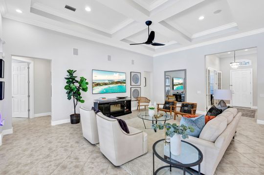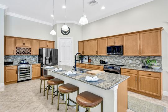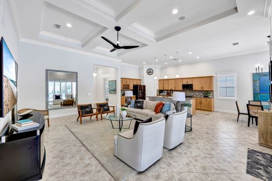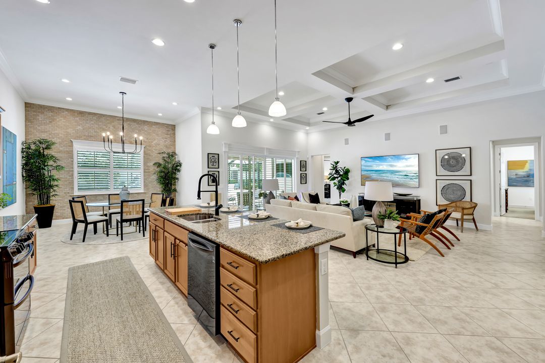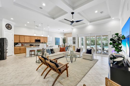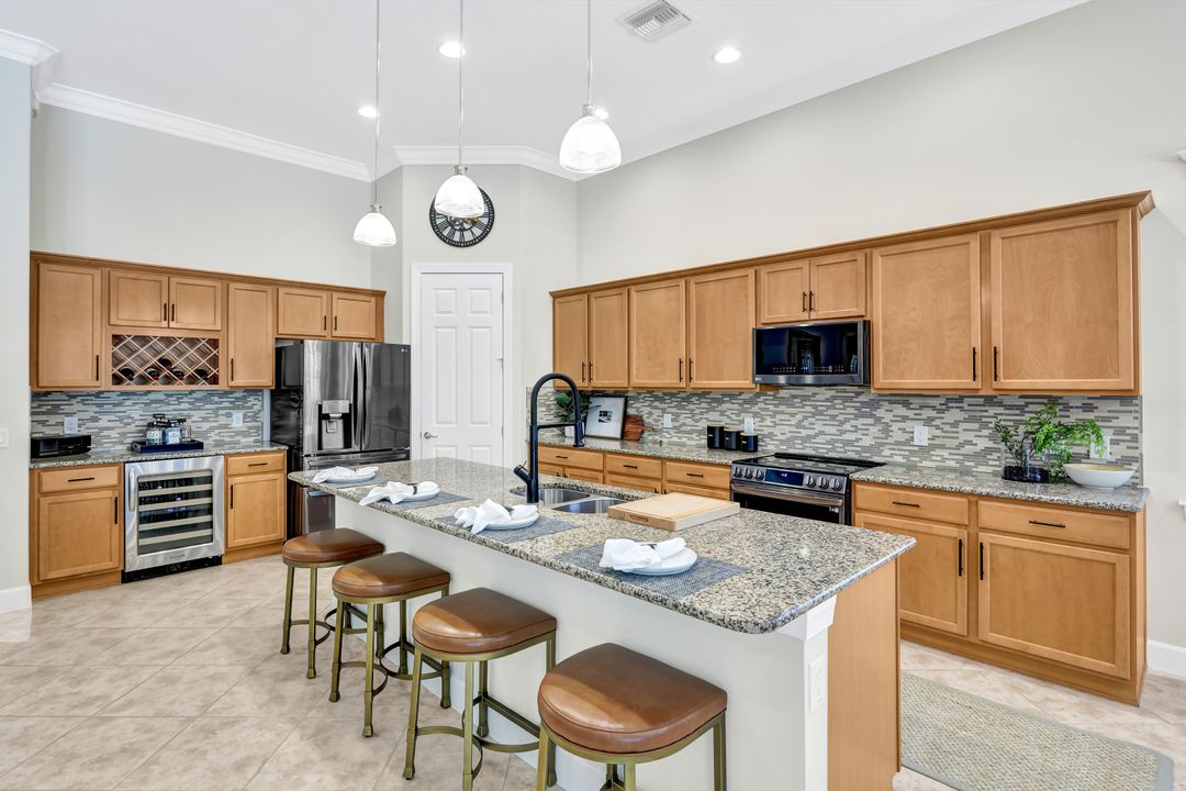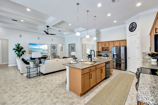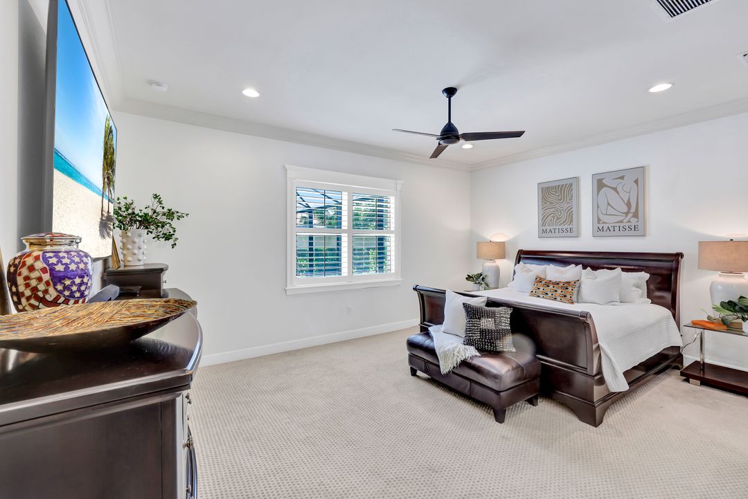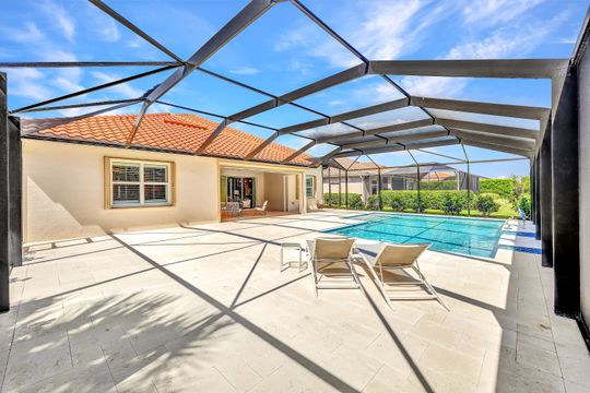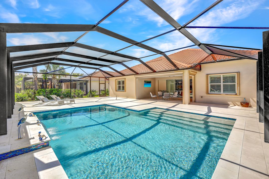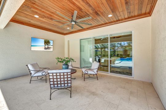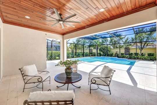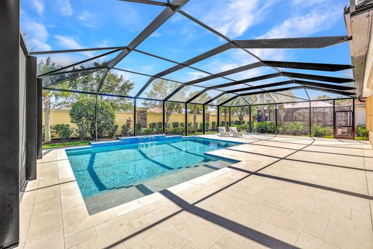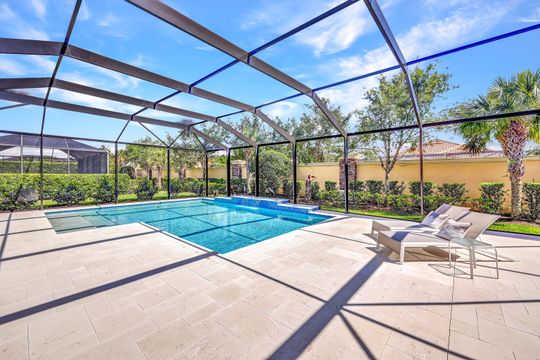 LIVE A VACATION LIFESTYLE IN THE QUARRY! This light & bright "Dartmouth" (3+Den, 3 Bath, 3 Car Garage) floorplan home offers a wide open Great Room style floorplan with a pocketing sliding glass door to the lanai. The lanai features a cypress wood ceiling and BRAND NEW POOL (with southern exposure) with over 1500 sq ft of travertine marble decking with ample room for entertaining and enjoying days around the pool. Inside you will find 12' ceilings, 7" crown molding, recessed lights throughout, updated matte black bath fixtures, plantation shutters, NEW black stainless appliances, and more! Freshly painted exterior. The Quarry is a lakefront community offering something for everyone: Boating, Golf, Tennis, Pickleball, Bocce Ball, Tiki Bar, Restaurant, Pool-Side Food/Drink Service, Gym, Social Activities including Full Time Social Director, and more! The Quarry offers a lifestyle like no other, including an impressive "Lake Lodge" and over 500 acres of navigable lakes and a private 18 hole Golf Club (Not Mandatory). An impressive $18M renovation & expansion of the Lake Lodge & Beach Club is under way and is to be completed by early 2023.