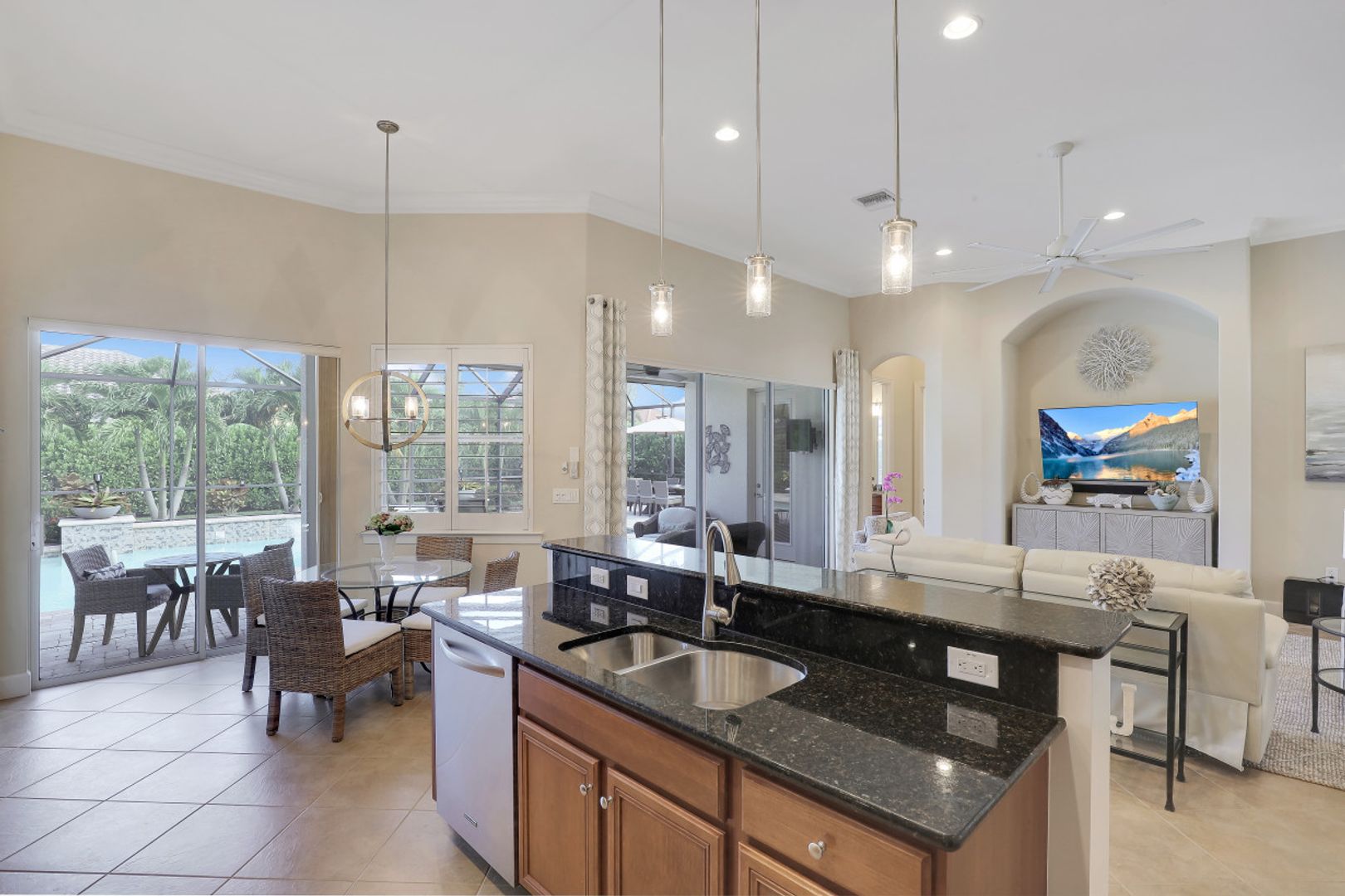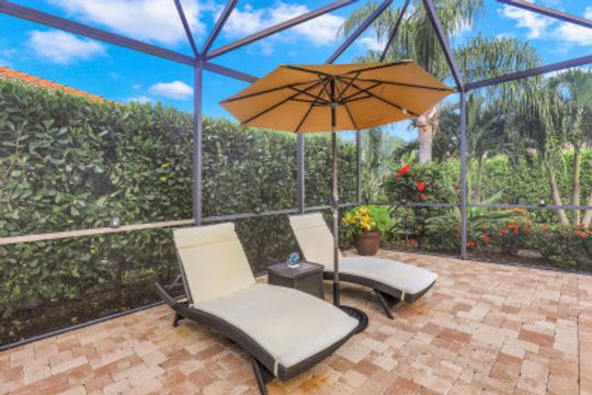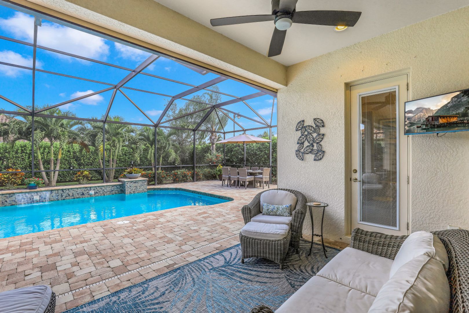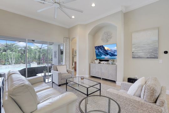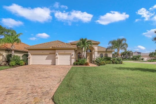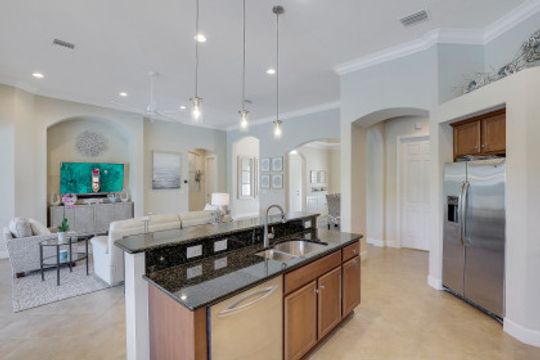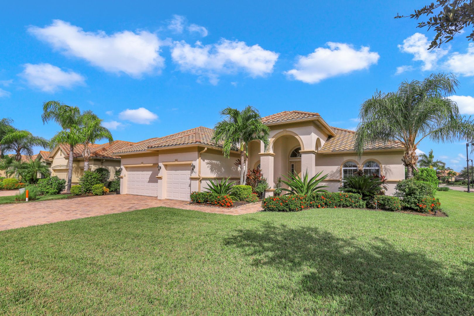 This MINT CONDITION "Belleflower" is situated on an oversized corner lot and offers a private lanai wrapped with majestic palms, privacy hedge, and landscape lighting. Diagonal tile & wood floors run throughout the home along with oversized crown molding, plantation shutters, and extra recessed lights. All baths include walk in showers with frameless shower doors. Recent updates include: HVAC 2019; Storm Smart Elec Shutters 2018; Whole house hot water circulation system 2018; Pool pump 2018; Pool chlorinator 2020; Landscape Lights front & back 2018. The Quarry is a Lakefront RESORT STYLE LIVING COMMUNITY offering something for everyone. Residents enjoy resort pool, Tiki Bar with Food & Beverage service (Lunch & Dinner 7 days a week), Restaurant, Full Time Activities Director, Fitness Center, Movement Studio, Tennis Courts, Bocce Courts, and Pickleball courts as part of their Master HOA Dues (No memberships required). The Golf Lodge & Golf Club offer an 18 hole PGA Level Hurdzan Frye course and its own private clubhouse & restaurant (Golf Memberships available but golf memberships are not mandatory). Go boating/skiing/sailing/jet skiing on 500 acres of fresh water lakes!