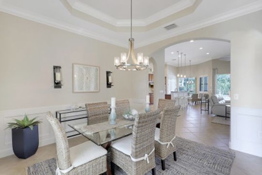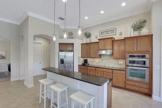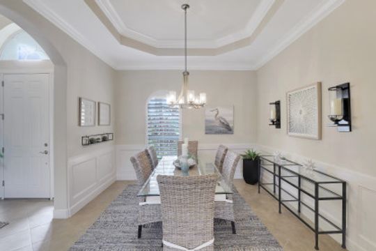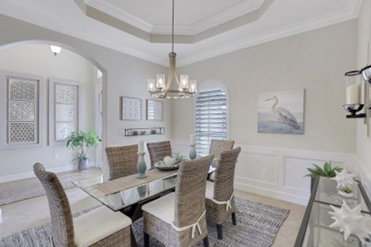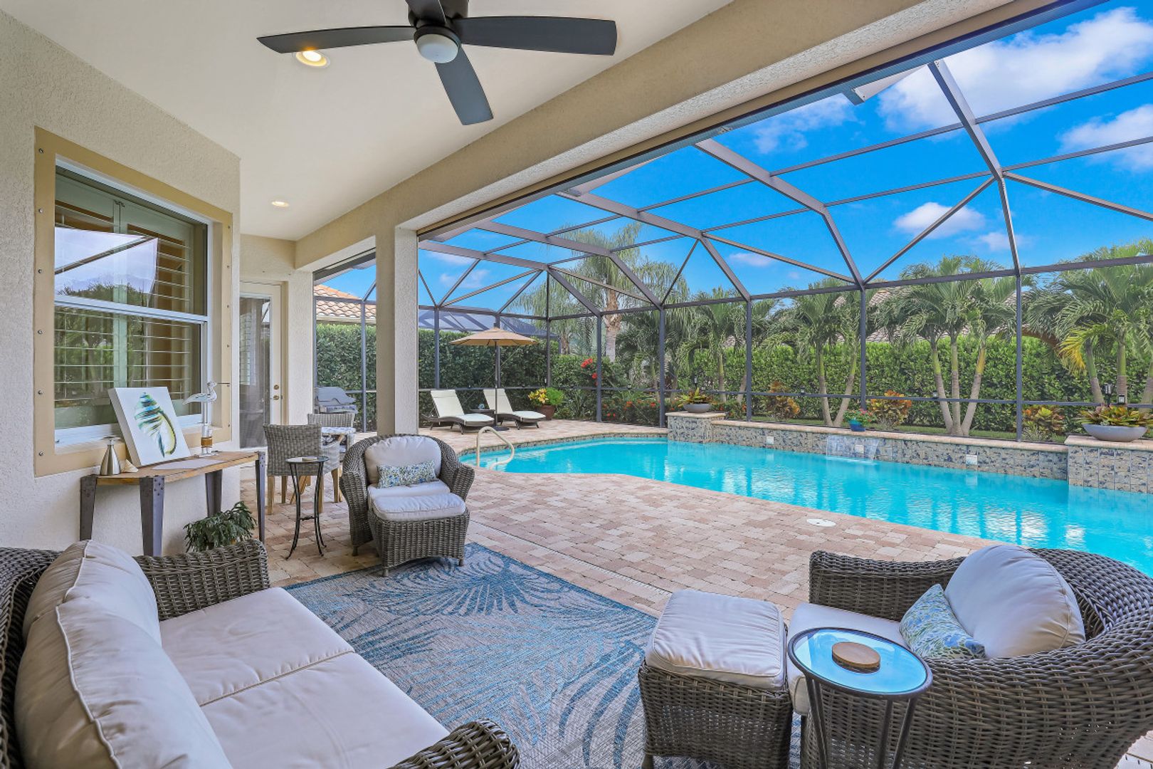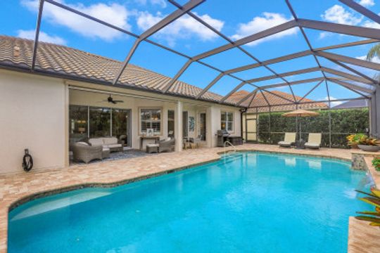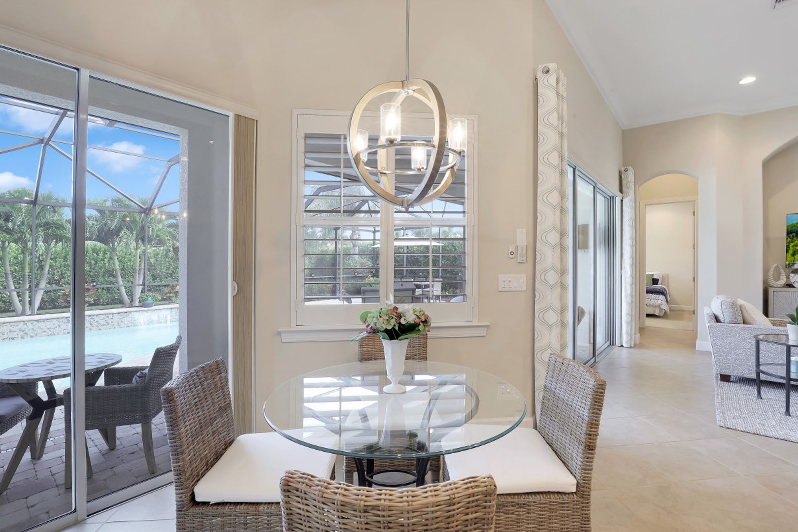 This MINT CONDITION "Belleflower" is situated on an oversized corner lot and offers a private lanai wrapped with majestic palms, privacy hedge, and landscape lighting. Diagonal tile & wood floors run throughout the home along with oversized crown molding, plantation shutters, and extra recessed lights. All baths include walk in showers with frameless shower doors. Recent updates include: HVAC 2019; Storm Smart Elec Shutters 2018; Whole house hot water circulation system 2018; Pool pump 2018; Pool chlorinator 2020; Landscape Lights front & back 2018. The Quarry is a Lakefront RESORT STYLE LIVING COMMUNITY offering something for everyone. Residents enjoy resort pool, Tiki Bar with Food & Beverage service (Lunch & Dinner 7 days a week), Restaurant, Full Time Activities Director, Fitness Center, Movement Studio, Tennis Courts, Bocce Courts, and Pickleball courts as part of their Master HOA Dues (No memberships required). The Golf Lodge & Golf Club offer an 18 hole PGA Level Hurdzan Frye course and its own private clubhouse & restaurant (Golf Memberships available but golf memberships are not mandatory). Go boating/skiing/sailing/jet skiing on 500 acres of fresh water lakes!