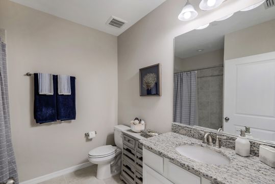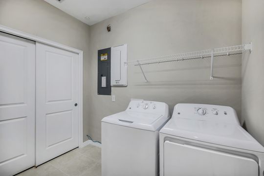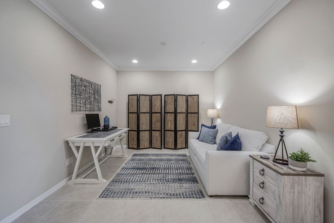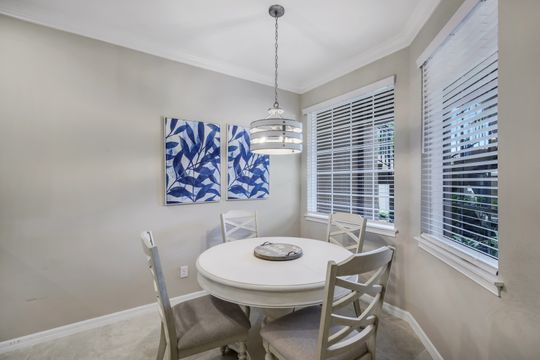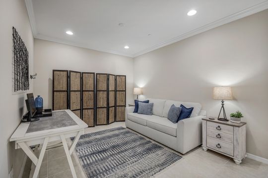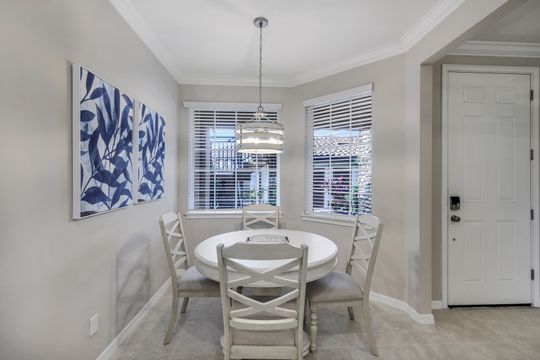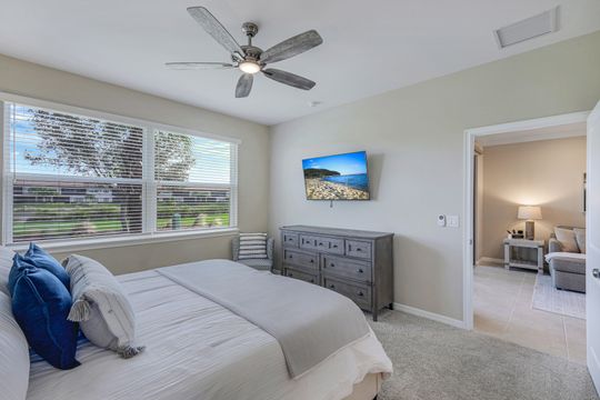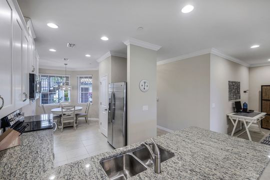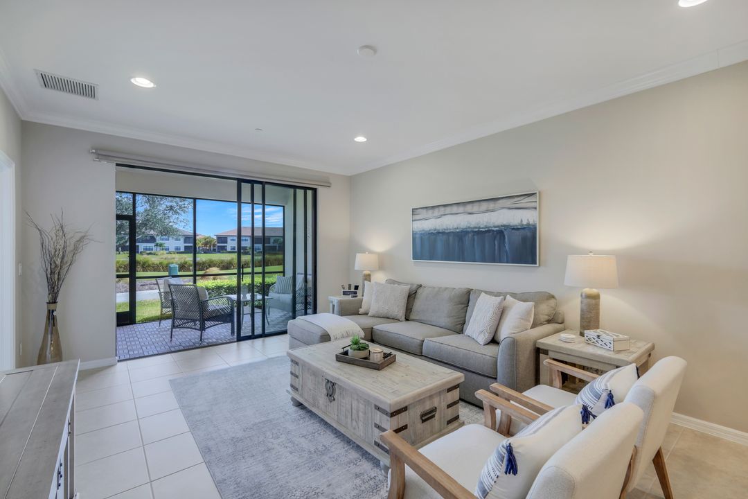 LIVE A VACATION LIFESTYLE IN ESPLANADE! Enjoy sunrise views overlooking the golf course and lake from this TURNKEY FIRST FLOOR 2+Den/2 Bath/1 car garage condo. Built in 2020, this lightly used condo is better than new and offers an open and airy floorplan making it perfect for entertaining. A long list of special features include white shaker cabinets, crown molding, stainless steel appliances, granite countertops, upgraded lights/fans, tasteful furniture & decor, and more! CLUB/SPORTS MEMBERSHIP INCLUDED! Esplanade is a true "Lifestyle Community" with something for everyone: resort pool complete with cabanas & poolside "Bahama Bar"; tennis; pickleball; bocce; Koquina Day Spa; fitness center; two dog parks; 14 miles of bike/walking trails; 18 hole private golf course; 15,000 Sq Ft clubhouse featuring restaurant, bar, wine tasting room, wine lockers, & Starbucks style cafe!