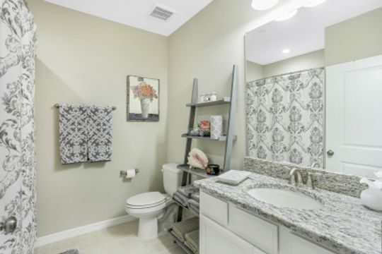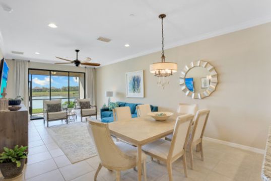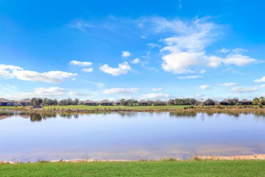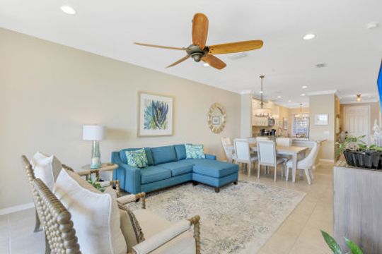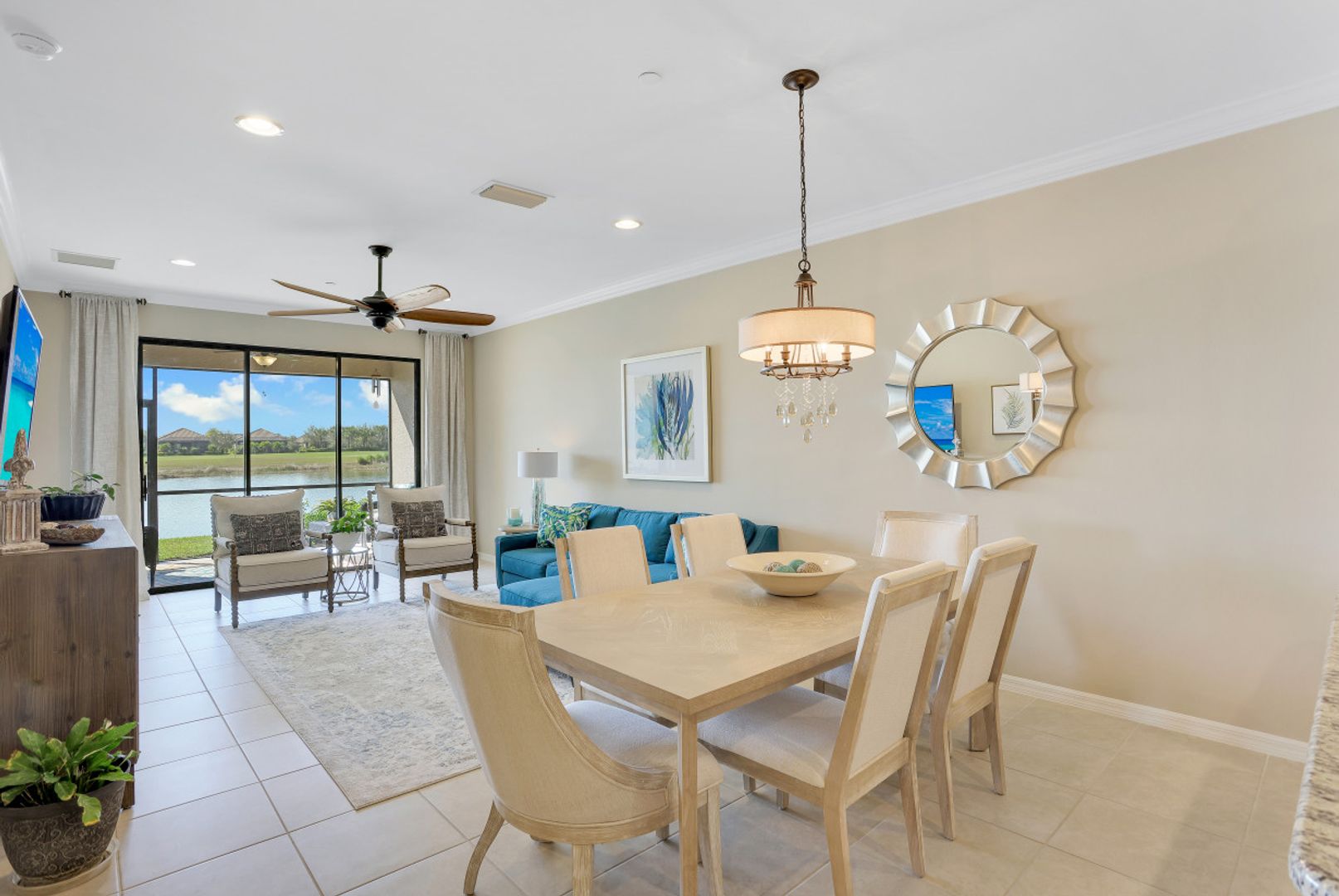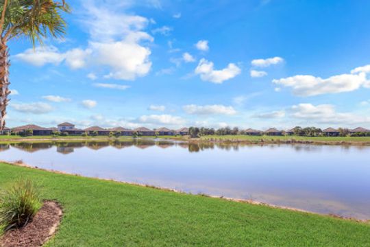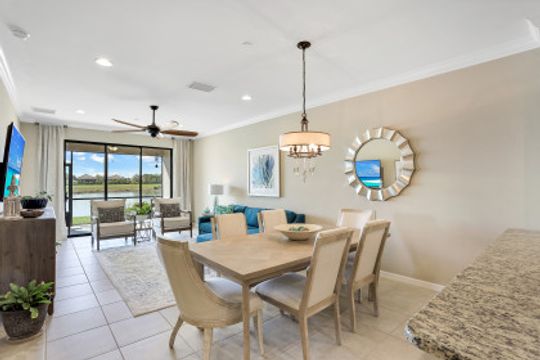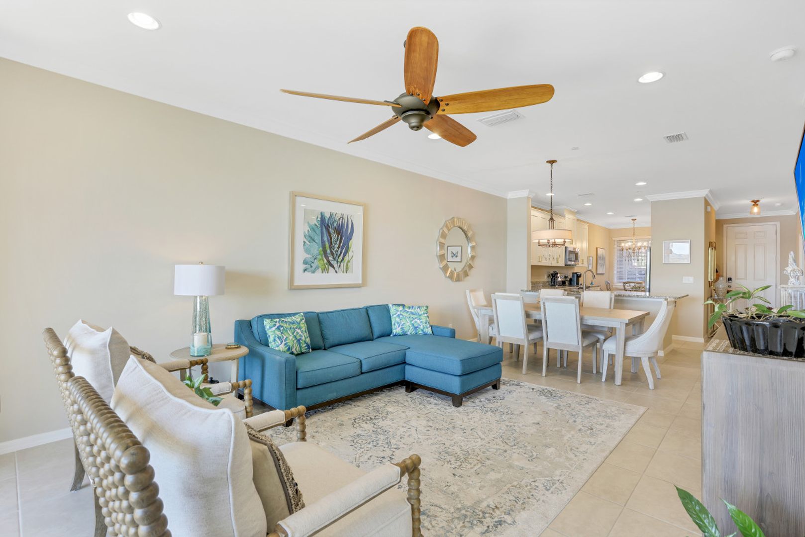 LIVE A VACATION LIFESTYLE IN ESPLANADE! FIRST FLOOR CONDO. 2+DEN/2 BATH. Enjoy sunsets 365 days a year overlooking one of the BEST VIEWS within the community of the lake and 16th hole! An open and airy floorplan greets you when you walk in the door and features a long list of upgrades: tile floors throughout the common areas and den; crown molding; white shaker style cabinets with granite countertops; SS appliances; spacious laundry room; detached 1 car garage; and more! This condo comes with a CLUB/SPORTS MEMBERSHIP which gives you access to all amenities with the exception of in-season golf! Esplanade G&CC is a true "Lifestyle Community" with something for everyone: Resort Pool complete with cabanas and beach entrance; 6 tennis courts; 4 bocce balls courts; 4 pickleball courts; Koquina Day Spa offering hair, nail, facial, and spa treatments; Techno Gym with Aerobics Room; Gated Dog Park; Poolside Bahama Bar; 14 miles of bike/walking trails; 18 hole private golf course; 15,000 Sq Ft Culinary Center featuring restaurant, bars, wine tasting room, wine lockers, & Starbucks style cafe! DUES $8,980/yr including water/sewer, insurance, building maintanence, and all club amenities!