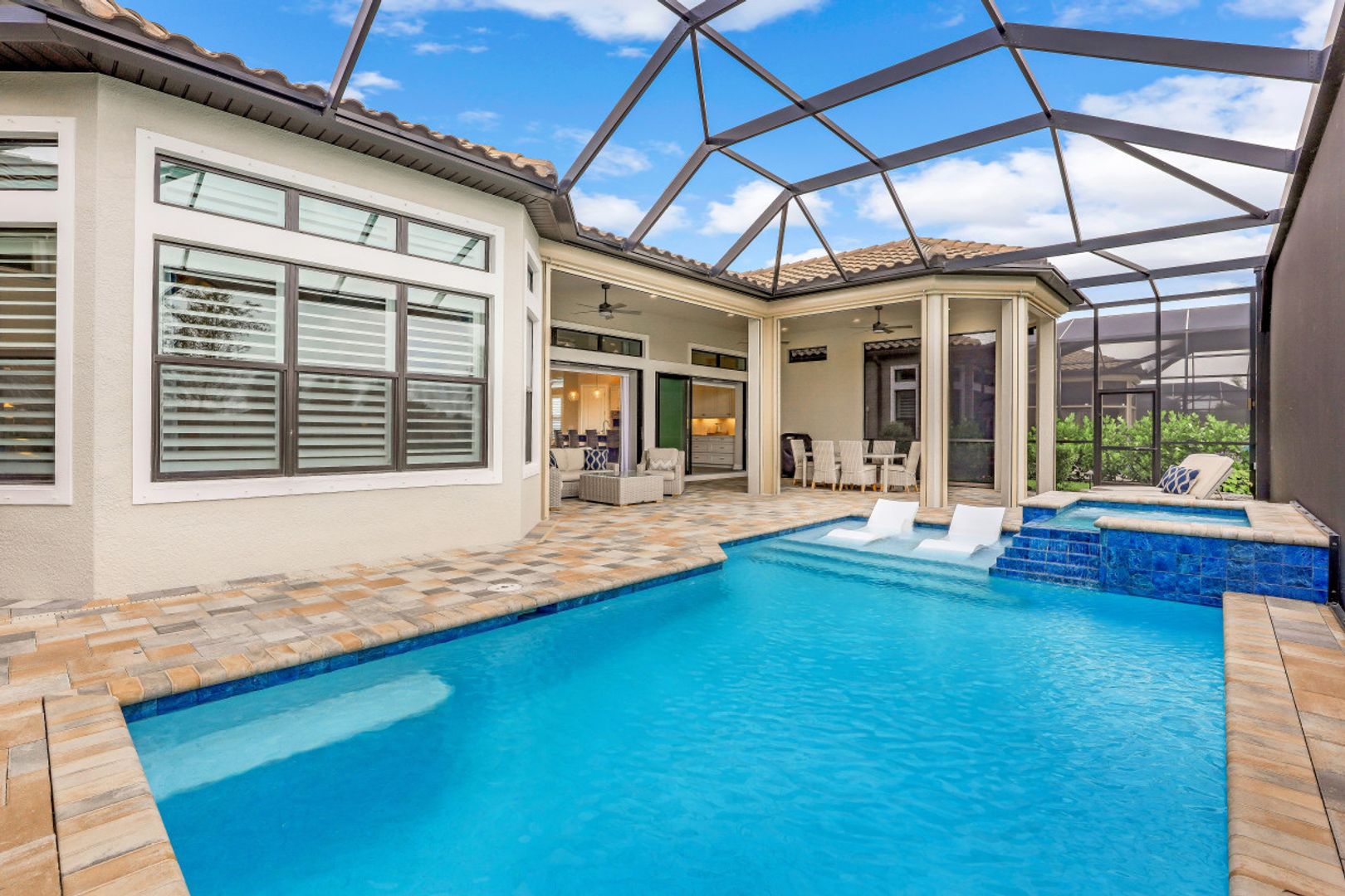 LIVE A VACATION LIFESTYLE IN ESPLANADE! This FURNISHED 2 year old FULL GOLF MEMBERSHIP "Francesco" features 3 Bedrooms+Den, 3.5 Baths, 3 Car Garage, & 2862 Sq Ft under air. Situated on highly desired golf course view lot, this home features a long list of special features: heated salt water pool & spa with sunshelf; NATURAL GAS; 12-13' ceilings/8' interior doors; GE Monogram Appliances; wet bar w beverage & wine coolers; electric hurricane roll down shutters on the lanai; transom windows throughout; Level V quartz countertops, Level V & VII cabinets, & wood look floors throughout; custom window treatments; & more! Esplanade G&CC is a true "Lifestyle Community" with something for everyone: Resort Pool complete with cabanas and beach entrance; 6 tennis courts; 4 bocce balls courts; 4 pickleball courts; Koquina Day Spa offering hair, nail, facial, and spa treatments; Techno Gym with Aerobics Room; Gated Dog Park; Poolside Bahama Bar; 14 miles of bike/walking trails; 18 hole private golf course; 15,000 Sq Ft Culinary Center featuring formal and casual dining options, inside and outside bars, wine tasting room, Starbucks style cafe, & more! DUES $9016/yr incl. golf/amenities/lawn care!