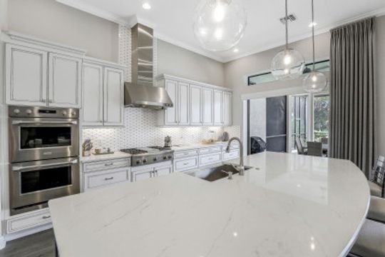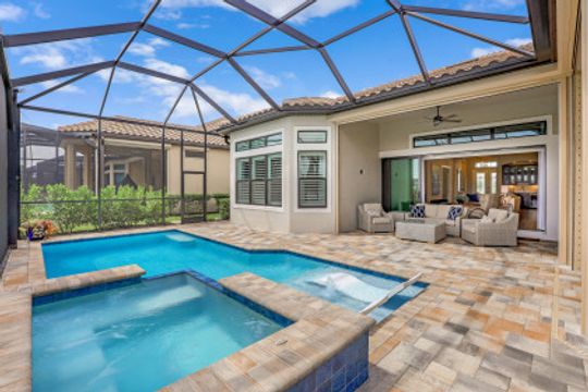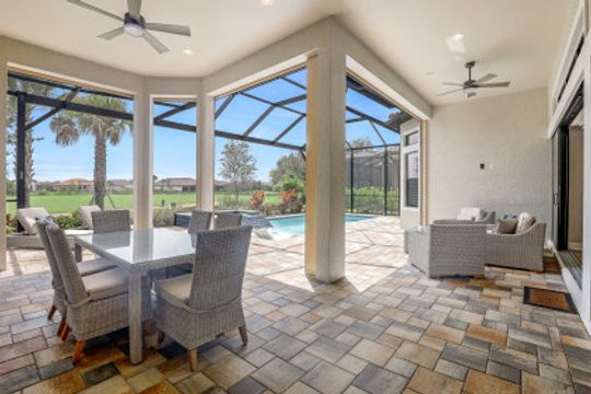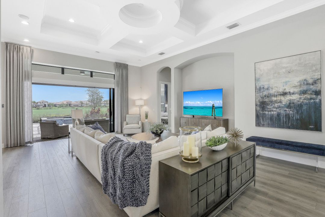 LIVE A VACATION LIFESTYLE IN ESPLANADE! This FURNISHED 2 year old FULL GOLF MEMBERSHIP "Francesco" features 3 Bedrooms+Den, 3.5 Baths, 3 Car Garage, & 2862 Sq Ft under air. Situated on highly desired golf course view lot, this home features a long list of special features: heated salt water pool & spa with sunshelf; NATURAL GAS; 12-13' ceilings/8' interior doors; GE Monogram Appliances; wet bar w beverage & wine coolers; electric hurricane roll down shutters on the lanai; transom windows throughout; Level V quartz countertops, Level V & VII cabinets, & wood look floors throughout; custom window treatments; & more! Esplanade G&CC is a true "Lifestyle Community" with something for everyone: Resort Pool complete with cabanas and beach entrance; 6 tennis courts; 4 bocce balls courts; 4 pickleball courts; Koquina Day Spa offering hair, nail, facial, and spa treatments; Techno Gym with Aerobics Room; Gated Dog Park; Poolside Bahama Bar; 14 miles of bike/walking trails; 18 hole private golf course; 15,000 Sq Ft Culinary Center featuring formal and casual dining options, inside and outside bars, wine tasting room, Starbucks style cafe, & more! DUES $9016/yr incl. golf/amenities/lawn care!