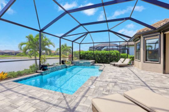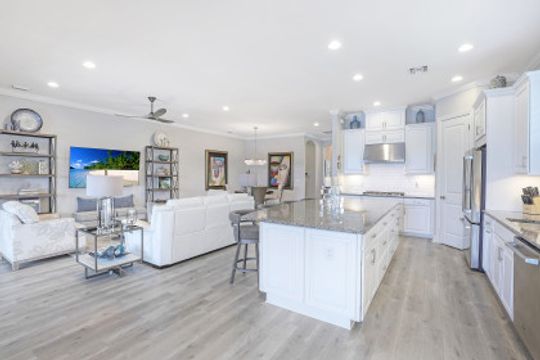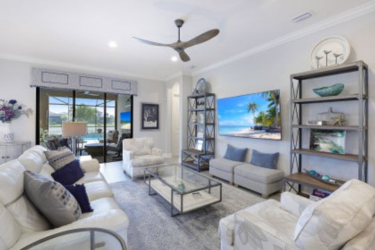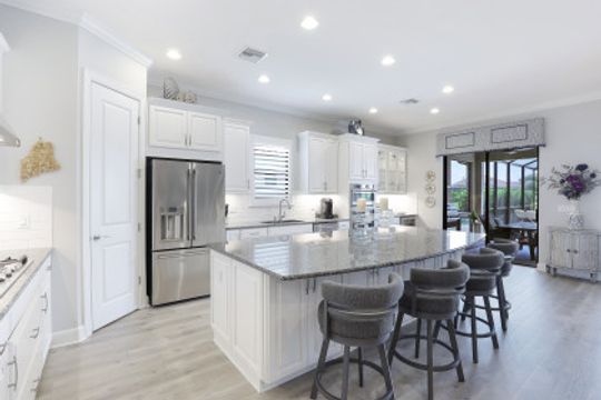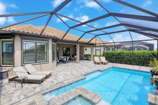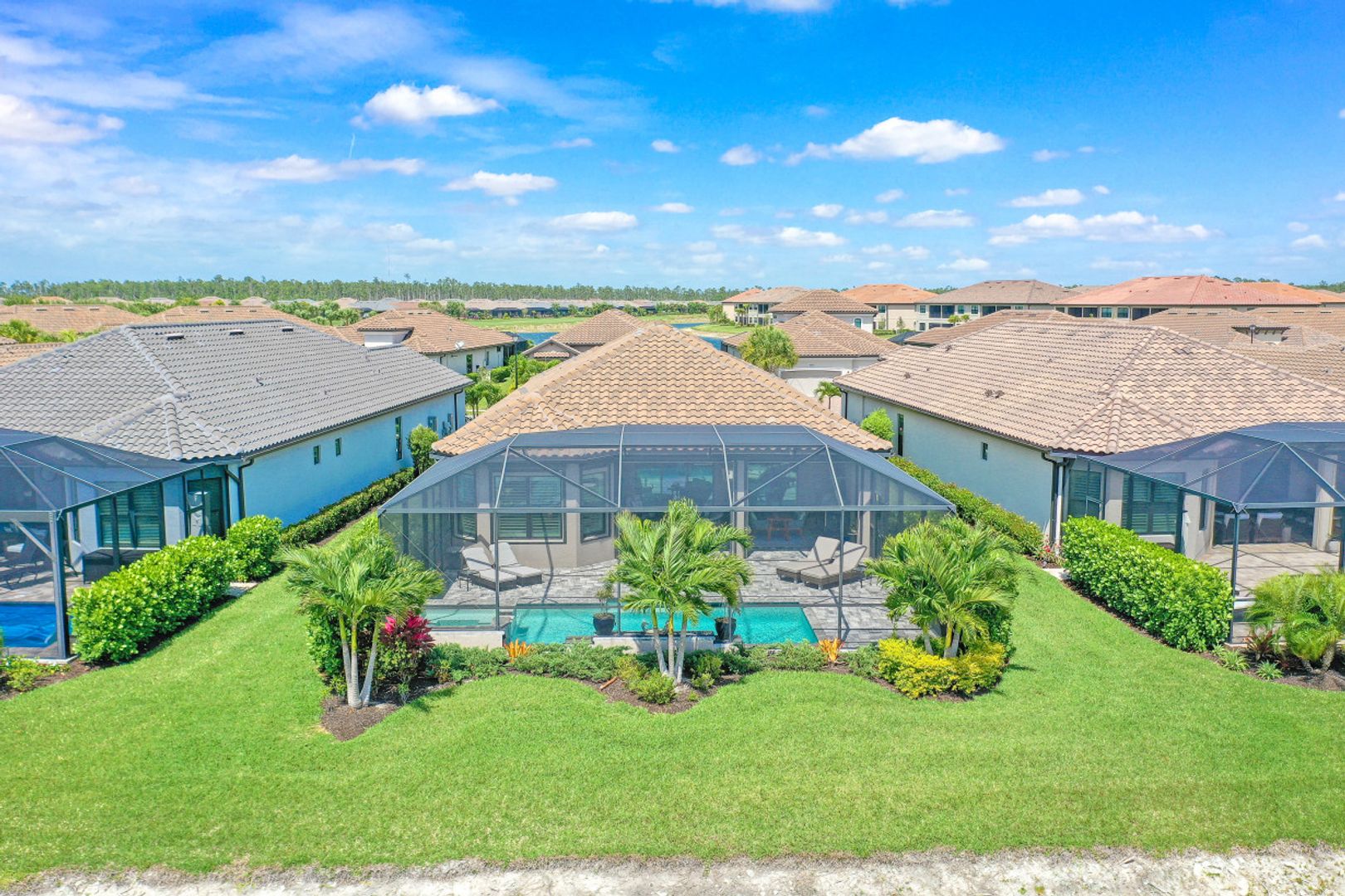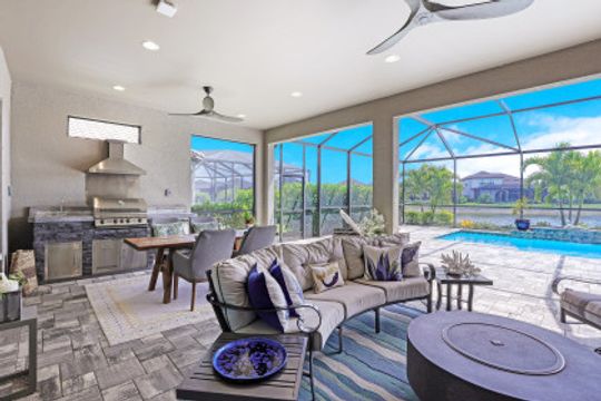 LIVE A VACATION LIFESTYLE IN ESPLANADE! This mint condition "Lazio" with FULL GOLF MEMBERSHIP features 3 Bedrooms+Den, 3 Baths and a bright & airy great room style floorplan. The extended kitchen offers soft close drawers, pull outs, oversized island, wall oven, and wine cooler. Two sets of sliding glass doors lead you to the expanded lanai featuring an outdoor kitchen with grill, refrigerator, & sink. Enjoy this home's prime SOUTHERN EXPOSURE around the GAS heated pool/spa. Wood look floors and plantation shutters throughout. Hurricane ready with WHOLE HOUSE GENERATOR & ELECTRIC ROLL DOWN SHUTTERS! Esplanade G&CC is a true "Lifestyle Community" with something for everyone: Resort Pool complete with cabanas and beach entrance; 6 tennis courts; 4 bocce balls courts; 4 pickleball courts; Koquina Day Spa offering hair, nail, facial, and spa treatments; Techno Gym with Aerobics Room; Gated Dog Park; Poolside Bahama Bar; 14 miles of bike/walking trails; 18 hole private golf course (Can use your own cart); 15,000 Sq Ft Culinary Center featuring restaurant, bars, wine tasting room, wine lockers, & Starbucks style cafe! DUES $10,616/yr including lawn care, golf, & all club amenities!